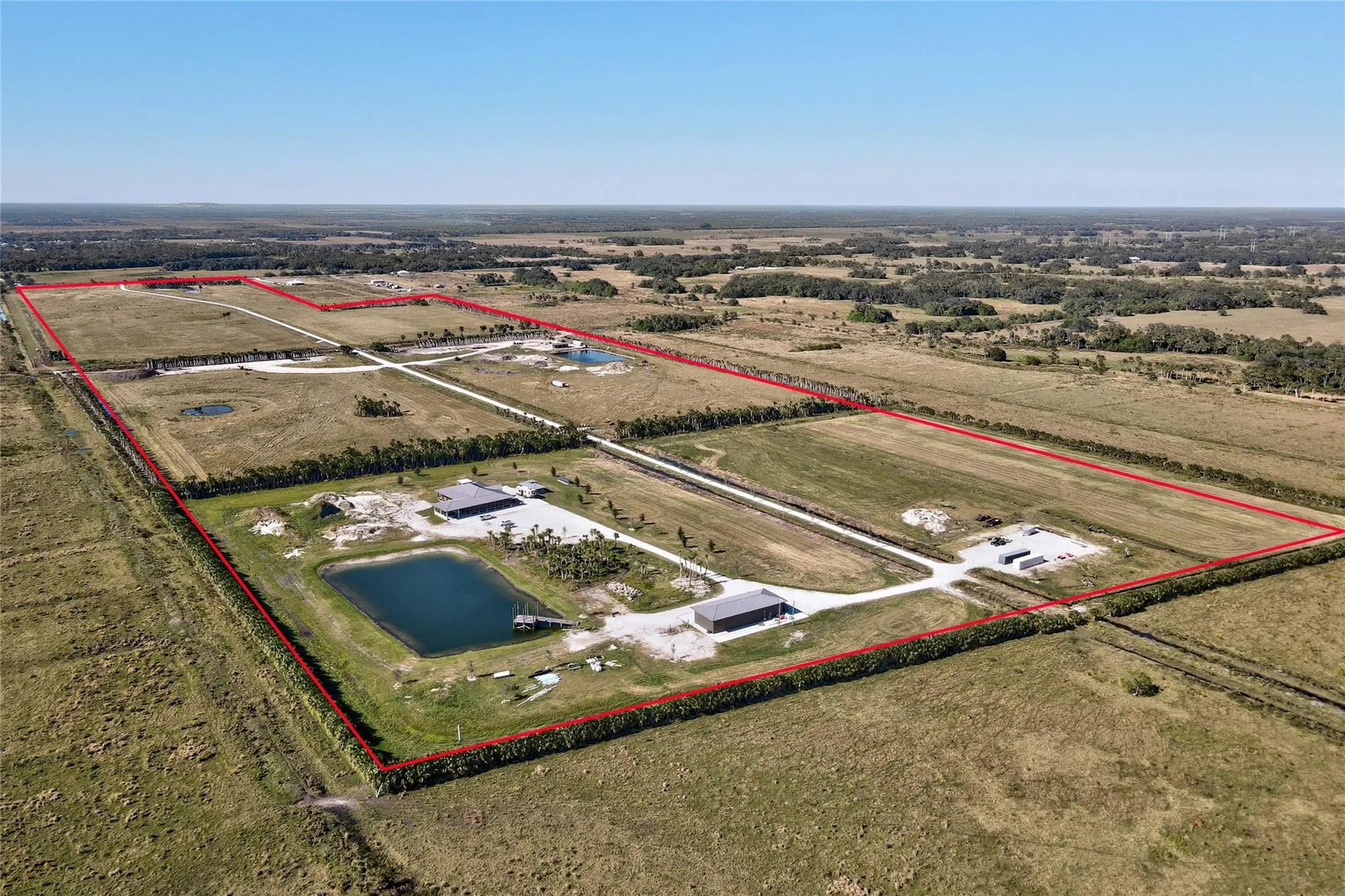 Huge Reduction, Owner Motivated !! Deluxe Ranch or Hunting Lodge with high end millwork, Walnut crown molding, Repurposed Pine and Hickory floors, Blue Granite Kitchen Counters, Large Master bath and walk in closet. Soaring Ceilings 16', and positioned to maximize natural exposure. 35' deep pond with huge dock, 30x80 out building containing A/C'd game room (34x30) and 3 large 20 foot high rollup bay doors, also has generator. Large Generator to run entire facility and Solar assisted. Buy the entire parcel and enjoy or divide for development. Zoning currently Allows 5 acres parcels