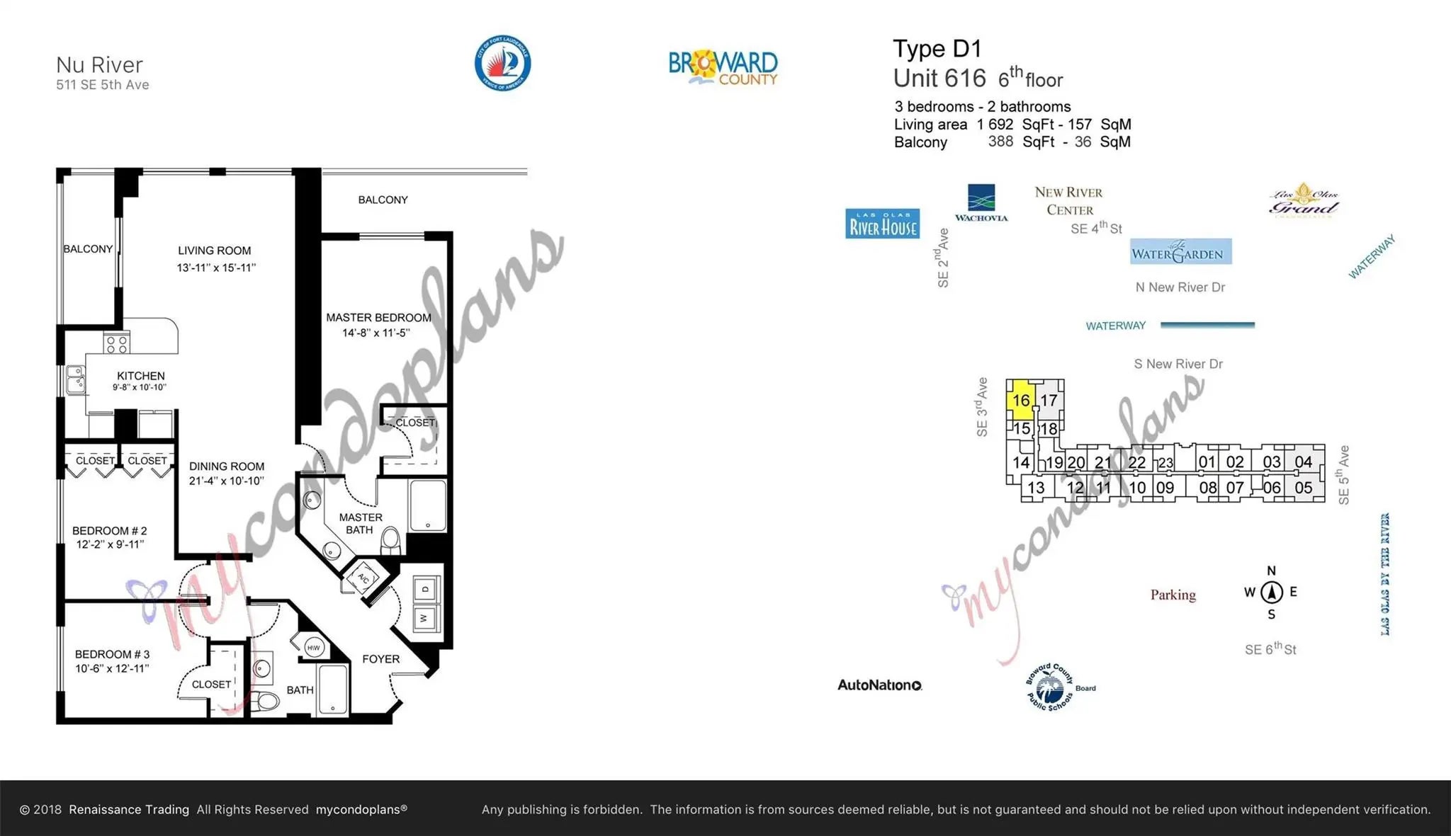 Rarely Available River Facing 3/2 Corner Unit with Breathtaking River, City, Sunset Views. Located Directly Along the Riverwalk. Continuous boat parade cruising by this 6th floor condo with rare 11' ceilings. 1692 sq ft + 75 sq ft balcony. Annual lease. Available immediately pending association approval. Pet friendly. Rent incl water/sewer/trash, secure parking, resort-style amenities: 24/7 attended lobby w/ front desk concierge, rooftop pool with unrivaled panoramic views, sky lounge, jacuzzi, bbq grills, two story fitness center with full-service gym, basketball, racquetball, yoga studio, his/her steam room & sauna, massage room, business center, meditation garden, package room, bike/kayak racks, valet for guests & more. Walk 5 min to Las Olas for endless shopping, dining, nightlife!