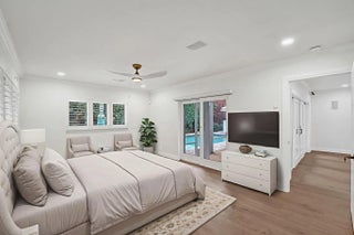 Inspired Coral Ridge Country Club fully renovated home showcasing luxury upgrades and calming designer finishes throughout. Gourmet kitchen remodeled with custom cabinetry, quartz counters, illuminated drawers, display shelving, LG & GE Monogram appliances, induction cooktop with concealed Wolf exhaust, and XO wine cooler. Features TWO primary suites with custom closets and spa-like ensuite baths finished with porcelain and Versace tile, Brizo fixtures, herringbone sinks, and European toilets. Private backyard retreat offers poolside dining, heated pool, sundeck, and hot tub, framed by lush landscaping with custom lighting. Home is wired for audio and includes water filtration, upgraded lighting, custom closets, temperature-controlled 2CG, well water irrigation, and more.