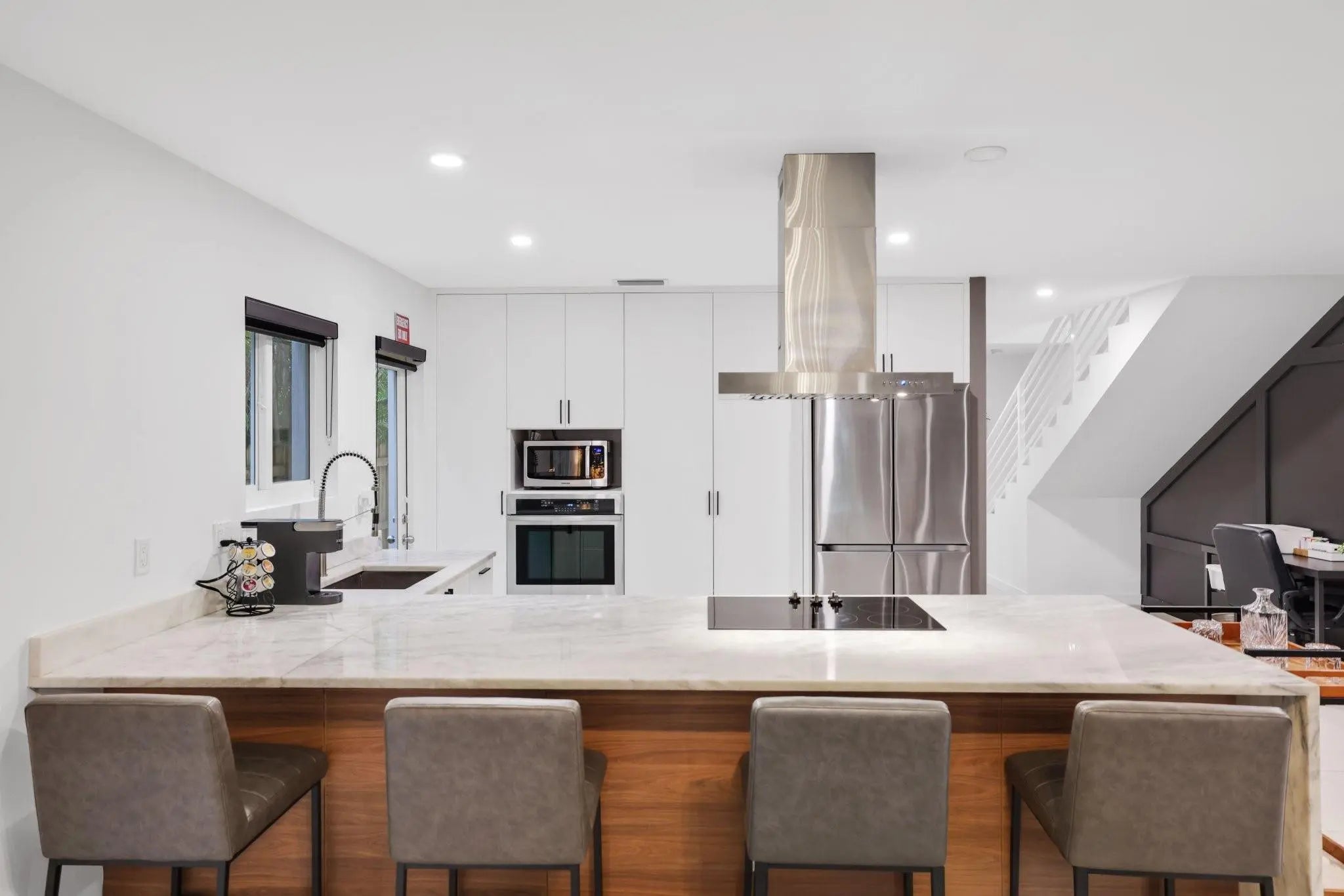 Built in 2021, this modern two-story townhome offers 4 bedrooms and 3 bathrooms with a bright, open layout designed for today’s lifestyle. A welcoming entry leads into the spacious living and dining area, seamlessly connected to the contemporary kitchen featuring quartz countertops and stainless steel appliances. The first floor includes a flexible bonus room—ideal as a guest suite, home office, or fourth bedroom—plus a full bath for added convenience. Upstairs, the primary suite opens to a private balcony, along with two additional guest bedrooms and a full bath. Step outside to a private, sun-filled backyard perfect for entertaining or relaxing. No HOA, offering exceptional flexibility for both full-time living and investment potential.