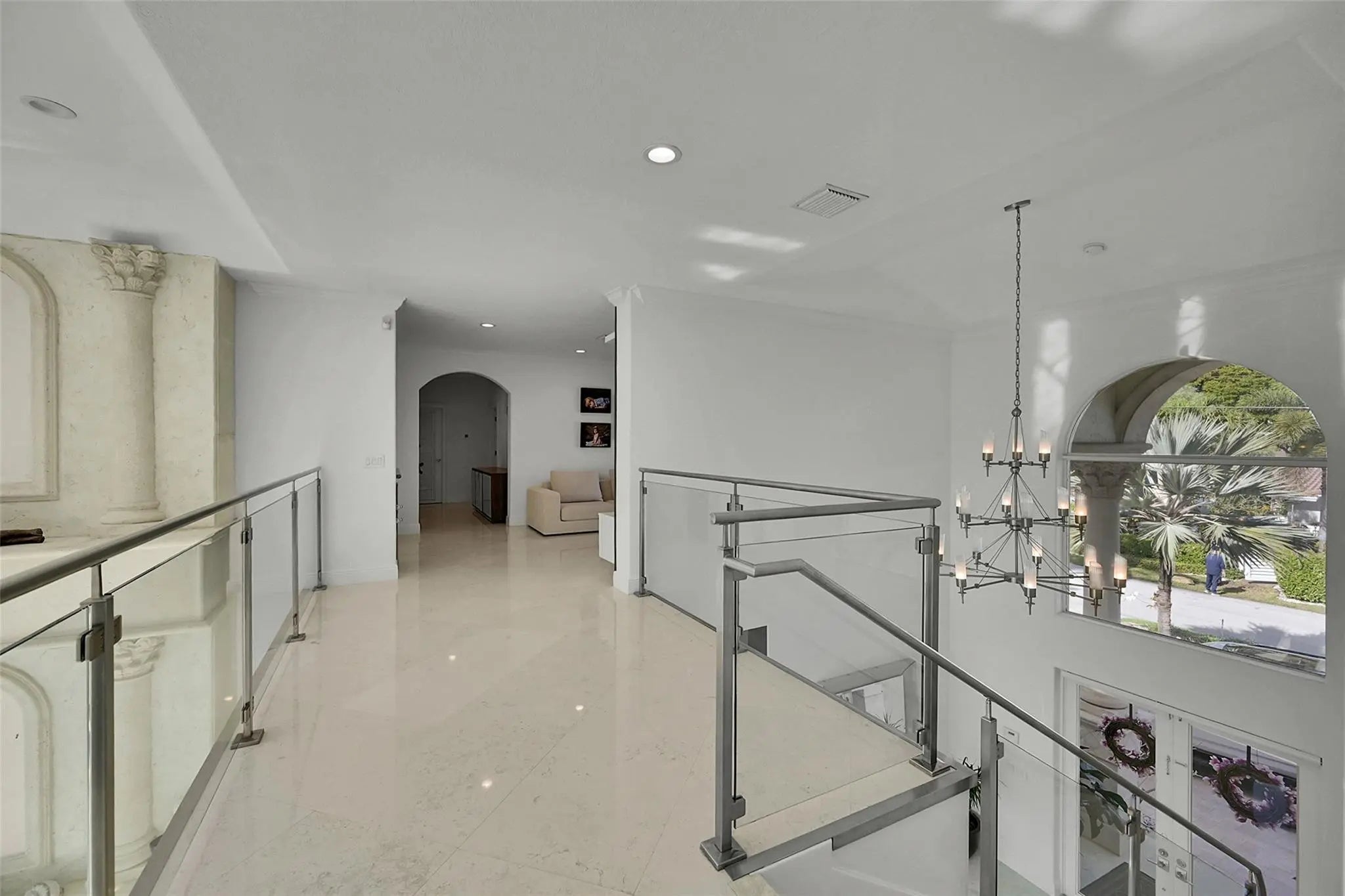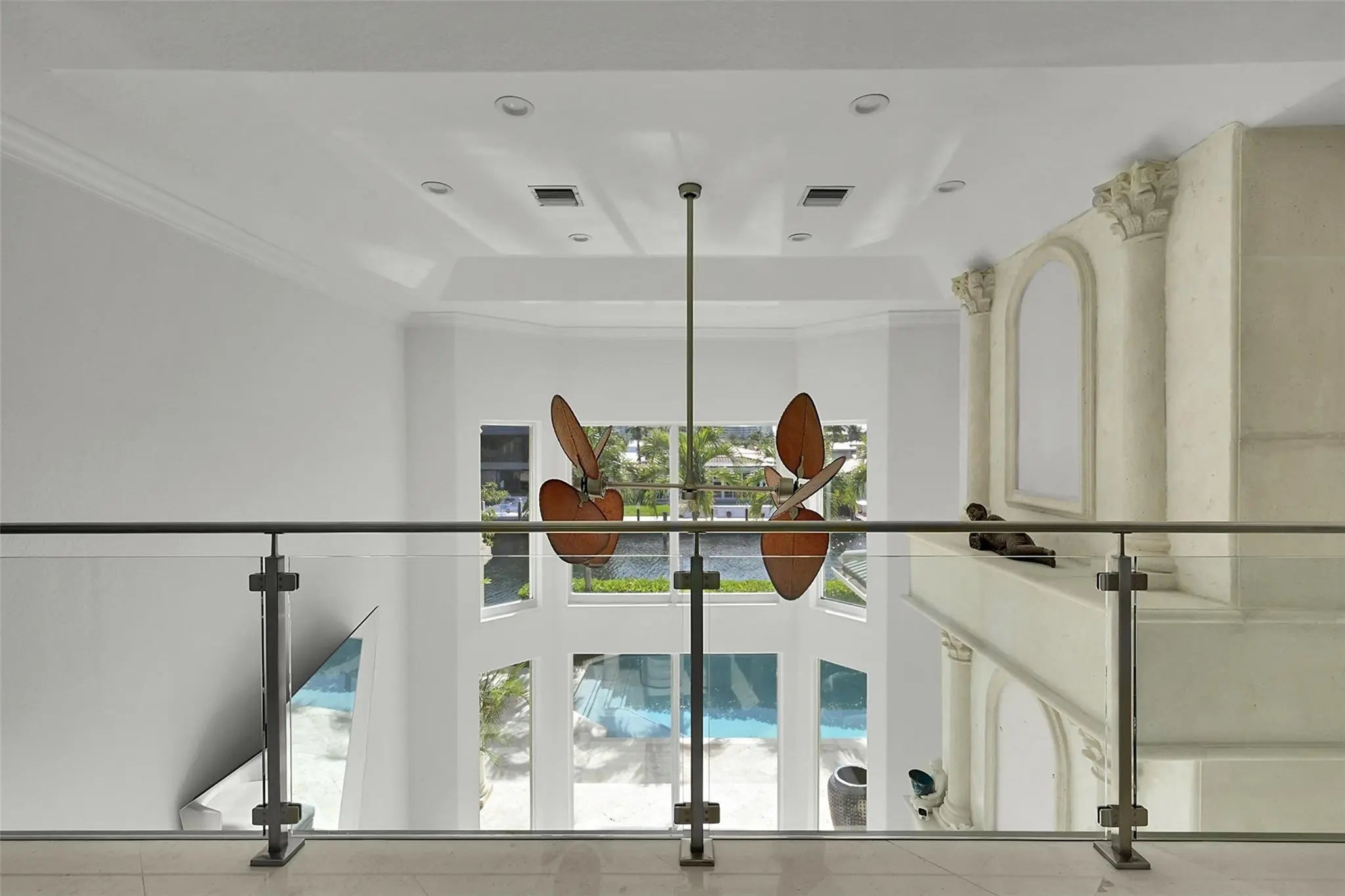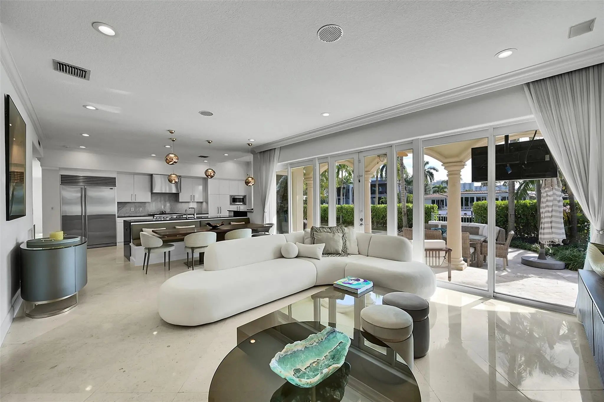 Located on the barrier island, this waterfront residence features 100 feet of frontage with quick Intracoastal access and ocean access via Port Everglades or Hillsboro Inlet. Positioned one lot from the point with desirable southern exposure, the home is filled with natural light. Interior features include marble flooring, impact windows and doors, an open-concept kitchen with white cabinetry, Viking, Sub-Zero, and Thermador appliances, and a wet bar for entertaining. The main level offers two bedrooms, one currently configured as a home theater. Upstairs features four en-suite bedrooms and a loft used as an additional sitting/TV area. South-facing balconies provide water views and sunset exposure.