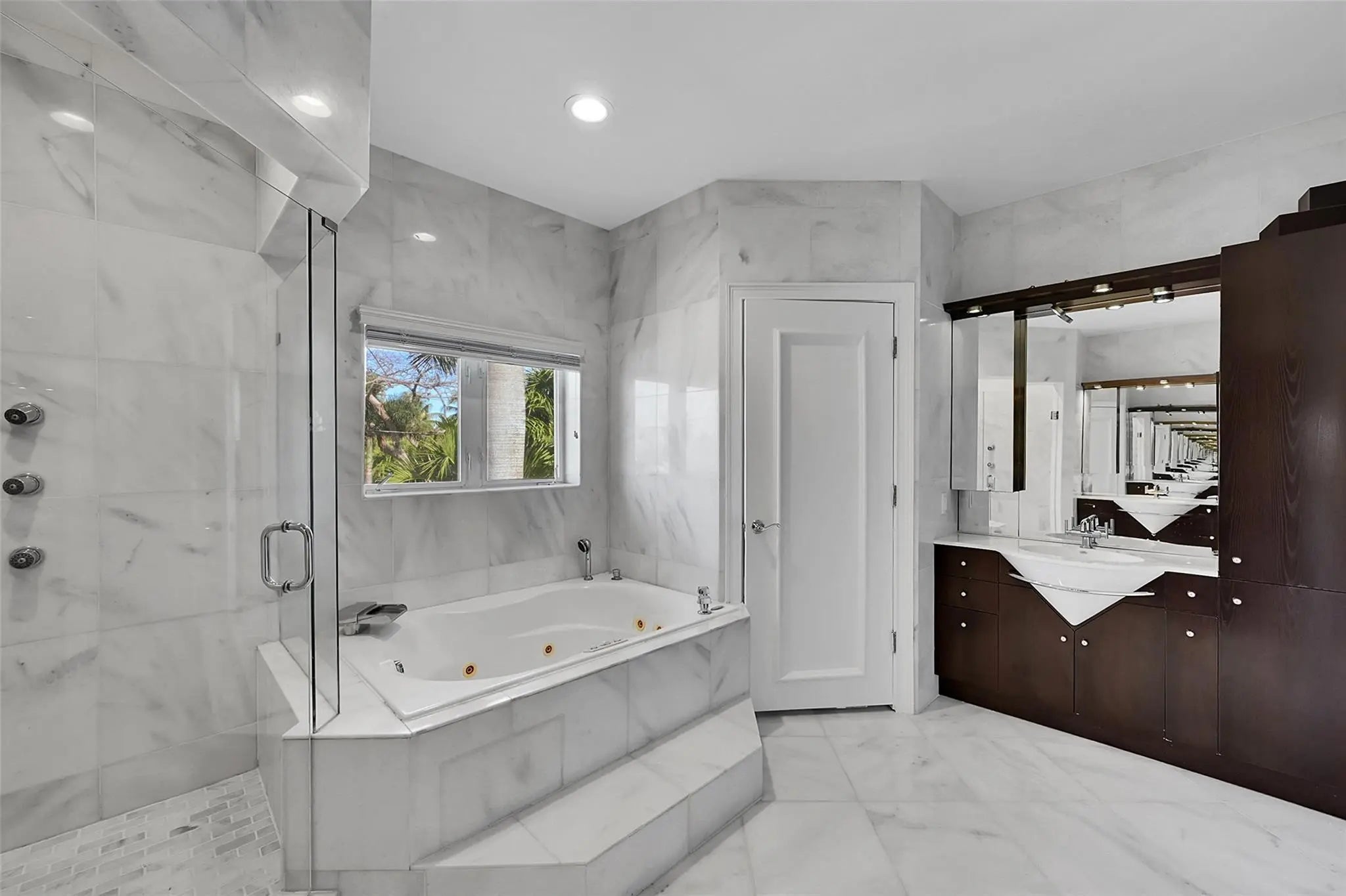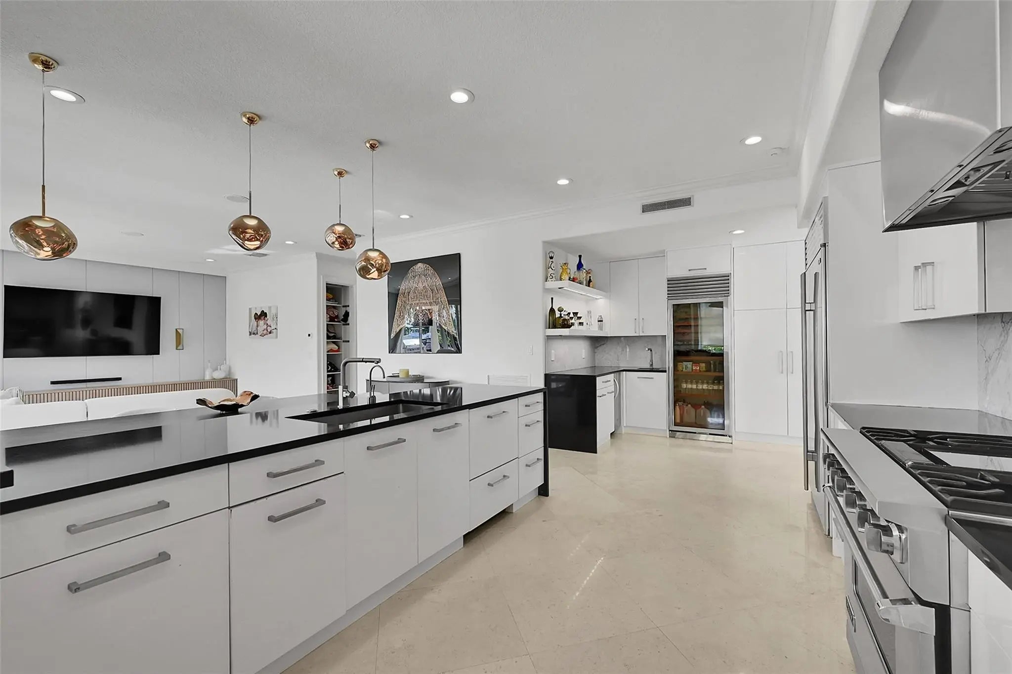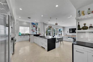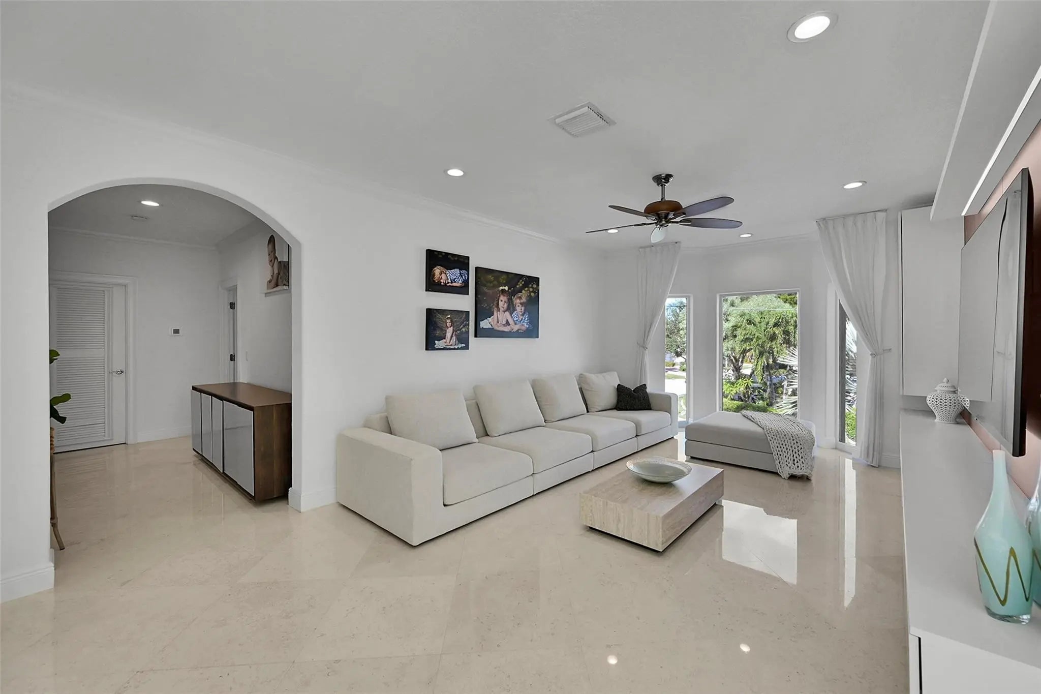 Located on the barrier island, this waterfront residence features 100 feet of frontage with quick Intracoastal access and ocean access via Port Everglades or Hillsboro Inlet. Positioned one lot from the point with desirable southern exposure, the home is filled with natural light. Interior features include marble flooring, impact windows and doors, an open-concept kitchen with white cabinetry, Viking, Sub-Zero, and Thermador appliances, and a wet bar for entertaining. The main level offers two bedrooms, one currently configured as a home theater. Upstairs features four en-suite bedrooms and a loft used as an additional sitting/TV area. South-facing balconies provide water views and sunset exposure.