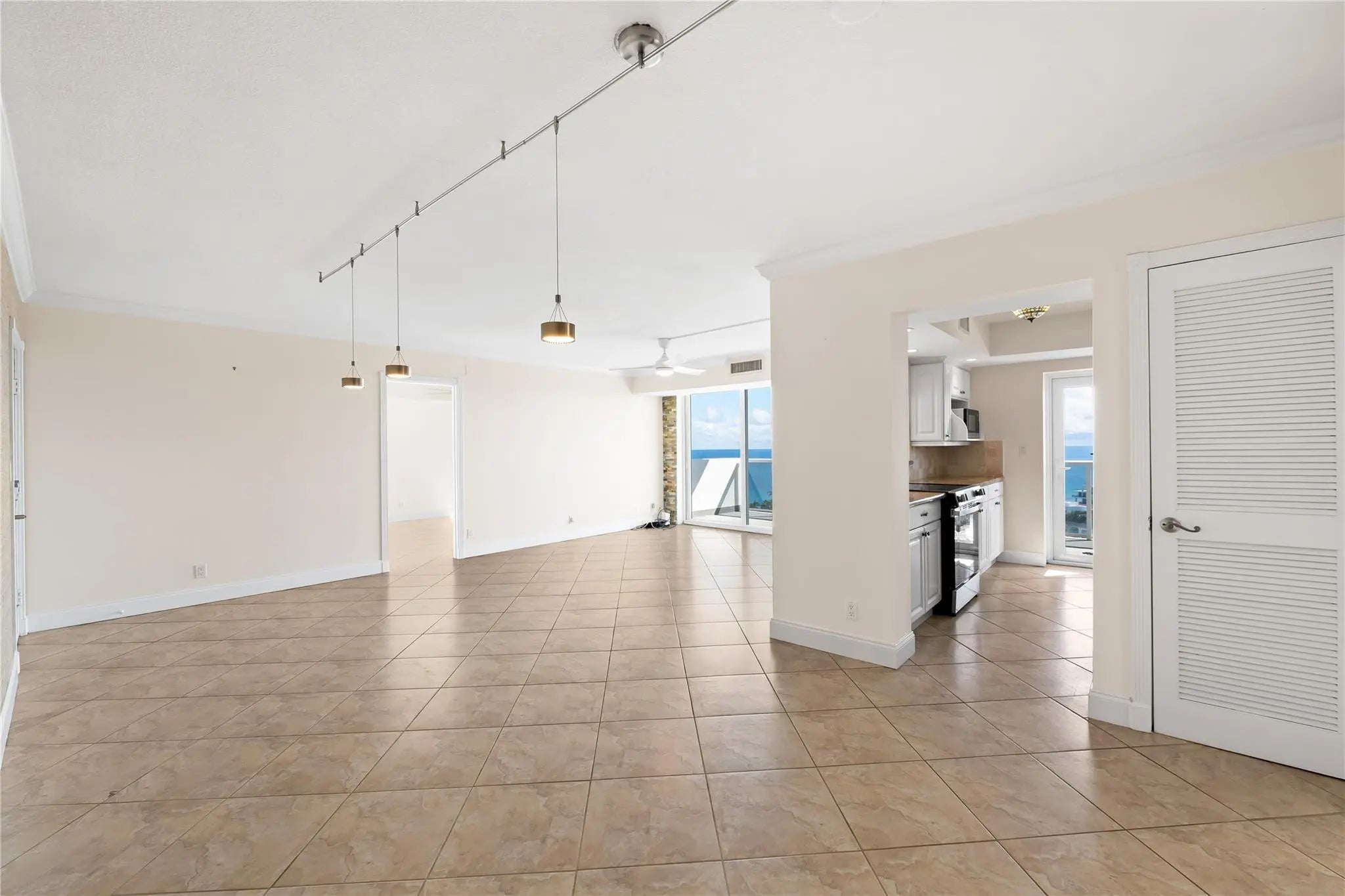 Elevated living awaits in this stunning 15th-floor condominium offering breathtaking ocean & Intracoastal views. This move-in-ready residence features floor-to-ceiling windows throughout, tile flooring, granite countertops, stainless steel appliances, a flat stovetop, & white shaker cabinets. A Tiffany-style light fixture enhances the kitchen, while crown molding & brick accent walls add warmth & character. Enjoy walking-distance access to the beach, while bordering a quiet residential neighborhood perfect for biking, walking, or jogging. Incredible views, stylish finishes, & an unbeatable location. All utilities except electric included in the HOA fee. Shopping and dining within walking distance. Professionally managed building reflecting long-term planning and stability.