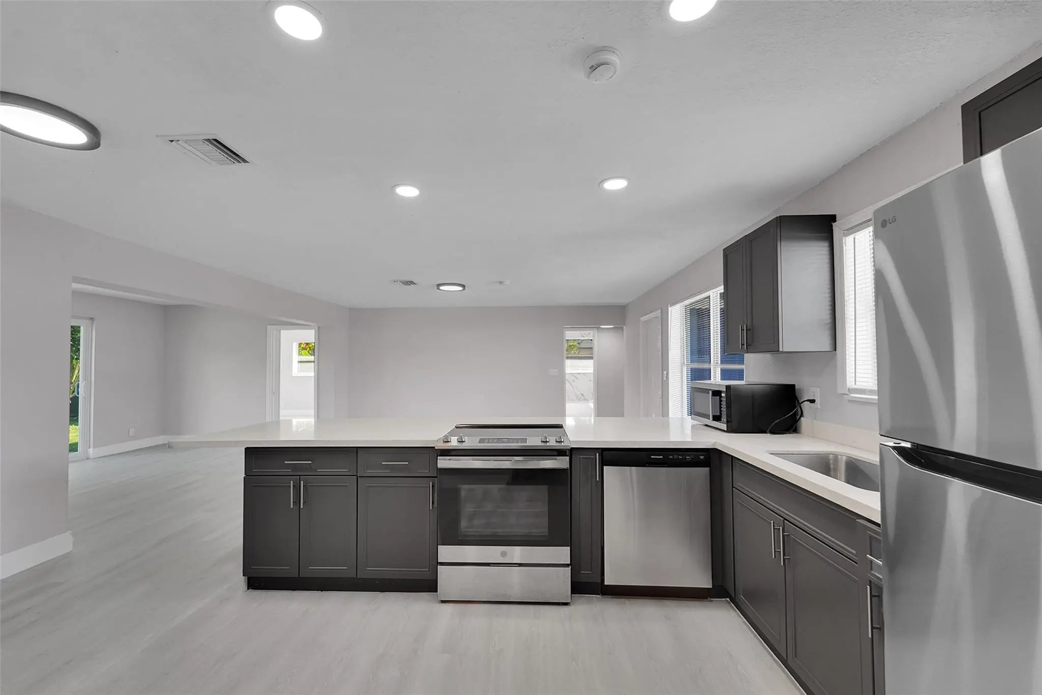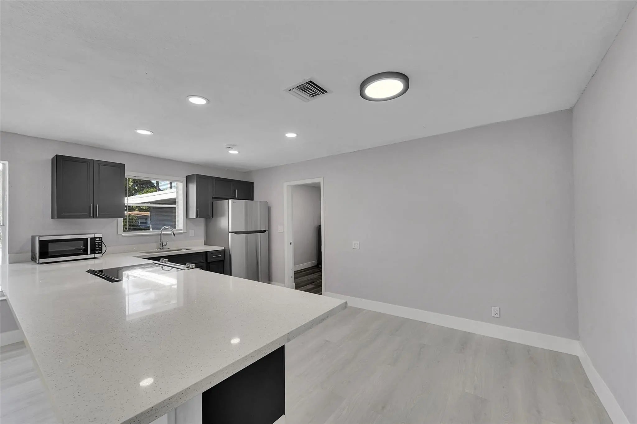 Fort Lauderdale: Updated single-story home with NO HOA, offering a functional open layout and completely move-in ready condition. Major upgrades include a new roof (2021–2023), new AC (2023), and new electrical panels (2021). The open kitchen features quartz countertops, new cabinetry, and stainless steel appliances, along with brand-new flooring throughout and fully renovated bathrooms. The home includes a covered 1-car carport for added convenience. BONUS: Separate side unit (Guest- Inlaw Quarters) with strong income potential—can easily lease for approximately $1,400/month. Ideal for investors or buyers looking to live in one unit and rent the other. Conveniently located minutes from I-95, the Turnpike, Fort Lauderdale Airport, beaches, downtown Fort Lauderdale, Miami, and more.