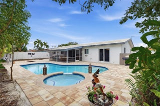 Spacious and well-maintained 2-bedroom, 2-bath single-family residence located in the desirable Coral Ridge Isles neighborhood. The home offers an eat-in kitchen, walk-in closet, expansive living area, and a generously sized kitchen ideal for daily living and entertaining. Additional features include a spacious interior laundry room and an oversized two-car garage. The private, fully fenced backyard is perfect for outdoor enjoyment, featuring a heated pool and spa with brand-new pavers and tile, a large covered screened patio, and hurricane impact windows. Conveniently situated near the beach, I-95, and top-rated schools in a quiet, well-established NE Fort Lauderdale community.