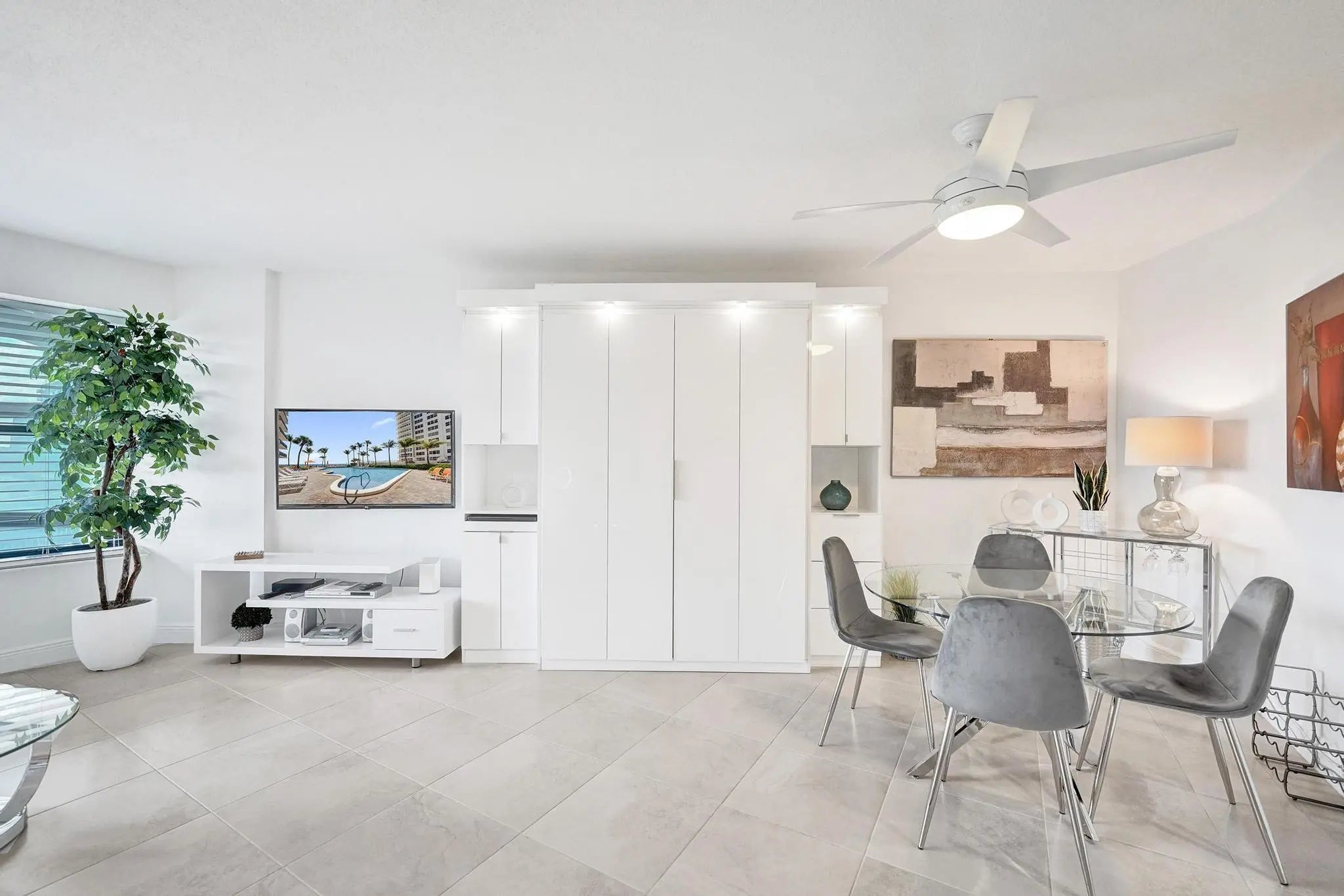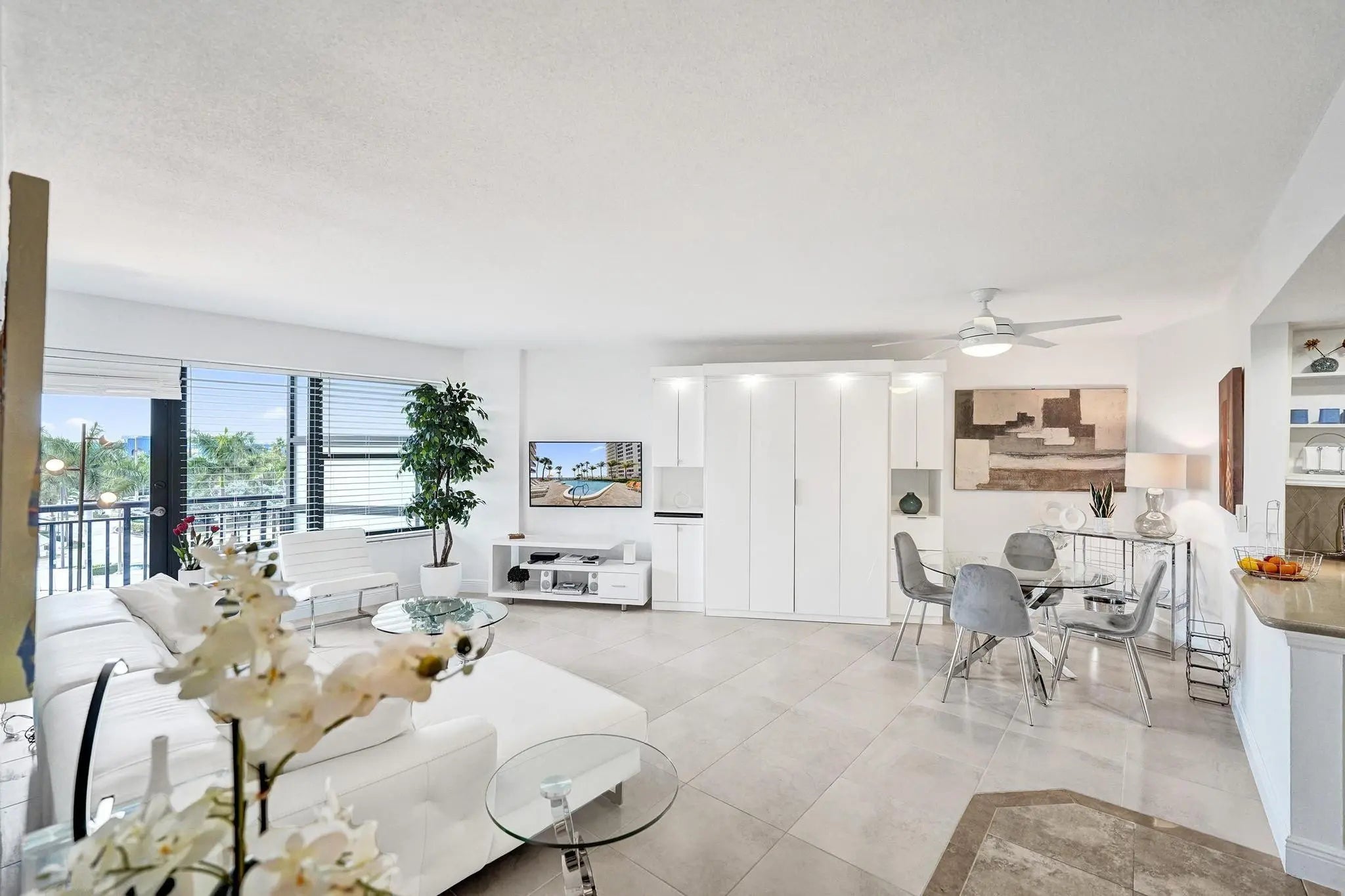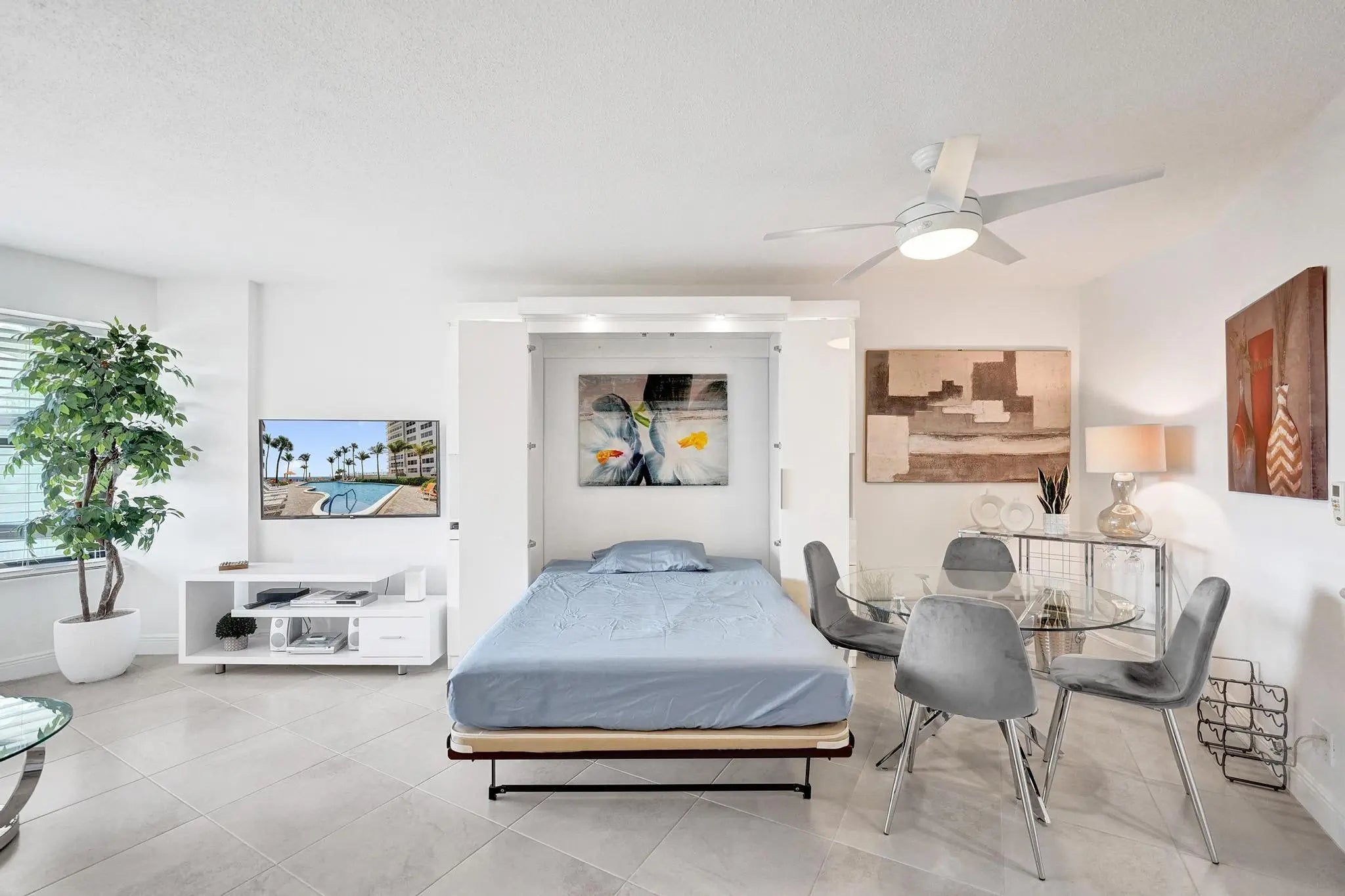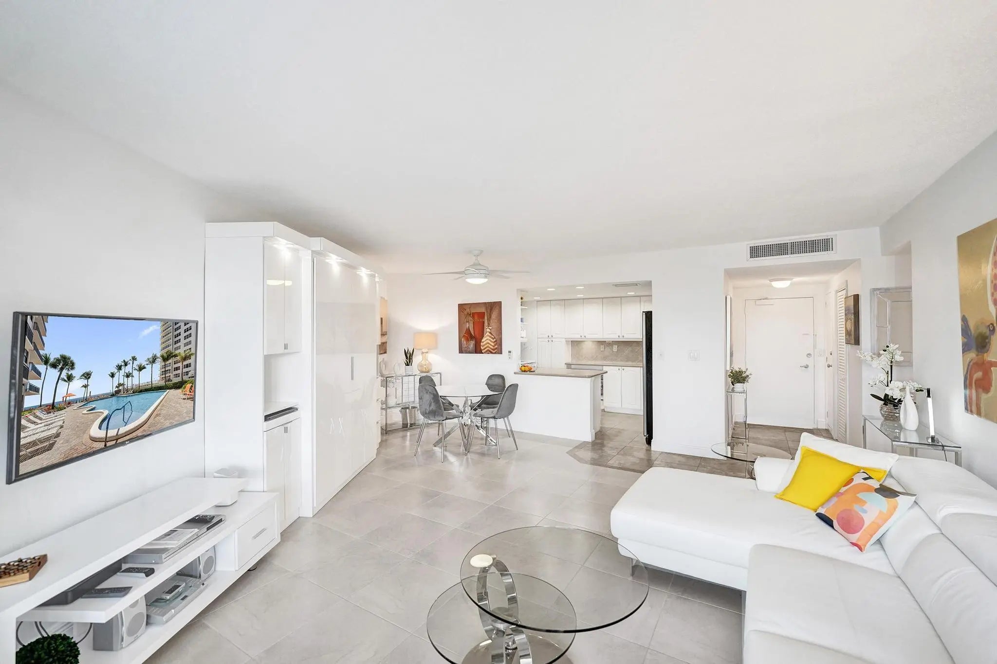 This furnished Galt Ocean Mile residence is move-in ready; just bring your toothbrush. Clean, bright & recently renovated with light decor, the unit features an open-concept kitchen ideal for entertaining. Enjoy west views with sunsets from your balcony, bedroom & living room. The bedroom includes a king-sized bed & the bathroom offers a large vanity. A Murphy bed in the living room provides comfort for guests. Additional highlights include in-unit laundry & a covered garage parking space. Nicely updated building with direct beach access. Amenities include gym, heated pool, hot tub, tennis court, grills, community room w/full kitchen & more. Walking distance to grocery store, restaurants, shops & more. Cable, water, pest control & trash are included in rent.