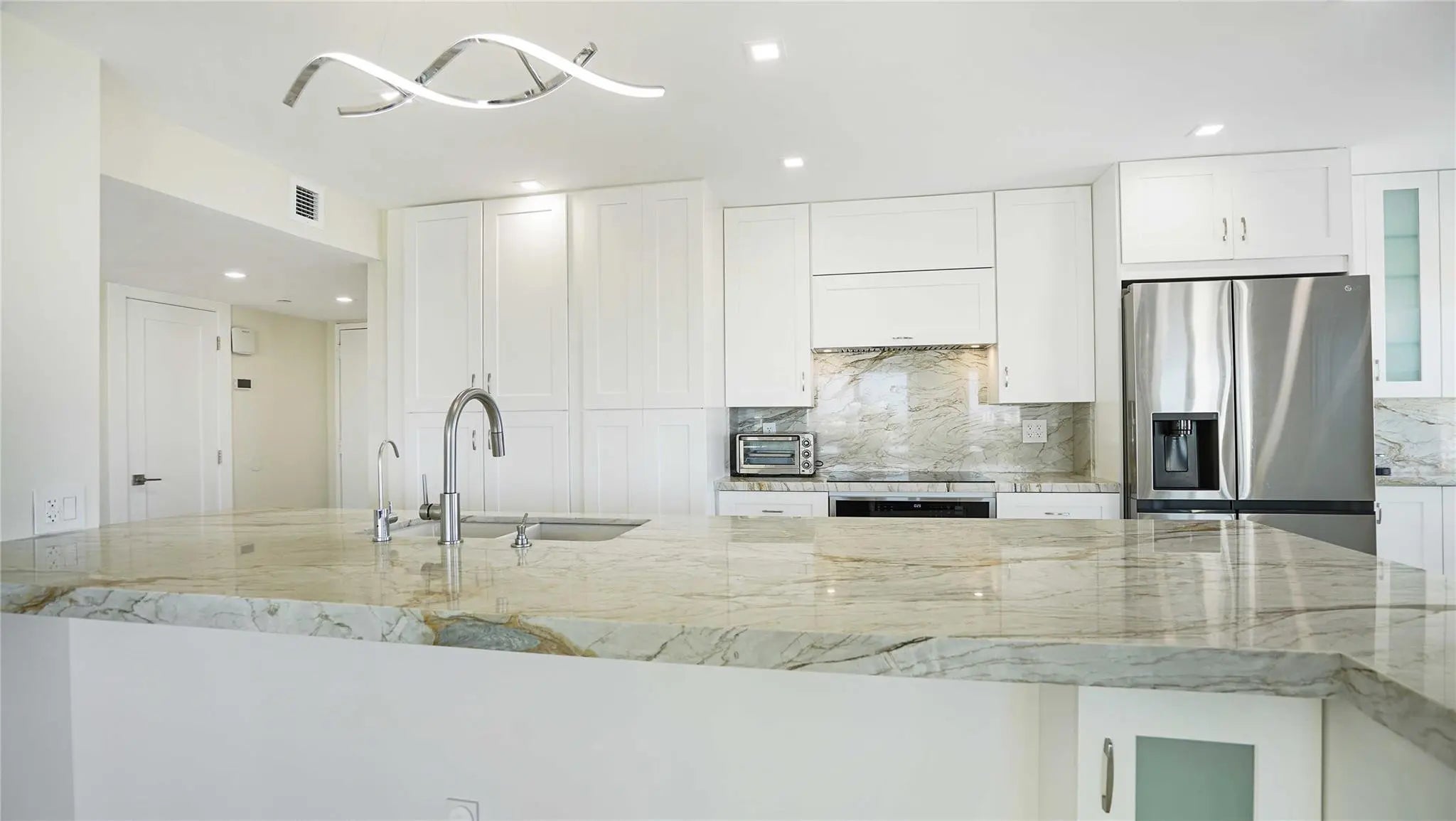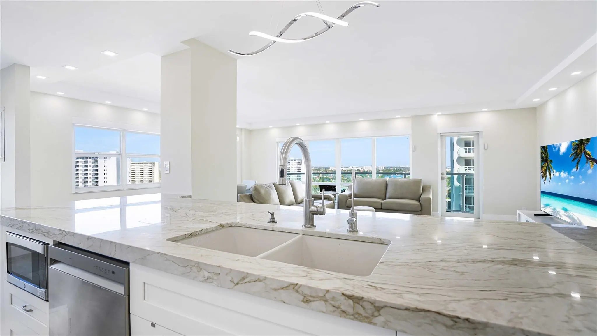 Fully renovated 2-bedroom, 2-bath corner residence offering swiming pool, Intracoastal , and ocean views. Thoughtfully redesigned with exquisite attention to detail, this luxury residence features porcelain flooring throughout, a custom chef’s kitchen, spa-inspired bathrooms, upgraded lighting and plumbing, and new major systems including A/C, water heater, and washer/dryer. Floor-to-ceiling natural light enhances the open, sophisticated layout. Southpoint presents an exclusive resort-style lifestyle with premier amenities including a heated oceanfront pool, tennis court, fitness center, clubhouse, and an oceanfront deck with BBQ area. A rare opportunity to own a beautifully curated residence in a prestigious oceanfront community—schedule your private showing today.