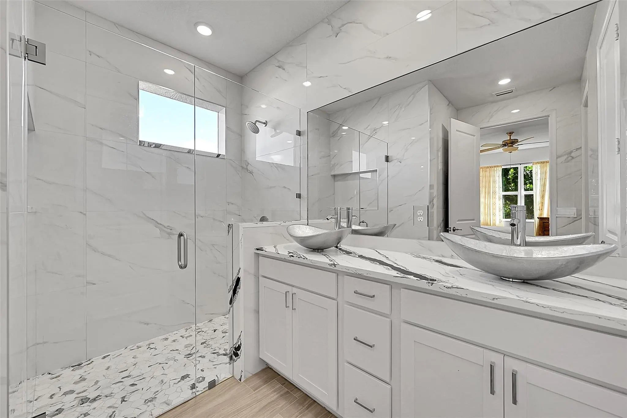 Built in 2024, this upgraded home sits on a premium corner lot in gated resort-style community of Delray Trails. Featuring 3BR, 2 baths, 2 car garage. Bright, open floor plan with newly enclosed screened patio for relaxing or entertaining, plus extended front patio. Kitchen includes upgraded lighting, top of the line refrigerator, extended backsplash & custom bar area. The primary bath has been elevated into a luxurious spa-like retreat with a high-end walk-in shower and floor-to-ceiling porcelain tile, complemented by premium finishes. The 2nd bath also recently renovated with top-quality materials. Delray Trails offers a new 28,000-sq ft clubhouse, resort-style pool w/beach entry, lap pool, fitness center, tennis, pickleball, bocce, & more. Short ride to downtown Delray Beach & ocean.