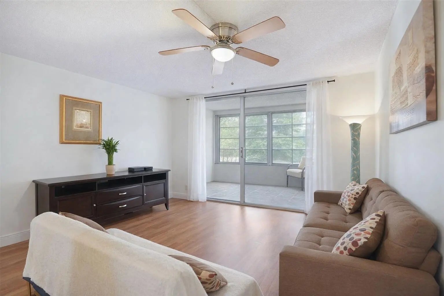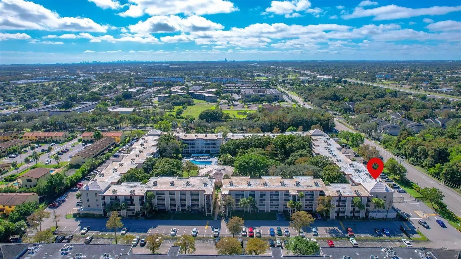 Discover this well-maintained 1-bedroom, 1-bath condo offering comfort and low-maintenance living in a desirable 55+ gated community. Conveniently located near Florida Medical Center and Oakland Medical Mall, with public transportation directly across the street. The unit features a spacious enclosed balcony overlooking lush garden views, large enough to be used as a sitting area, home office, or flexible guest space. Recent updates include a newer central A/C system (2022). Residents enjoy an elevator, laundry facilities, a community pool, and a clubhouse with billiards and social areas. Seasonal rentals permitted after the first year of ownership.