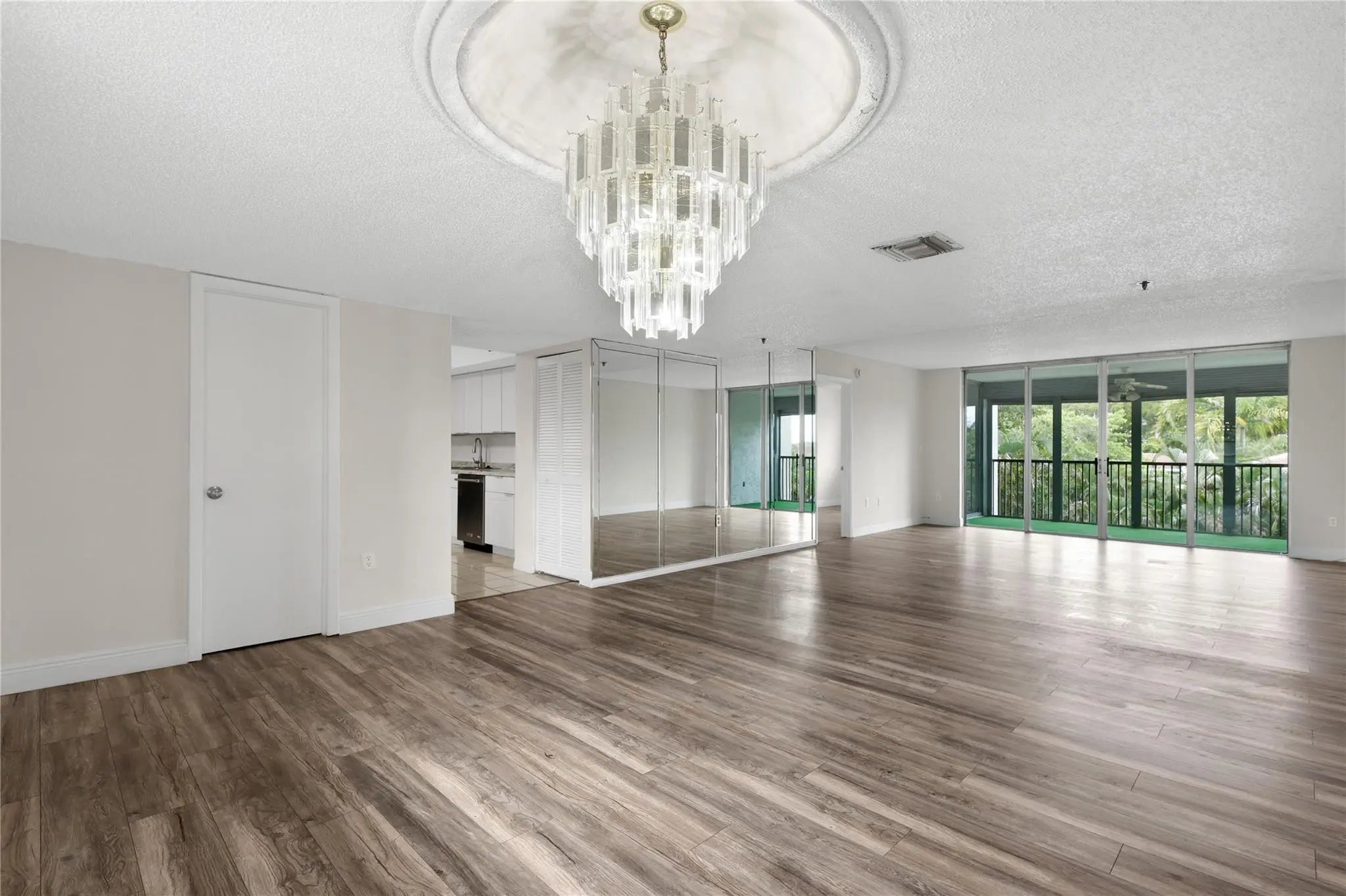 Spacious and well-maintained condo located in a desirable 55+ community. Bright open living and dining area with wood-style flooring and neutral finishes. Sliding glass doors lead to a private screened balcony with tranquil tropical views. Updated kitchen features white cabinetry and stainless steel appliances. Community amenities include pool, tennis courts, library, and beautifully maintained grounds. Conveniently located near shopping, dining, and the Florida Turnpike. Move-in ready—schedule your showing today.