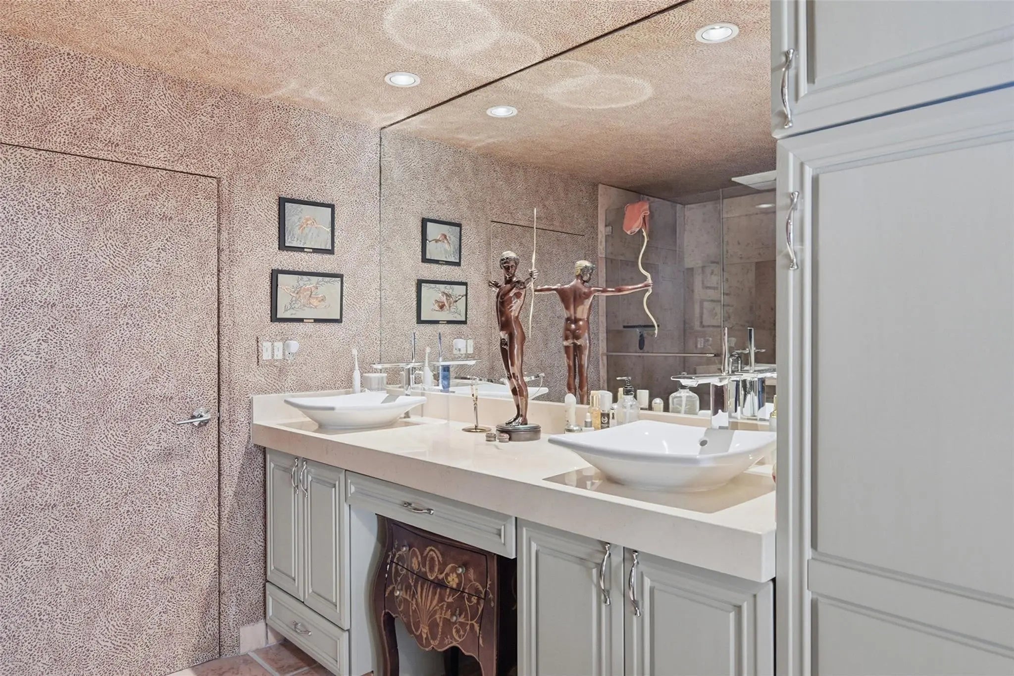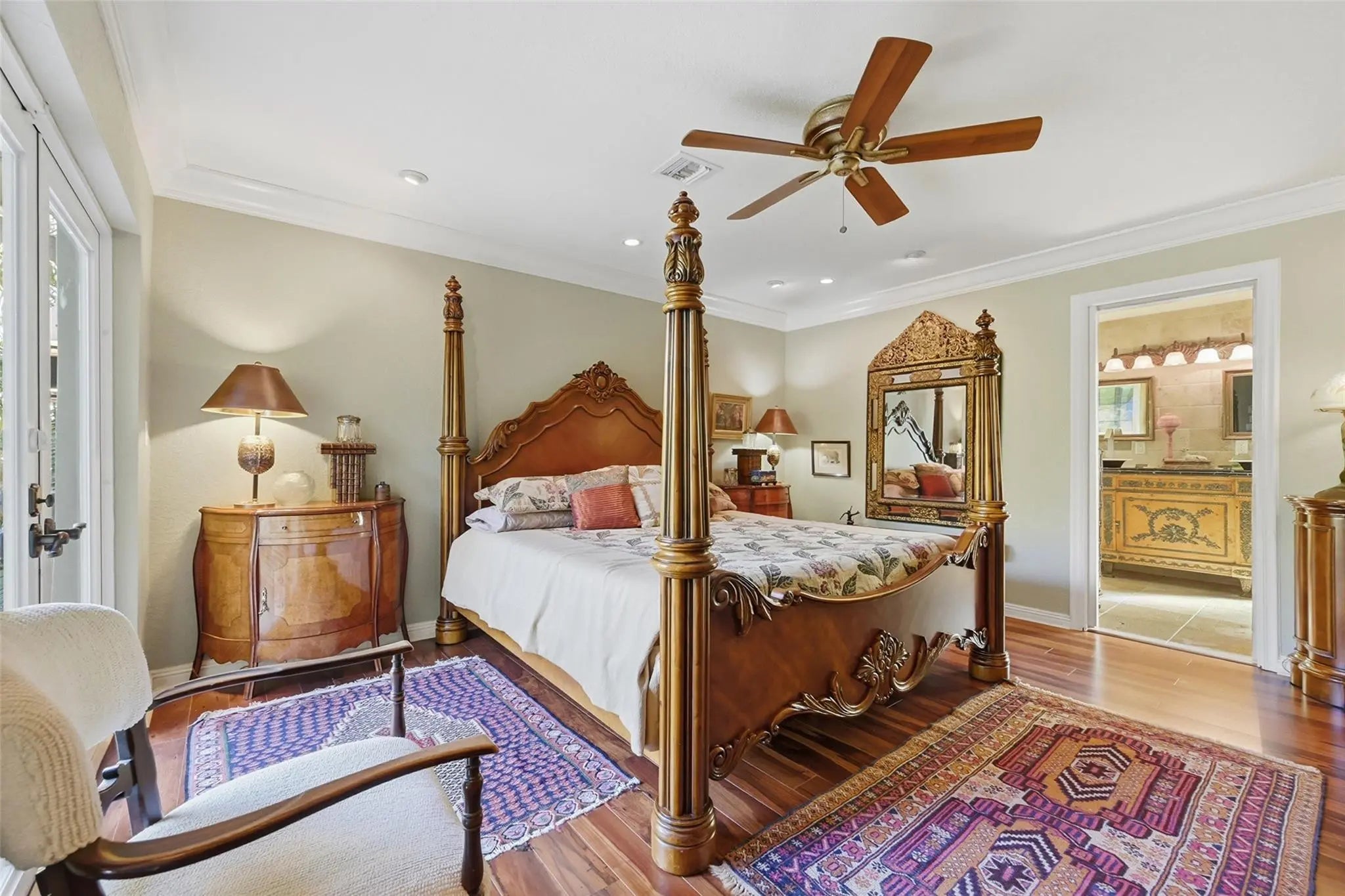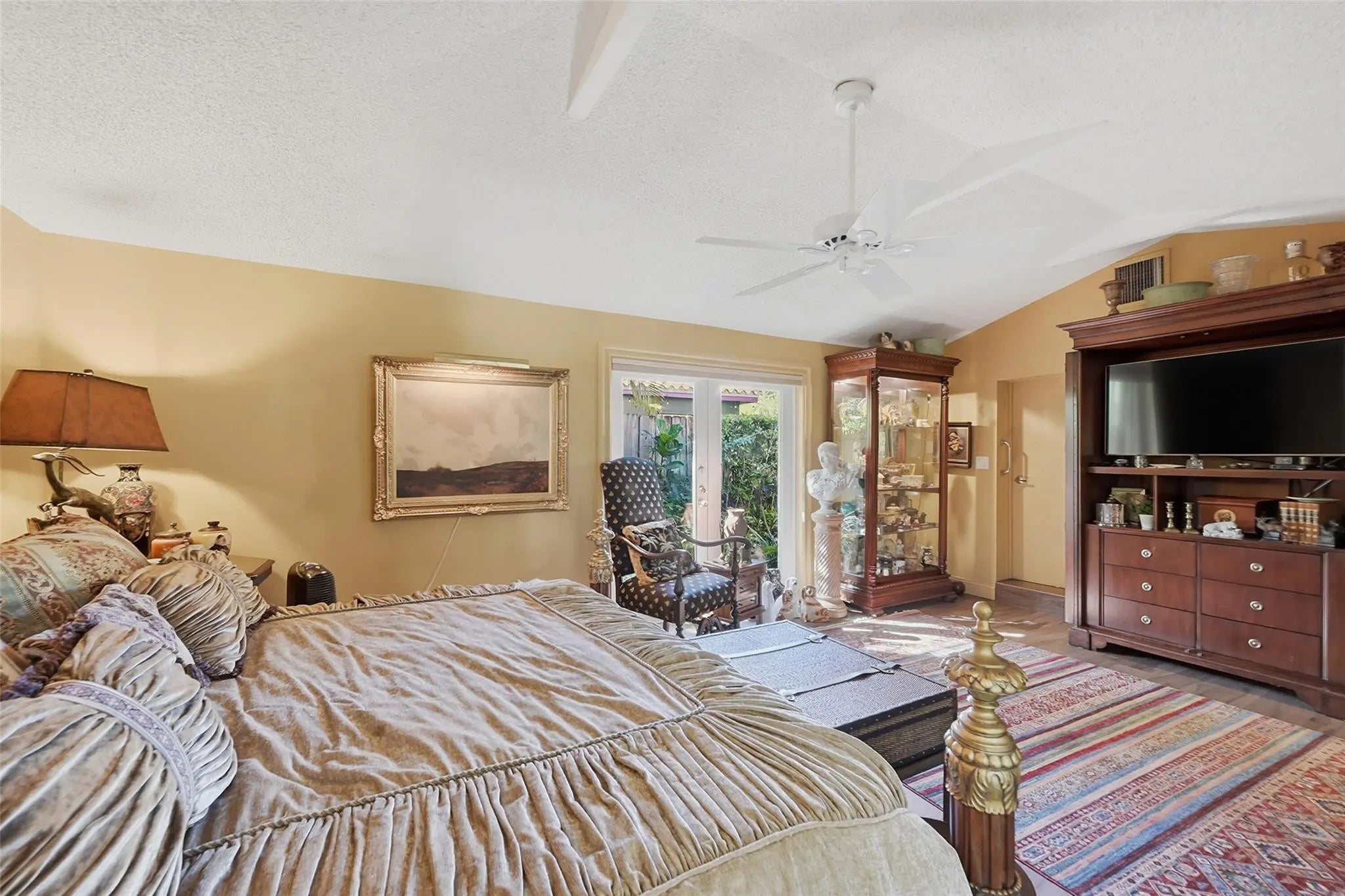 Experience light-filled luxury in this 3BD/3BA Mediterranean estate on a lush 10,005 SF lot. An open floor plan reveals vaulted ceilings, Brazilian Cherry and Maple floors, and a dramatic eat-in kitchen with a spiral staircase leading to a loft home office. The airy Florida Room overlooks tropical gardens cultivated over 30 years and a newly remodeled pool (2025) with an outdoor shower. Dual Primary Suites offer total privacy: the 1st-floor retreat boasts a spa-bath, while the upstairs suite features a private balcony. The main level is further rounded out by a cozy den and a separate guest bedroom with a European-style bath. A unique 2-story garage serves as the ultimate hobbyist’s dream with a commercial door, car lift, catering ovens, and ample storage. Freshly painted!