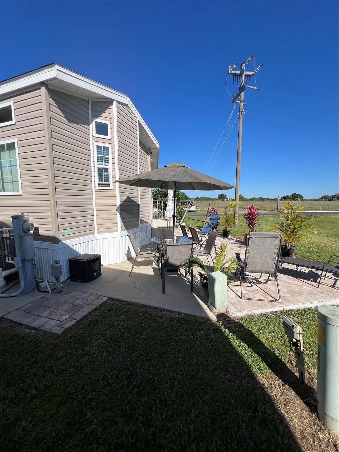 Beautiful 2019 Chariot Eagle with a 2022 addition, located in the desirable Ancient Oaks RV Resort a 55+active community offering resort-style living. This well-maintained home features 10-foot ceilings that create a bright open feel, along with laminate flooring throughout and custom blinds. The kitchen is equipped with GE appliances and a dishwasher, offering both style and functionally. Enjoy the convenience of a covered carport and relax outdoors with Outback patio furniture, which stays with the home. Furnished and turn key, making this home truly move-in ready. Community amenities include a heated pool, clubhouse, pickleball courts, billiards room, marina with boat ramp. Pet friendly. Ideally located near shopping, casino, dining and minutes from world-famous Lake Okeechobee fishing. All measurements are approximate and must be measured for exact.