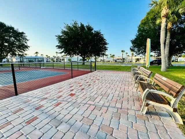 Welcome to Ancient Oaks RV Resort, a desirable 55+ gated community offering resort-style living and an active lifestyle. This cozy one-bedroom, one bath cottage-style home is move-in ready and comes fully furnished, making it ideal for seasonal or full-time living. The home has been tastefully updated and features a new AC (2025), newer refrigerator, and hurricane shutters for added peace of mind. Enjoy a comfortable and efficient layout that's easy to maintain and perfect for relaxing after a day of activities & fishing! Ancient Oaks offers world-famous fishing, a marina with boat ramp, heated pool, pickleball courts, billiards room, large clubhouse, and a full calendar of social events. Pet friendly community with pet parks. Affordable, low living in a friendly, active community. All measurements are approximate, must measure for exact.