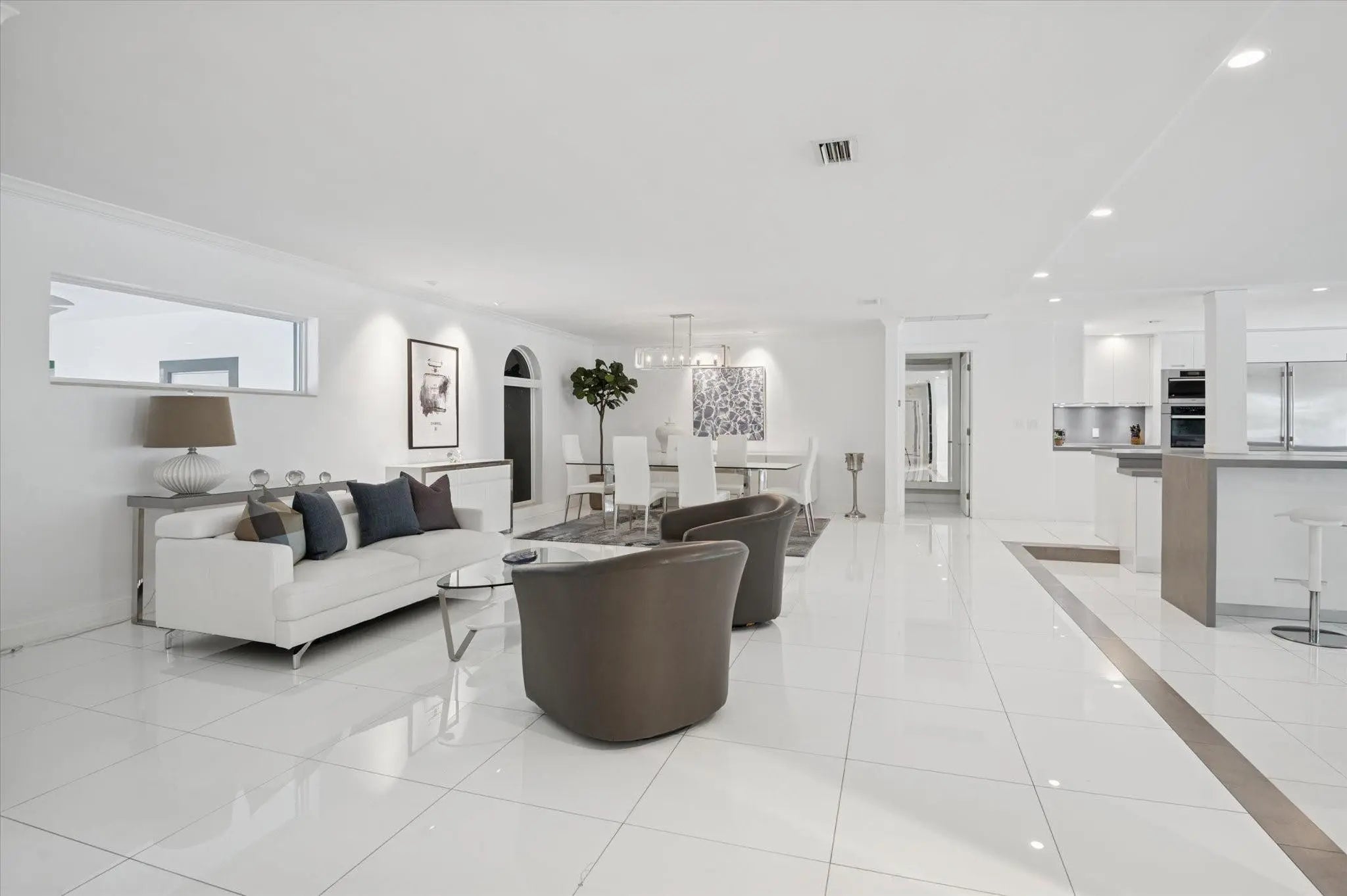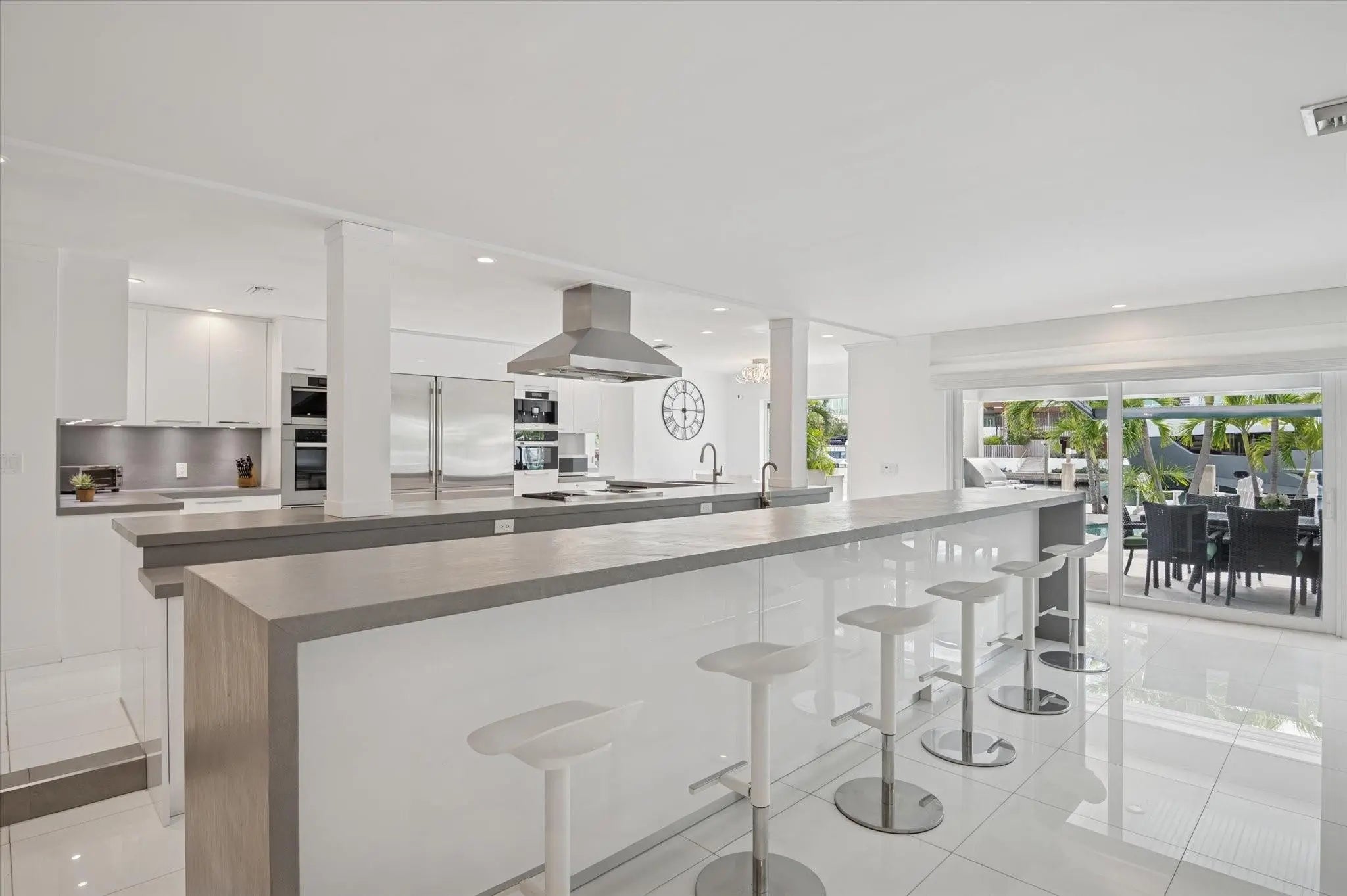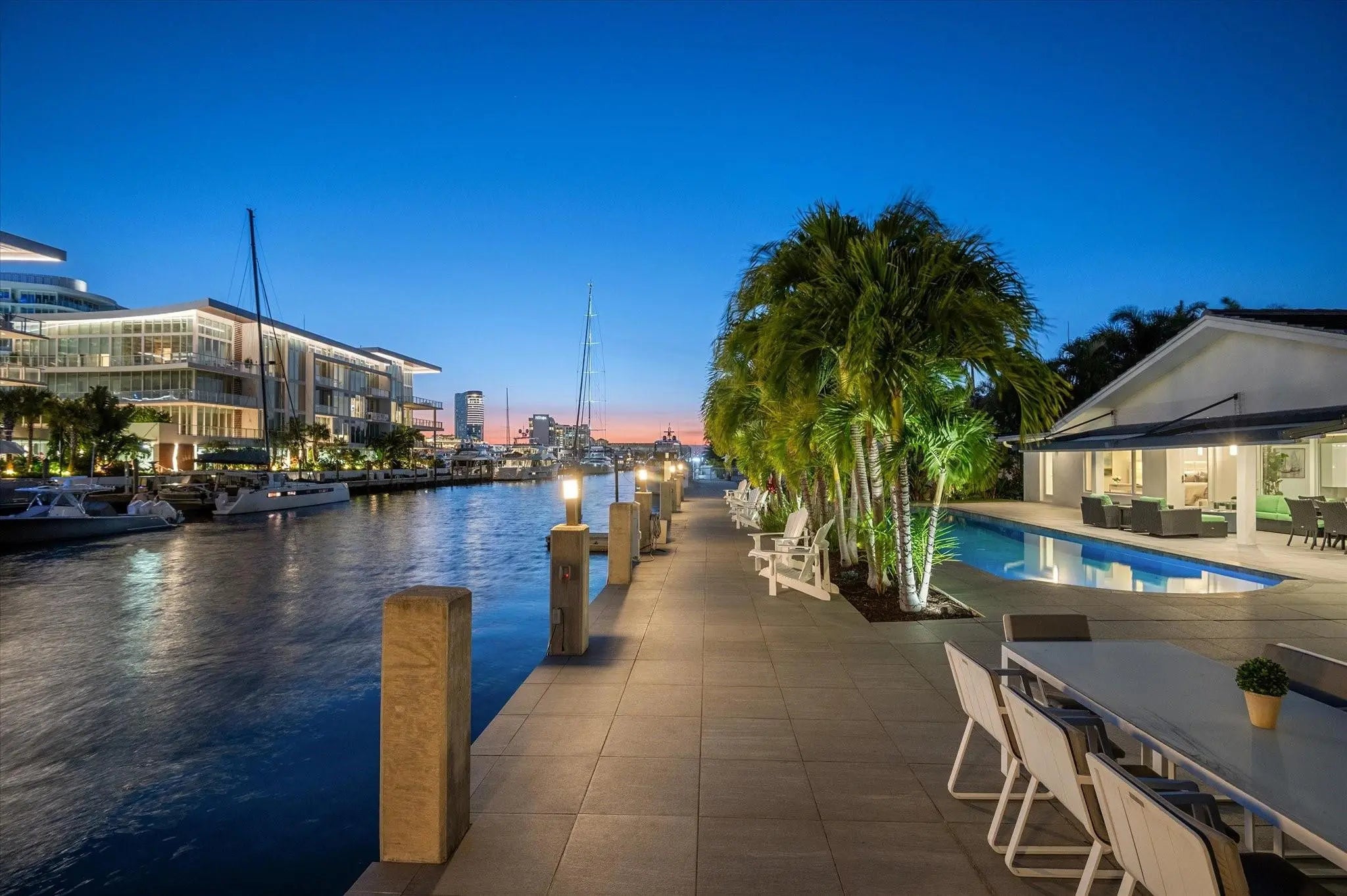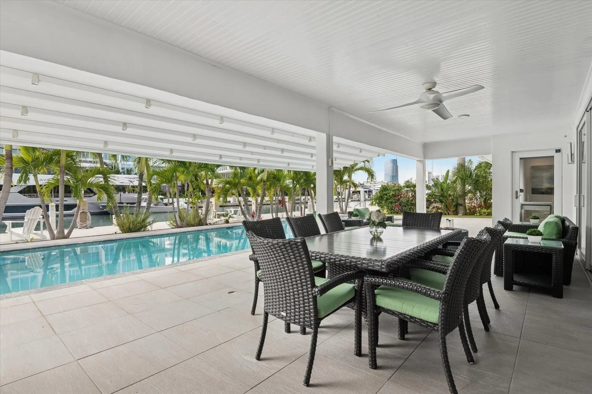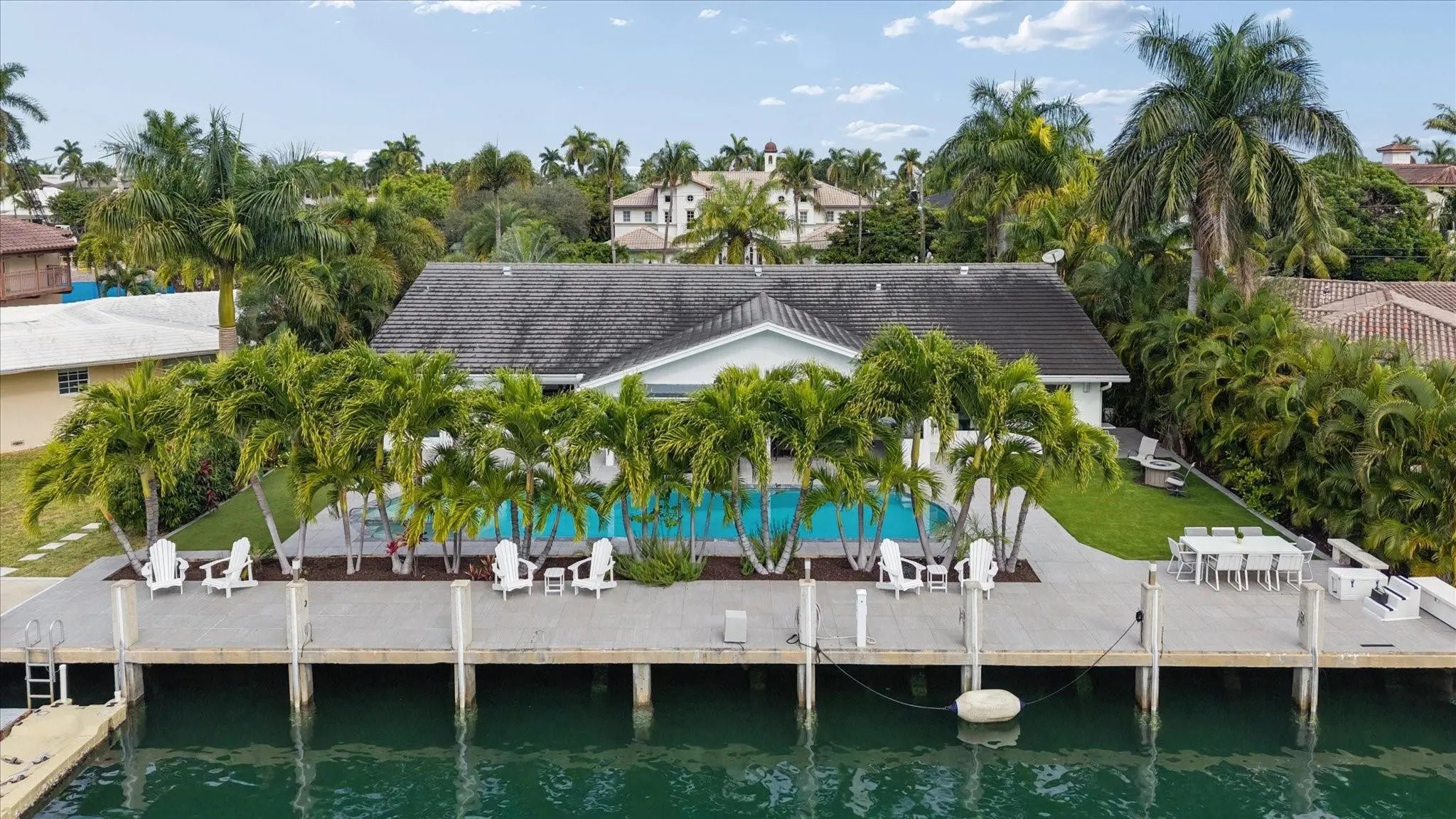 This beautifully designed single level ranch residence is thoughtfully designed in light, bright neutral tones, creating a timeless and sophisticated ambiance. The chef's kitchen seamlessly opens to expansive living and dining areas, ideal for both intimate gatherings and grand entertaining. The generously sized primary suite serves as a serene private retreat. Boaters will appreciate 95 feet of dockage with quick ocean access just minutes away. Outdoors, enjoy a resort-style lap pool and fully equipped summer kitchen, perfect for elevated waterfront entertaining. Ideally located near pristine beaches, acclaimed dining, and premier shopping destinations. Beach Club and Marina available.