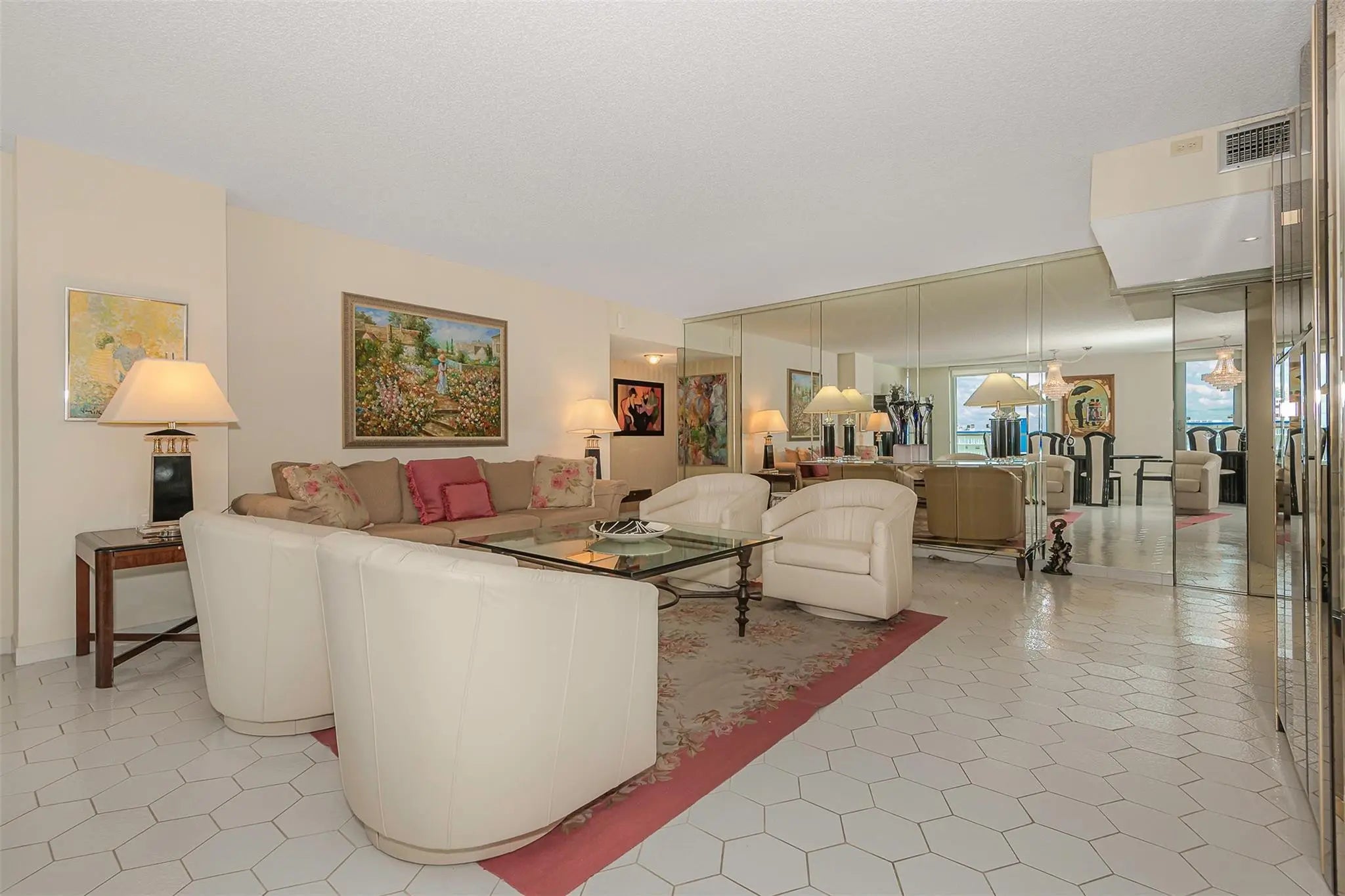 MALAGA TOWERS-Luxurious Lobby, Entrance, & bldg. only 4 corner units per flr. Unit is located in the building closest to the beach, and also has the largest sq ft of all C units. The C unit have a 2nd door opening to balcony from mstr. bdrm. Very lg bdrms w/lg walk-in closets. Huge recreation/party room w/kitchen opens to pool terrace, a new gym w/baths,showers & sauna . Beach chair service. Heated pool with cabanas on pool deck. Ocean front tennis court attached to pool deck. Two BBQ’s with separate eating area on terrace. Covered parking & 24 hr security. Building recently received its 40/50 year recertification. washer/dryer in the unit. Live in this unit comfortably while you plan for any renovations. Pool area Always in the sunshine!!Dogs allowed. Easy to see