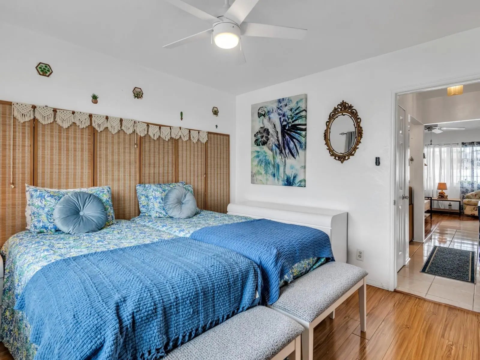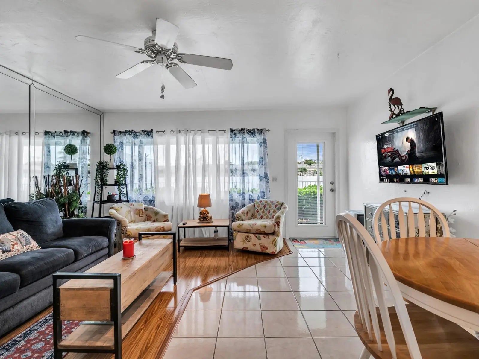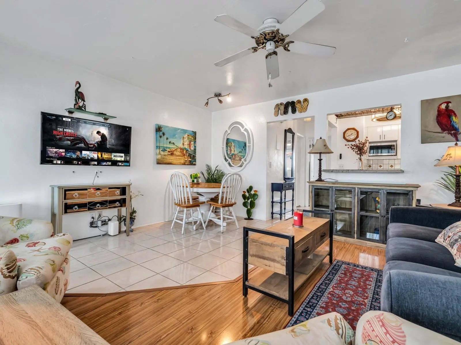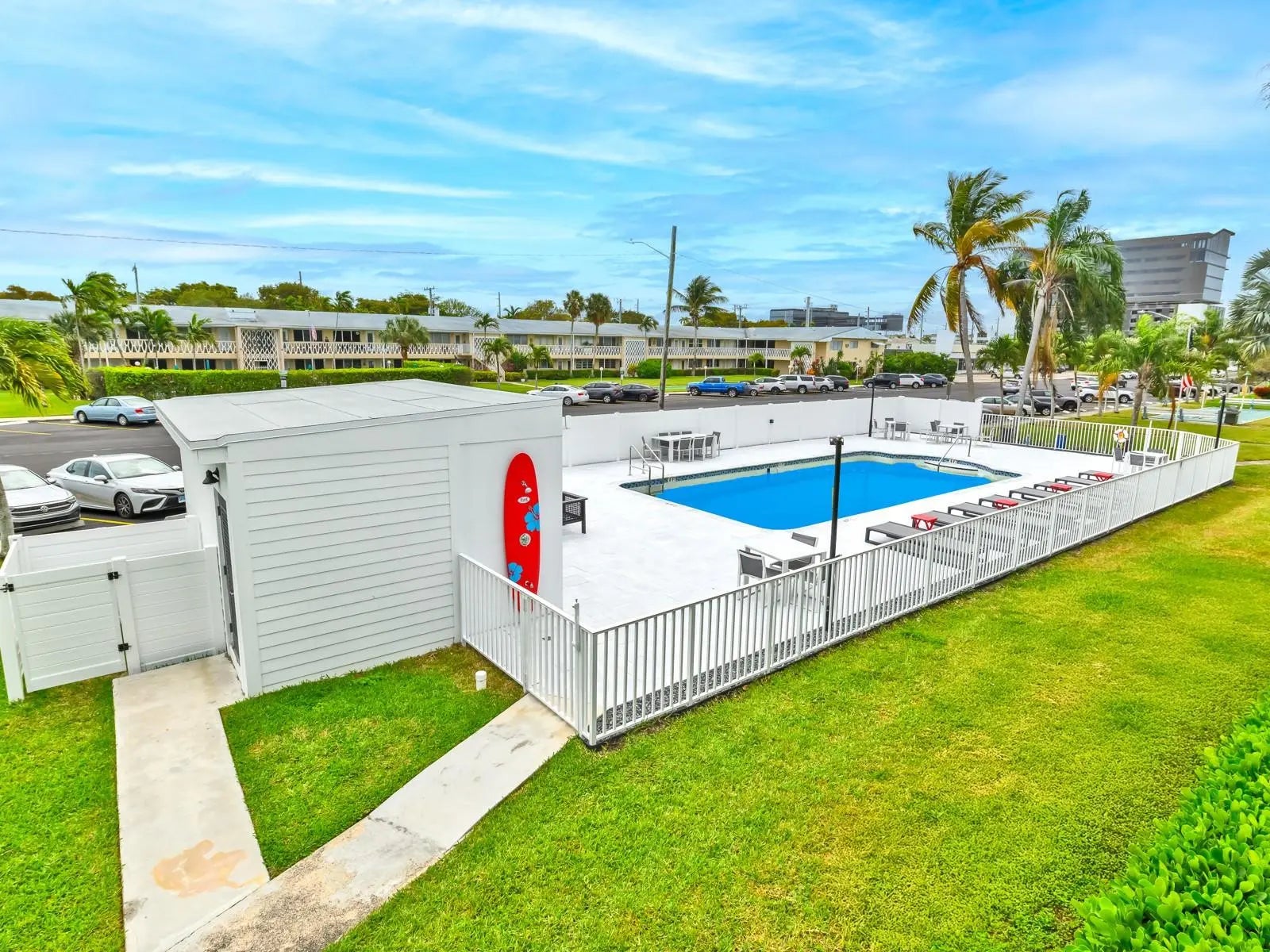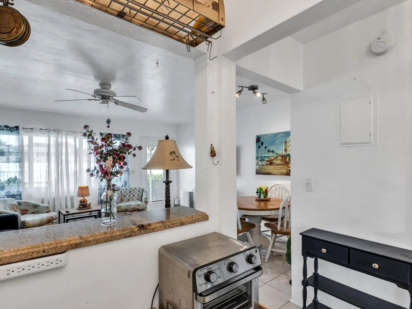 READY TO MOVE-IN and ONLY $300/M MAINRTENANCE! Charming 1st FLOOR unit sold FURNISHED TURNKEY within 1 MI. from Hallandale Beach. This Coop OWNS HER LAND, no land lease here. This unit features New IMPACT WINDOWS & DOORS (2024). New A/C 2026 . Upgraded KITCHEN with newer glossy white cabinets, ceramic countertop & newer appliances (2017). Large pantry inside. Ceramic & Laminated wood floor through. Bright living room, furnished with sofa-bed and wall mounted flat screen TV. Updated bath with newer vanity, medicine cabinet & toilet. The bedroom has a wall-to-wall closet. Chest freezer & bicycle included. Amenities included heated pool, BBQ area, shuffleboard, laundry rm, extra storage. No rentals but family members are allowed to use the unit. CASH ONLY & 55+ BLDG. Walk to shops, casino...