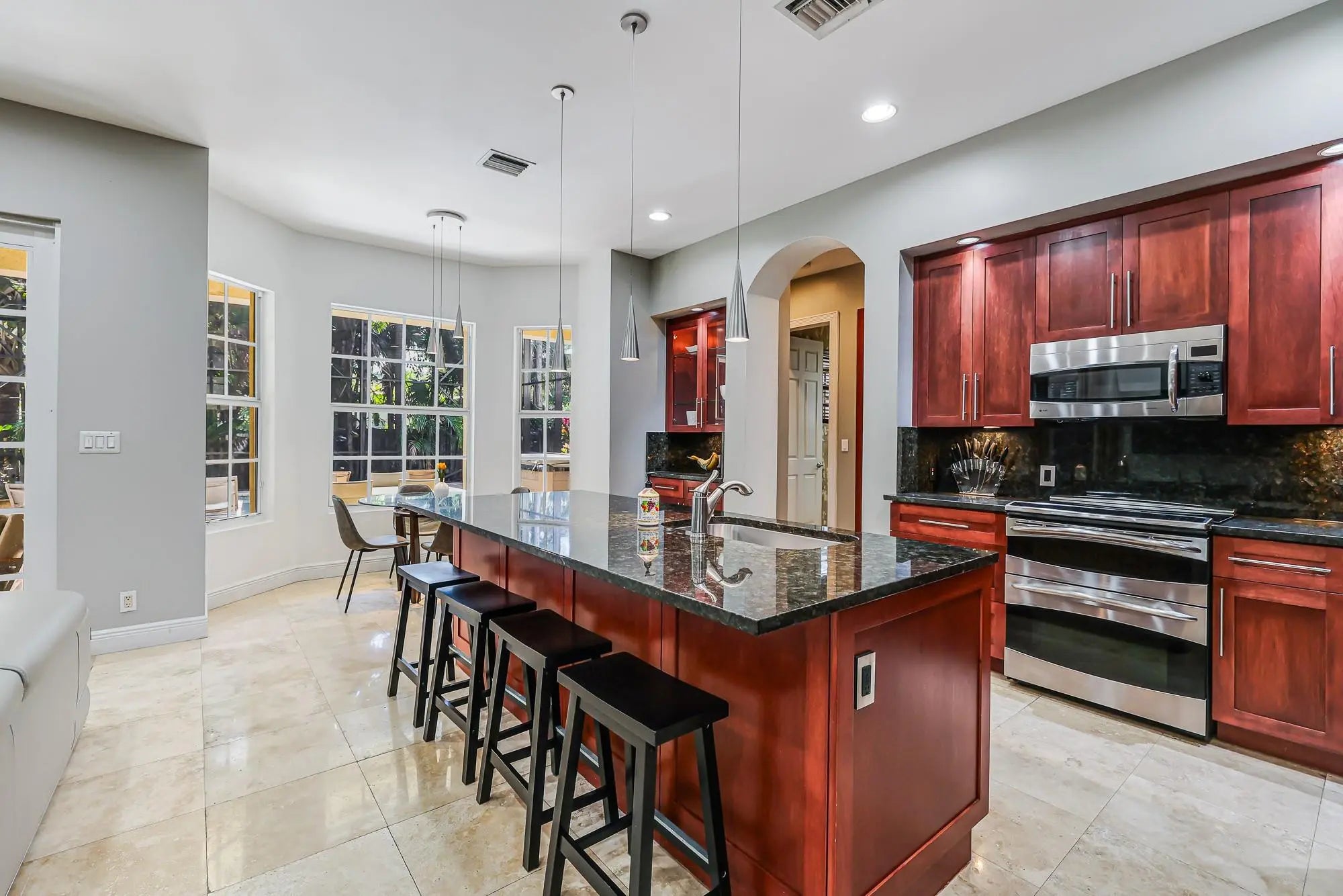 This standout two-story residence delivers scale, style, and a premier location. Featuring 4 bdrms, 3.5 baths, plus a private office and dedicated fitness room, the floor plan is designed for today’s lifestyle.The chef-caliber kitchen showcases granite counters and rich cherry cabinetry, flowing effortlessly into the spacious family room. Full impact windows and doors.Upstairs, the oversized primary suite serves as a true retreat with custom closets and a private covered balcony.The real focal point is outside — a fully enclosed, two-story atrium courtyard that creates a private, resort-style pool and spa oasis wrapped in lush tropical landscaping.Positioned on one of the most sought-after streets in Wilton Manors, opportunities like this are few and far between.