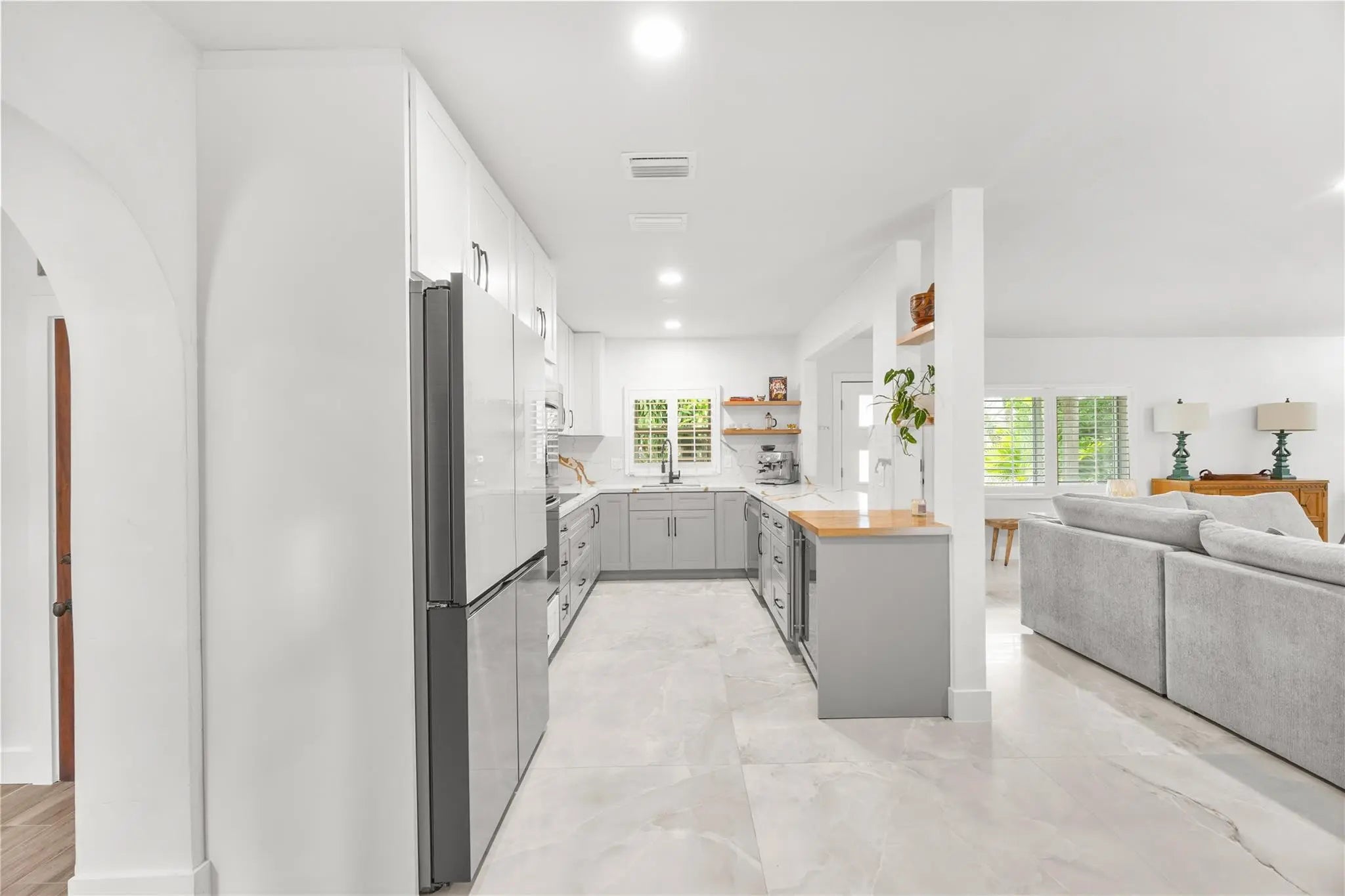 Located in desirable Coral Ridge and the Bayview Elementary school district, this fully renovated 3BD/3BA furnished home features a new 2024 roof, porcelain tile flooring, updated kitchen and baths, impact windows, and fresh interior paint. Southern exposure fills the bright open layout with natural light. The modern kitchen offers stainless steel appliances, double ovens, and a wine cooler—perfect for everyday living and entertaining. The spacious primary suite includes a beautifully updated ensuite bath. Enjoy a private fenced backyard retreat with pool, hot tub, oversized infrared sauna, outdoor shower, BBQ area, and lush landscaping. Ideally located just ¼ mile to Publix, Starbucks, and Galleria Mall, and approximately ½ mile to the beach. Truly move-in ready coastal living.
