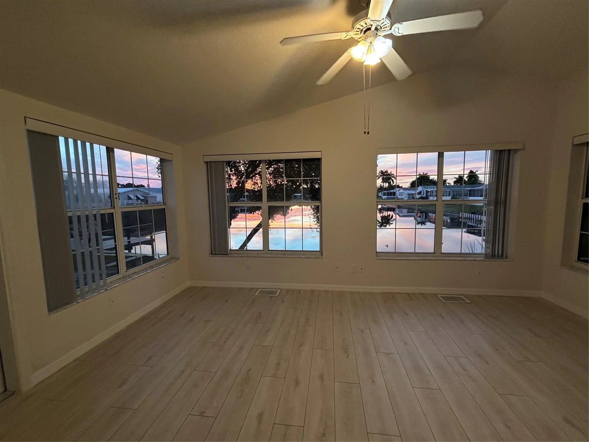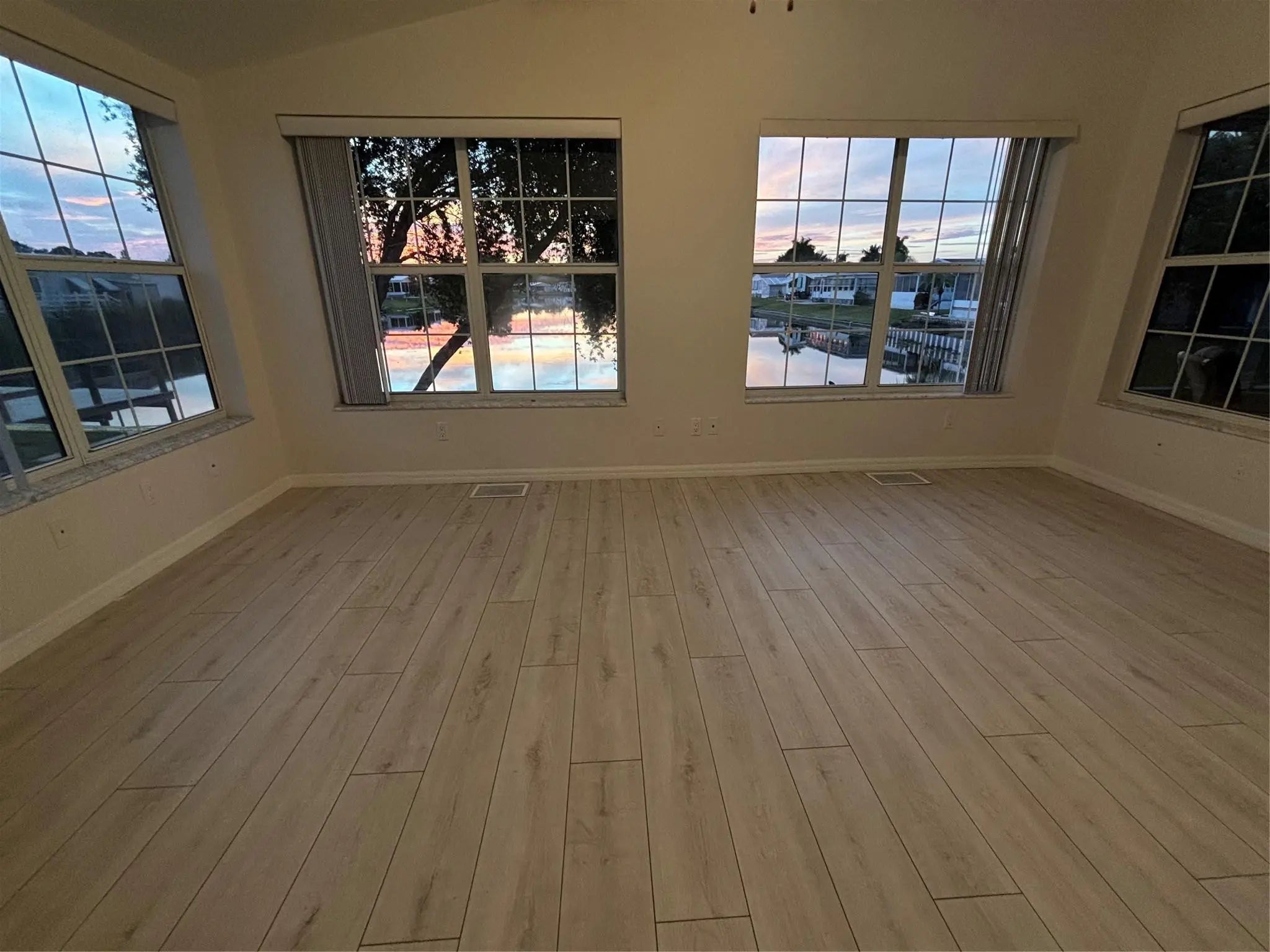 Welcome to this stunning Waterfront 2-bedroom, 2-bath home located in Seminole Cove, a 55+ Community. Recently updated Kitchen with new kitchen cabinets, solid surface countertop, tile back splash and new stainless steel appliances. New flooring throughout entire home. Both bathrooms have been updated. 12 x 19 enclosed Florida room with central A/C and a beautiful view of the water and sunset. 12 x 15 screen porch, and a 12 x 8 storage shed. Large carport that can fit two cars or a boat. 2,248 total square feet. Enjoy all the amenities of Seminole Cove, including the clubhouse, heated pool, shuffleboard, and storage area for boats or trailers. All measurements are approximate.