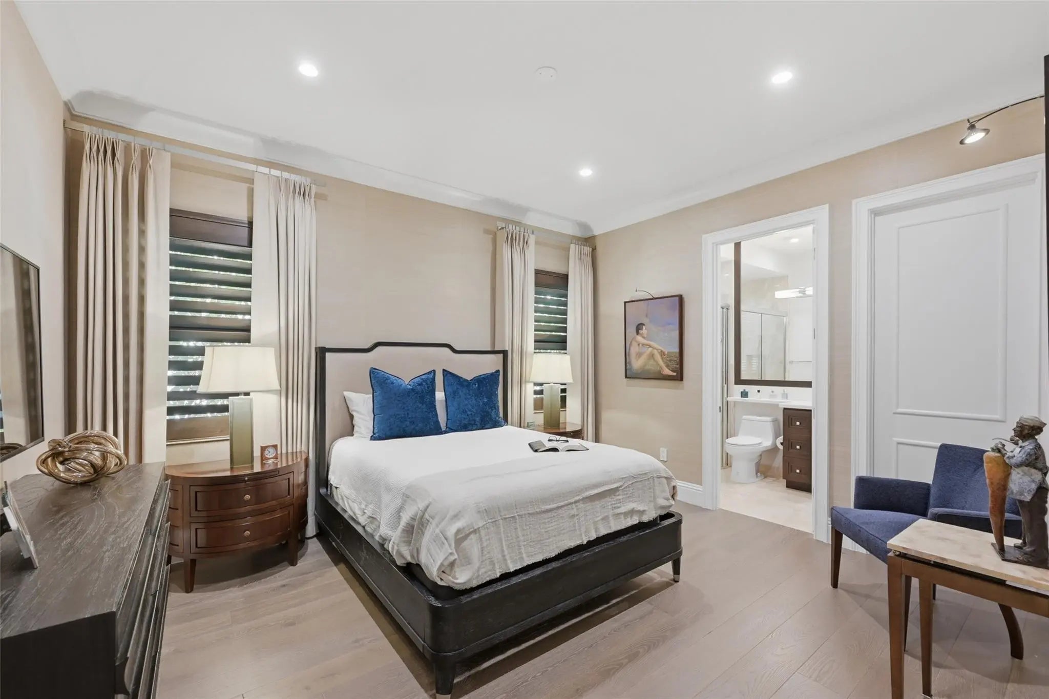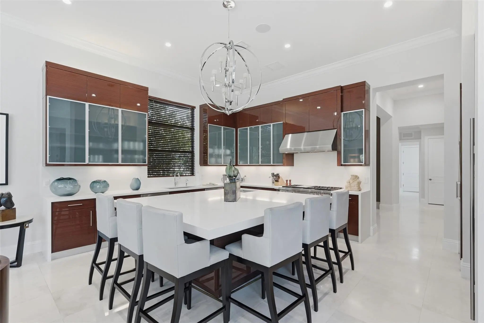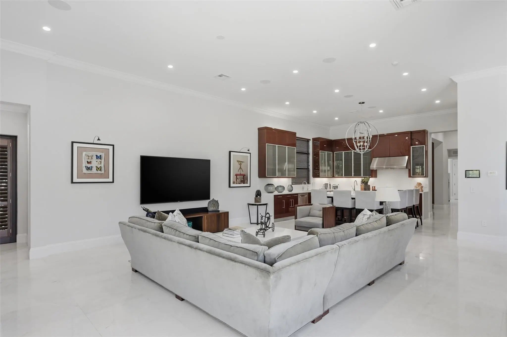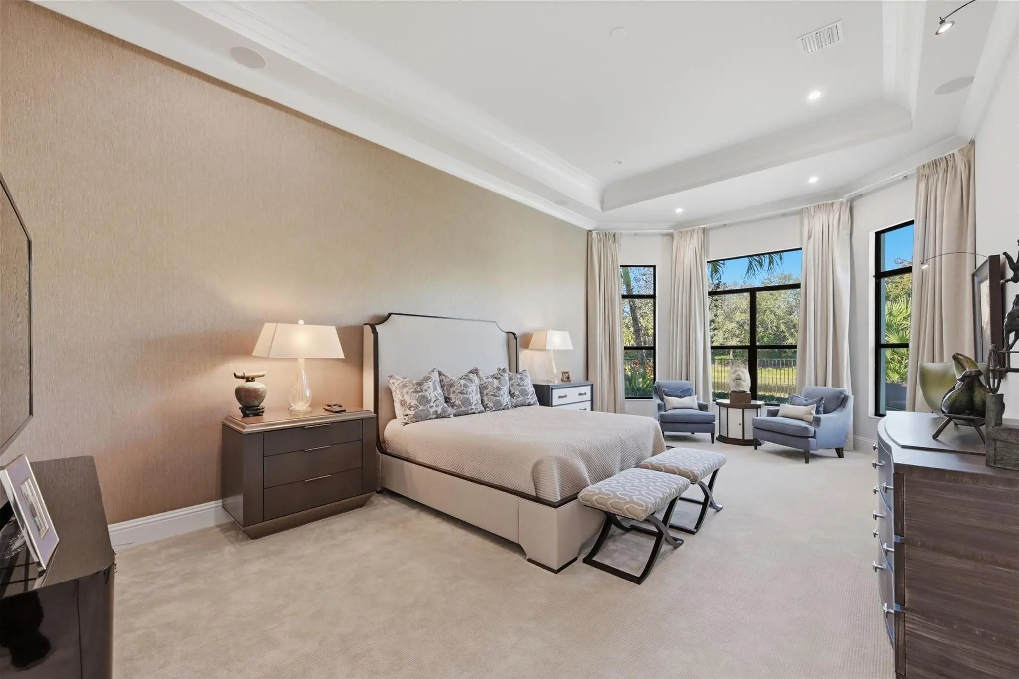 Walk into sophisticated living in this magnificent Turn Key, professionally designed modern masterpiece. A Belvedere Extended model, is 4,956 SF under air, on 1/2 acre waterfront paradise. The grand entry unfolds 4 BR/ 5 1/2 BA, Library or 5th BR + OFFICE with stylish custom finishes, an indoor/outdoor lifestyle overlooking picturesque views. Relax in the resort styled pool & lanai complete with a summer kitchen in total privacy from neighbors. The open plan is elevated with professionally designed furnishings, window coverings & custom wall paper creating the perfect furnished home; Turn Key & Move in ready. Seven Bridges boasts a resort lifestyle with unmatched amenities for vibrant people of all ages: Clubhouse, Pools, Playground, Restaurant, Tennis/Pickleball & Social Clubs. This modern masterpiece is conveyed Fully Furnished and Turn Key. Exceptions to the purchase are original art and sculpture, LR Buffet and Drop lid Antique Desk in Primary Bedroom Hall & personal items. List of Upgrades and Exceptional Features is available.