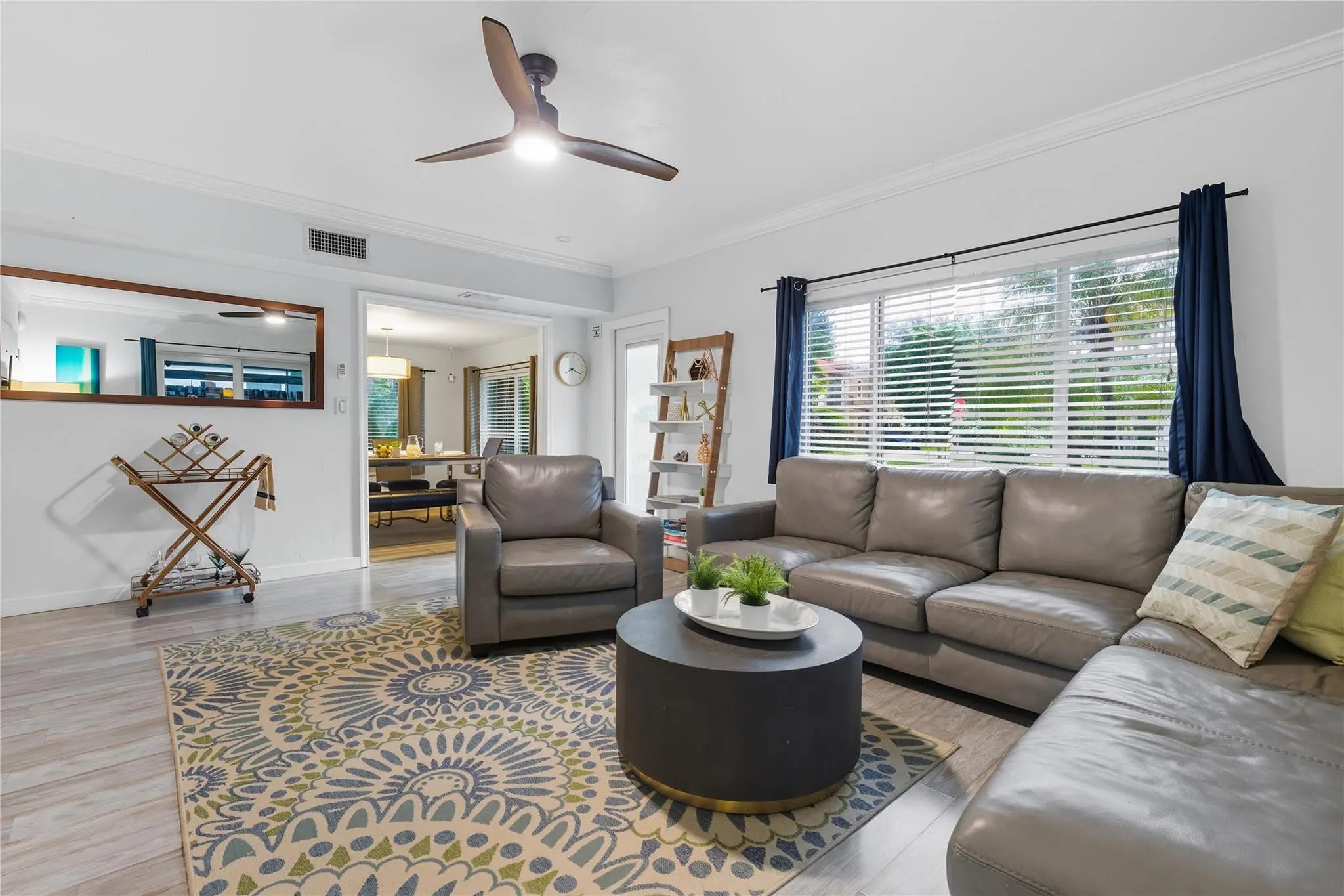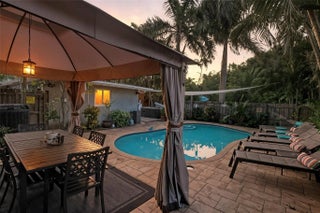 Set on a quiet corner lot in one of East Fort Lauderdale’s most desirable neighborhoods, this renovated 3-bedroom, 3-bath residence offers rare flexibility and upside. The home features a 2-bedroom, 2-bath main living area plus a fully independent 1-bedroom suite with its own kitchen and living space—ideal for guests or rental income. A one-car garage provides ample storage. Outdoor living shines with a private pool, spa, outdoor shower, and gazebo surrounded by tropical landscaping. Recent upgrades include impact windows and doors, a 2022 roof, updated laundry appliances, a new pool heater, and a travertine driveway. Just minutes from the beach and the Galleria Mall, with multi-billion-dollar redevelopment underway nearby. Existing bookings in place. Furniture Negotiable.