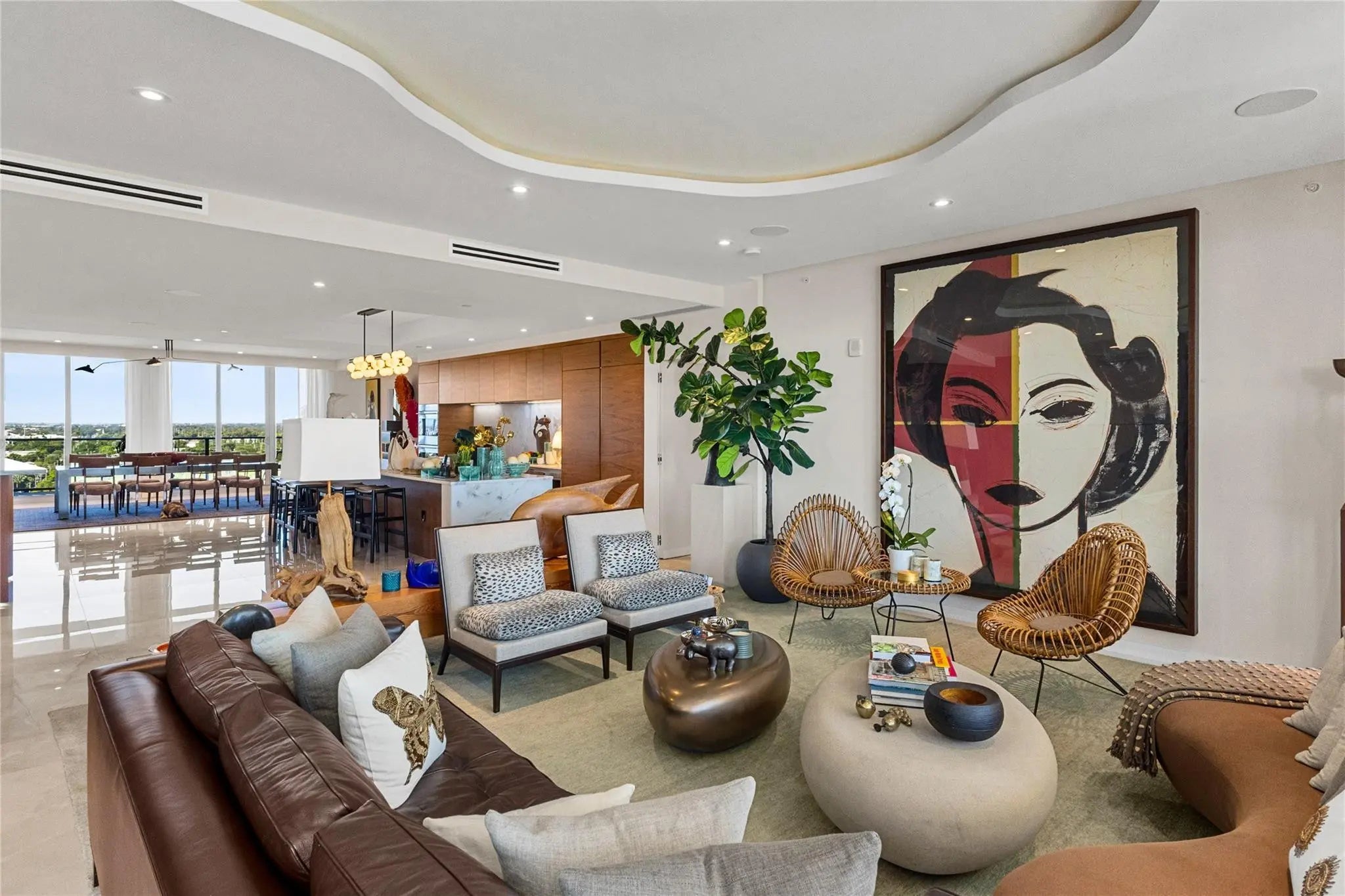 This is more than a penthouse. It’s a private sanctuary in the sky, designed for those who want every day to feel extraordinary. Floor to ceiling glass, panoramic views of the ocean, River, Intracoastal & skyline. Sophisticated design & masterful craftsmanship create an atmosphere of effortless elegance. The open concept layout flows seamlessly between two grand living rooms, a striking dining room & bespoke bar. Chef’s kitchen appointed w/Wolf & Sub-Zero appliances + butler's prep kitchen. East & west facing terraces w/ over 1,162 square feet & summer kitchen. Spacious Primary suite w/ sitting room, spa-inspired bathroom & custom designed closets. Private 2 car garage & 2 storage rooms, boat slip, private climate control wine room/storage. Dedicated golf & kayak lockers.Remodeled - 2023