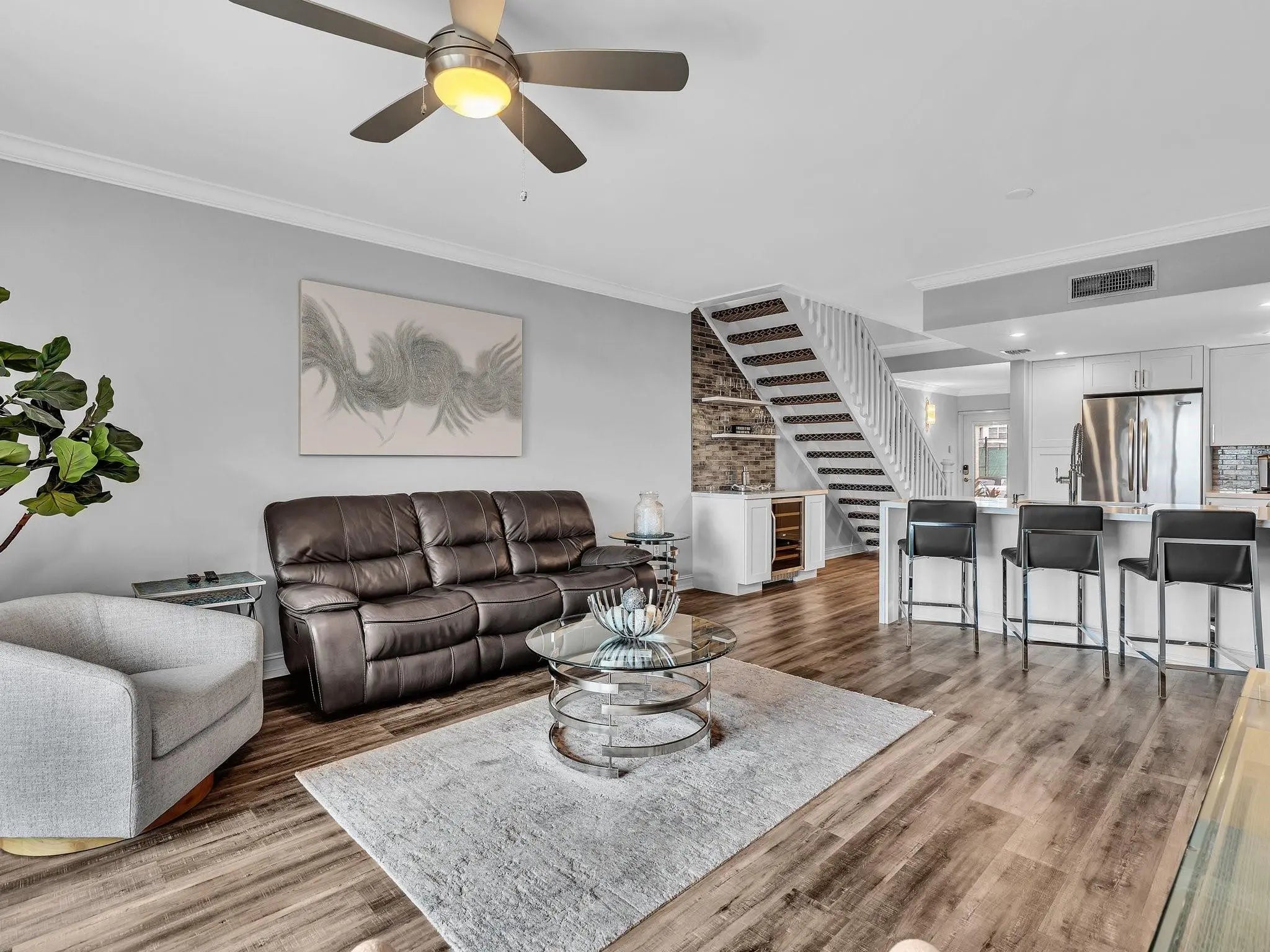FULLY REMODELED 3-BEDROOM TOWNHOUSE WITH DIRECT INTERCOASTAL VIEWS, offered turnkey with designer furnishings, open-plan gourmet kitchen & wine-bar with all appliances and utensils. Features include one bedroom and bathroom on the lower level, two oversized primary suites with ensuite bathrooms upstairs, tile flooring throughout and new washer/dryer. Enjoy beautiful sunsets from your private patio or balcony overlooking the intercoastal. Highland Beach Club is a gated, resort style Community with a large pool, tennis & pickleball, fitness, clubhouse & private beach access. Rent includes all utilities and amenities. Avail off-season from 8/1/26-10/31/26. 3 Month minimum per Association. Please call with any questions.