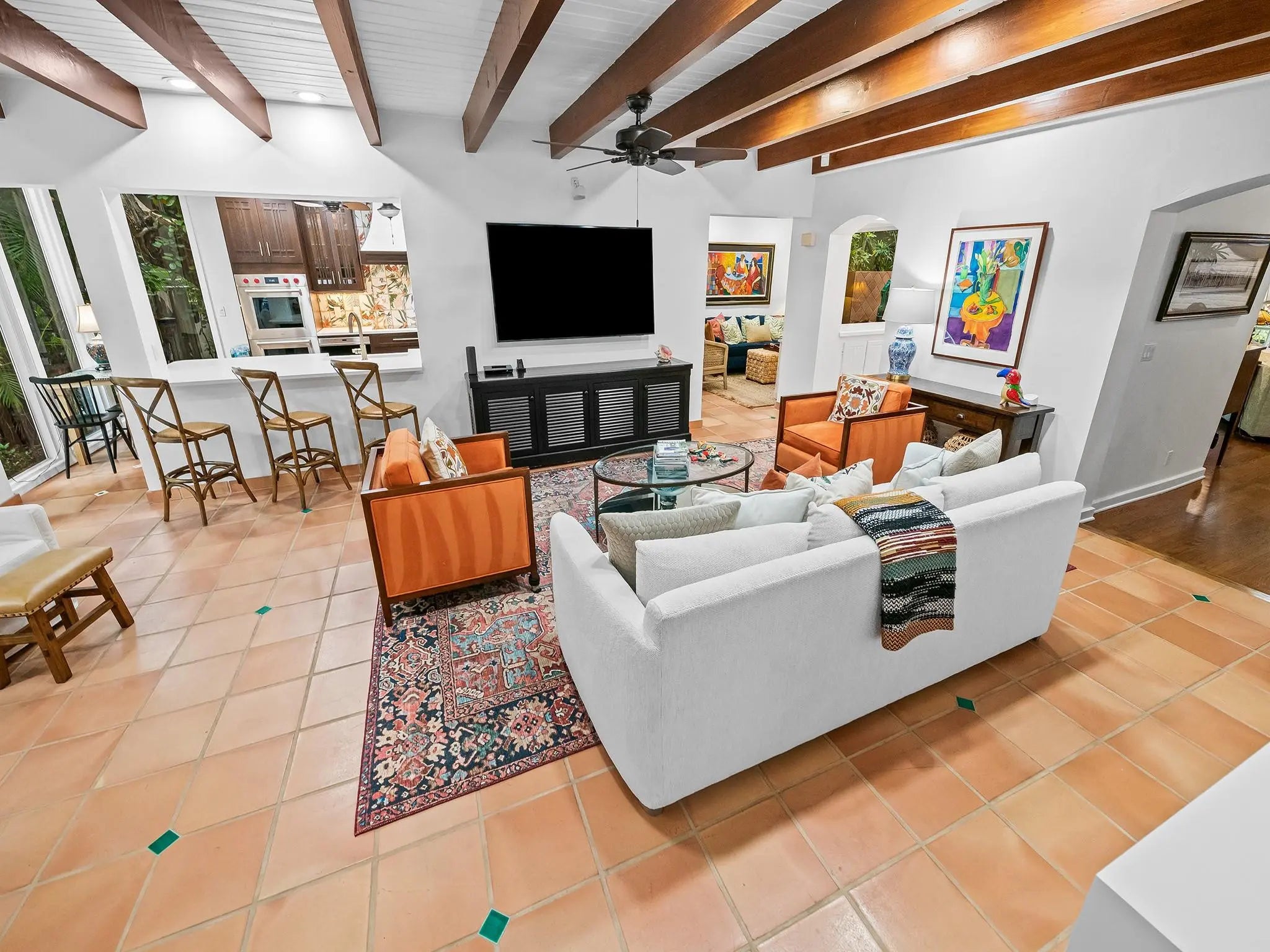 Live the Idlewyld lifestyle in this 3BR/2.5BA home with vaulted ceilings, a private resort-style pool oasis, and walkable access to beaches, dining, and shopping. The versatile first floor offers an office, living, family, and dining rooms with plantation shutters, fireplace, and an ideal entertaining layout perfect for family gatherings, celebrations, and hosting friends. Remodeled kitchen with custom wood cabinetry, updated countertops, and Sub-Zero & Wolf appliances. 2024 upgrades: fresh paint, new A/C, de-humidifier, LED lighting, 400-amp service, tankless water heater, and city gas line for future generator. Pool retreat with waterfall, gas grill, snack bar, updated tile/marcite, and separate storage building. Primary suite with spa-like bath and abundant natural light. Roof 2016.