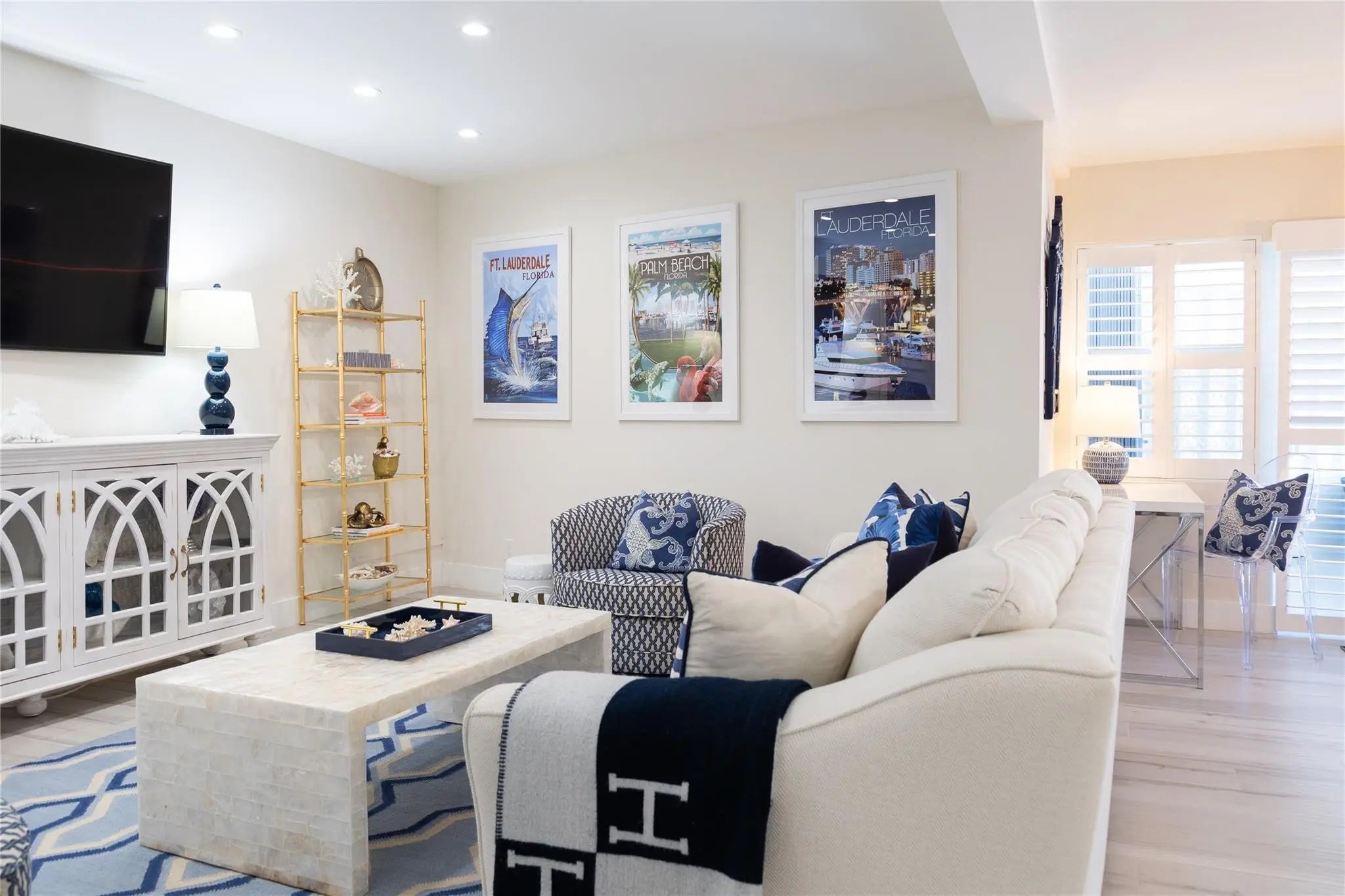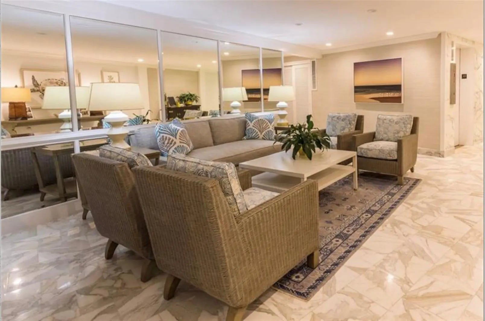 Oceanfront stunner! This oversized 1-bed, 1-bath was completely re-imagined and exquisitely decorated to be a turnkey, magazine-quality showpiece on the ocean! The balcony features direct beachfront and pool views, and the interior includes many built-in upgrades like a living room bar with 2 refrigerated drawers, his and her separate vanities in the bath, and a huge closet with custom shelving. The kitchen has a stainless appliance package, a cozy island bar, and even a wine refrigerator. Oversized porcelain flooring throughout complements the "Palm Beach Island" vibe. Residents can apply for membership and enjoy the amenities of the neighboring Lago Mar Resort with two pools, tennis, pickleball, bars and restaurants, and beach beverage service. Co-Op: No pets, no leasing and cash only.
