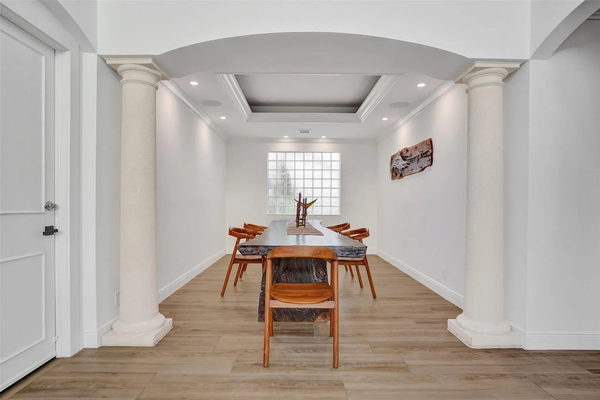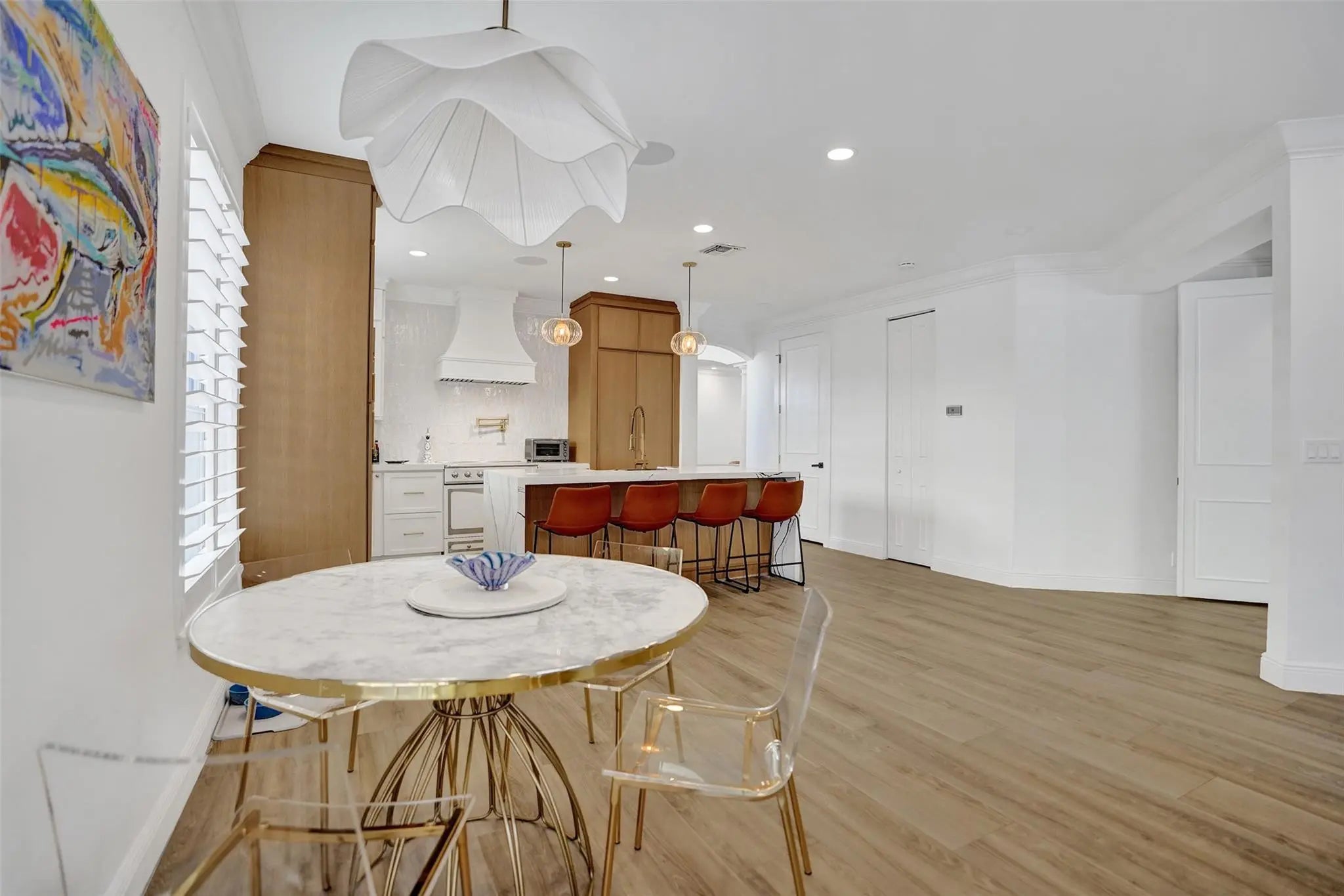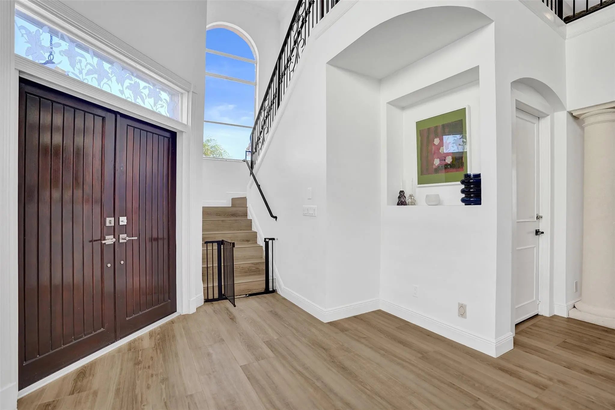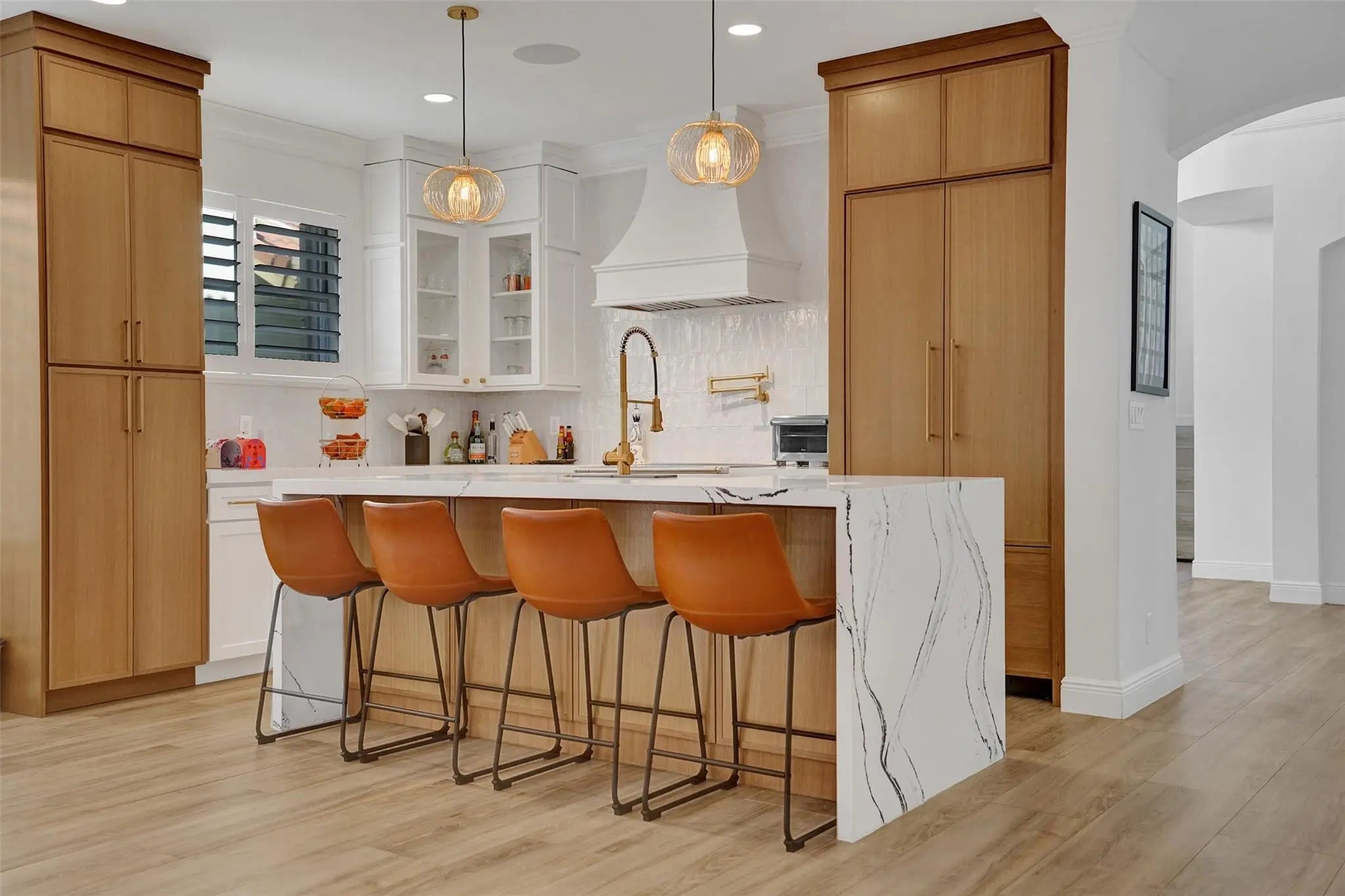 Magnificent 2 story estate in Pelican Harbor w/ a 70' dock & no fixed bridges, close to Lake Boca & ocean. This elegant home was renovated less than 2 years ago & features a grand entrance w/ dramatic volume ceilings, crown molding, arched windows, custom lighting, & wood floors throughout. Enjoy a whole-house audio system & a luxurious primary suite w/ dual closets & vanities, soaking tub, & a glass steam shower. Gourmet eat-in kitchen offers a center island, custom wood cabinetry, quartz countertops, & top-of-the-line appliances. Additional highlights include designer finishes & wallpaper, immaculate landscaping, a private patio ideal for entertaining, impact doors, a paver driveway, & a 2 car garage. Resort-style amenities include 2 pools, tennis, pickleball, a fitness center, and more.
