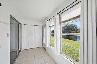 UPDATED convenient first-floor corner unit with a beautiful water view from the patio. This renovated unit has sleek tile flooring flowing throughout the space. The kitchen has white shaker cabinets and quartz countertops. Solid wood doors add a touch of sophistication, walk-in shower with a glass door completes the picture of comfort. Enjoy peace of mind knowing you have a responsive and attentive landlord.