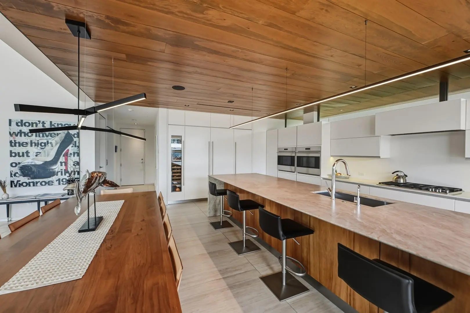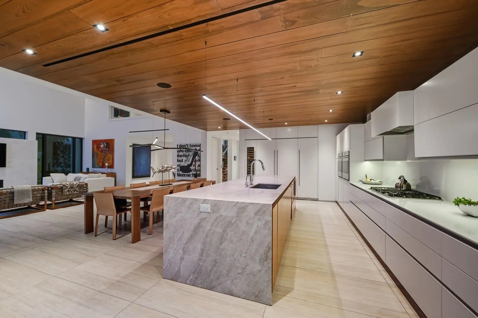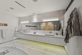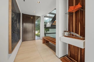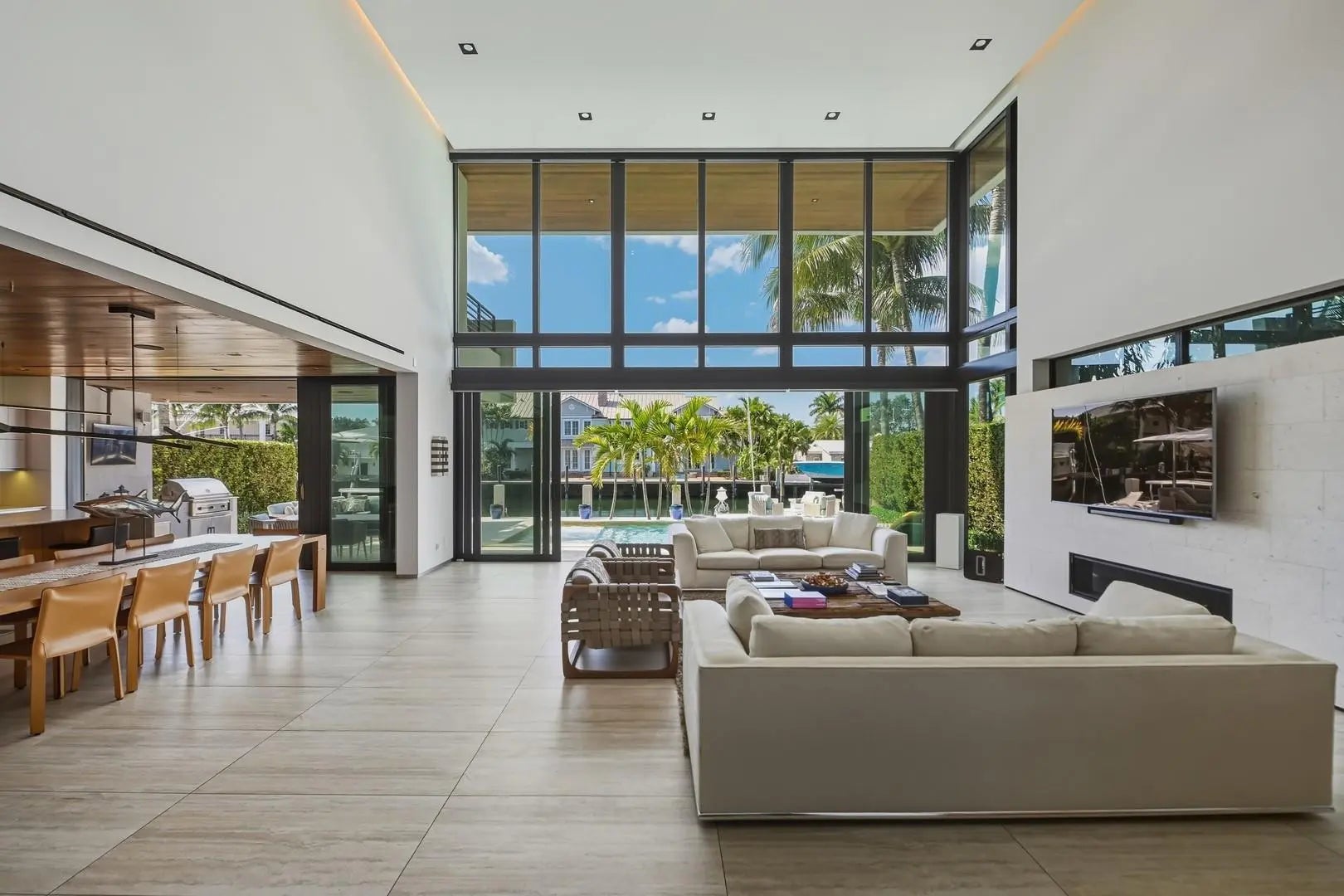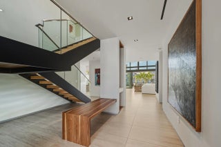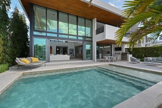 Riviera Isle waterfront residence offers immediate, unrestricted ocean access. Expertly crafted by Zahn Development, masterfully designed by renowned architect Hugo Mijares of One D+B, the home embodies a sophisticated contemporary tropical aesthetic,it blends natural materials—warm-toned stone & richly textured specialty wood with modern lines to create a timeless & inviting elegance. At its heart lies a dramatic two-story great room,framed by an expansive wall of glass,effortlessly merging indoor & outdoor living,inviting breezes,natural light & breathtaking waterfront views. Home features:concrete & steel construction,elevator, natural gas,full-house generator, impact glass, smart home automation, temperature-controlled wine cellar, extended concrete patio/dock,65ft of waterfront