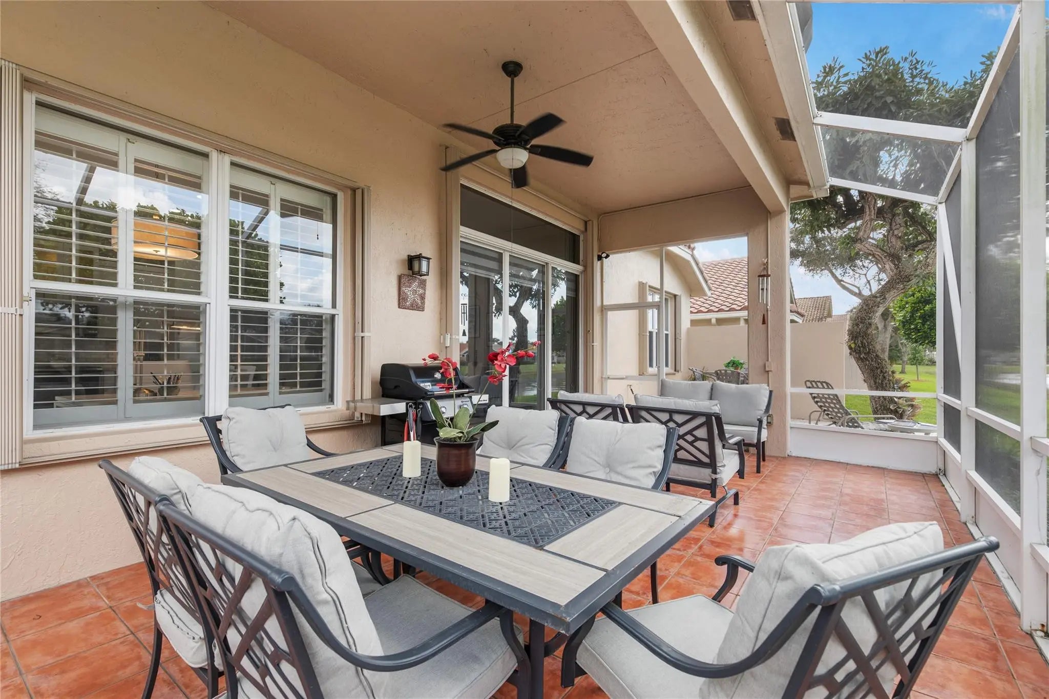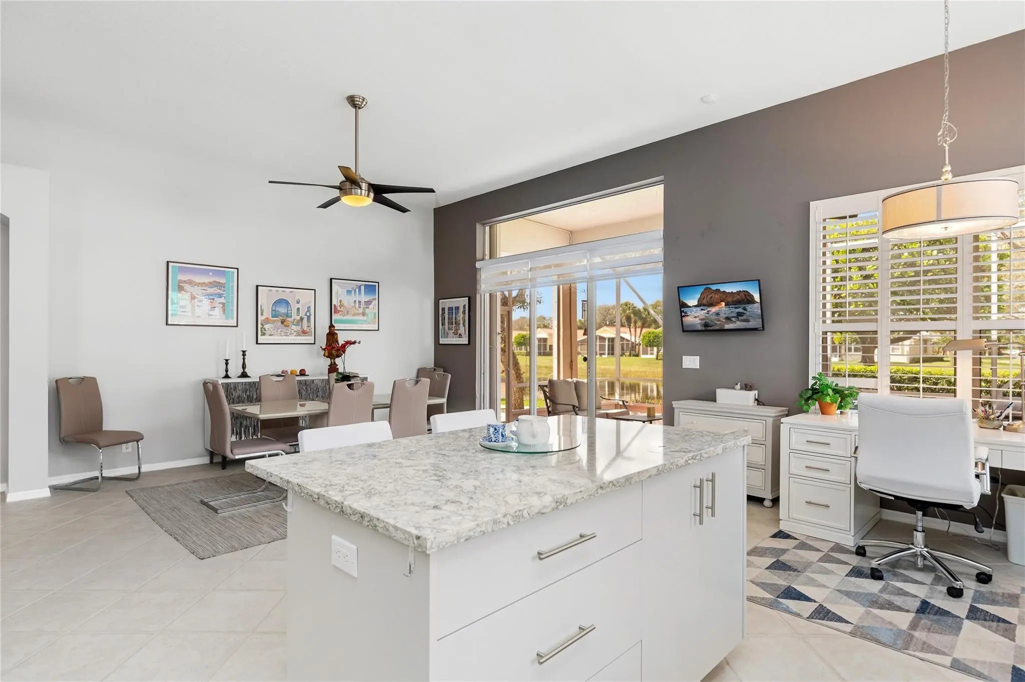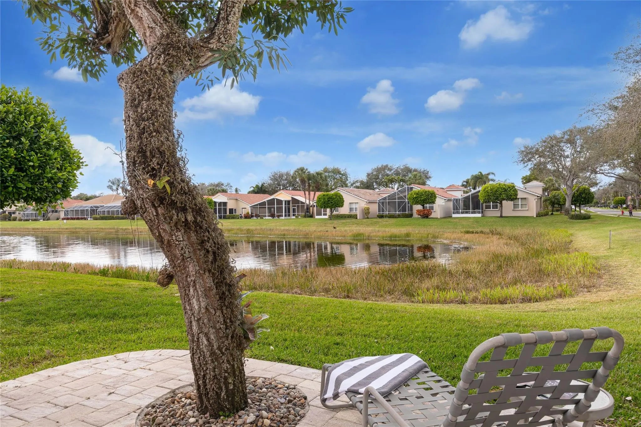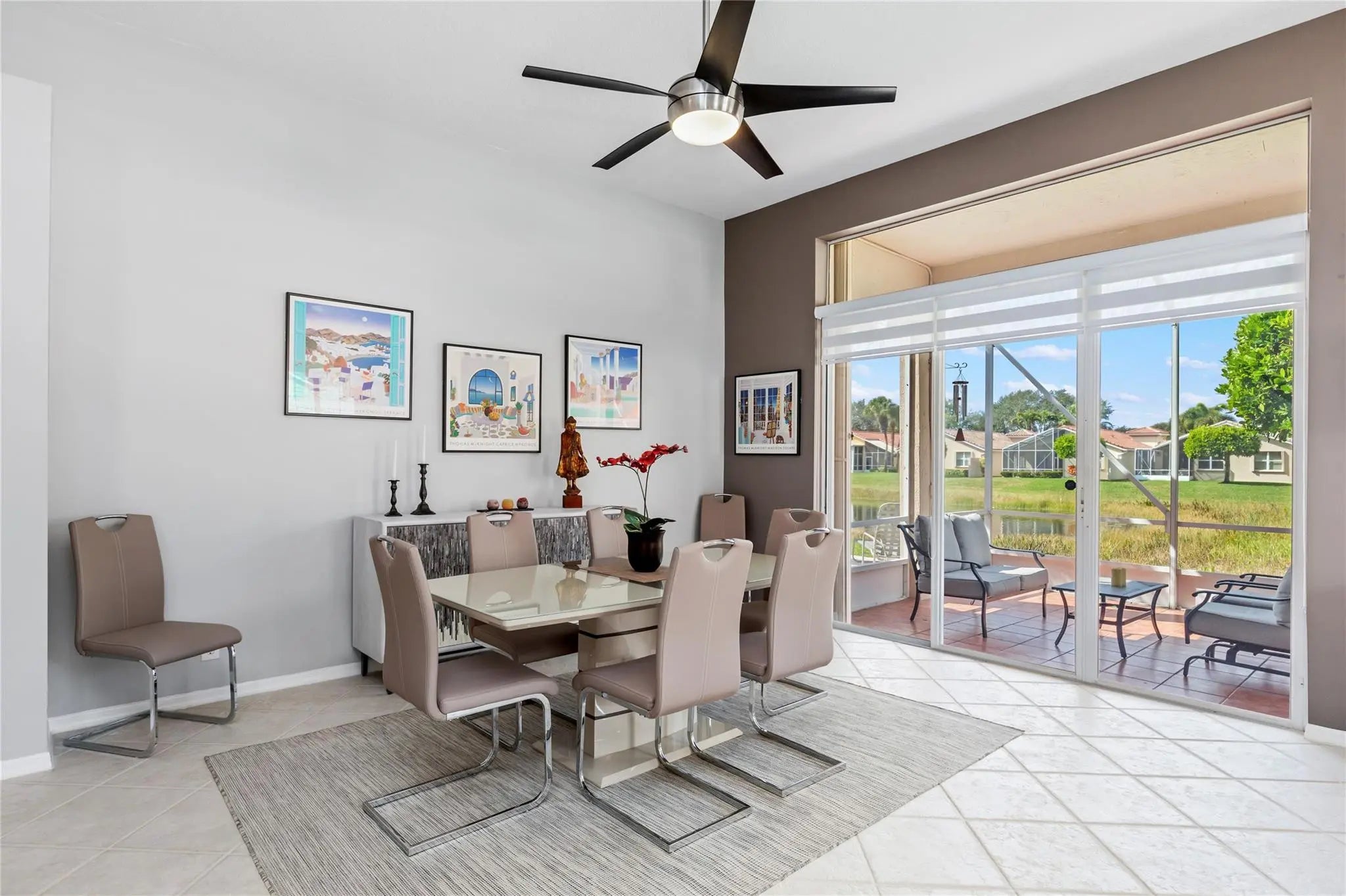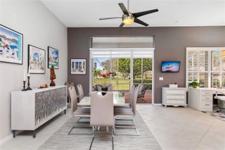 Better Move fast, this one is phenomenal! Pristine, Light & Bright Two Bedroom + Den in highly sought-after Villa Borghese. Featuring a new roof & Beautiful upgrades, this home offers a phenomenal versatile open floor plan ideal for entertaining. Gorgeous Open Kitchen with fabulous custom cabinetry, countertops & Backsplash, center island with seating, stainless appliances & tons of storage. Two Large bedrooms provide comfort and privacy, the den is perfect for guests, a home office, or multifunctional additional living space. Custom Closets & window treatments. Enjoy serene full lake views from the enormous screened patio. Just steps to the clubhouse & resort-style amenities including tennis, pickleball, pool, fitness center, ballroom, billiards, card rooms & more. Welcome home !