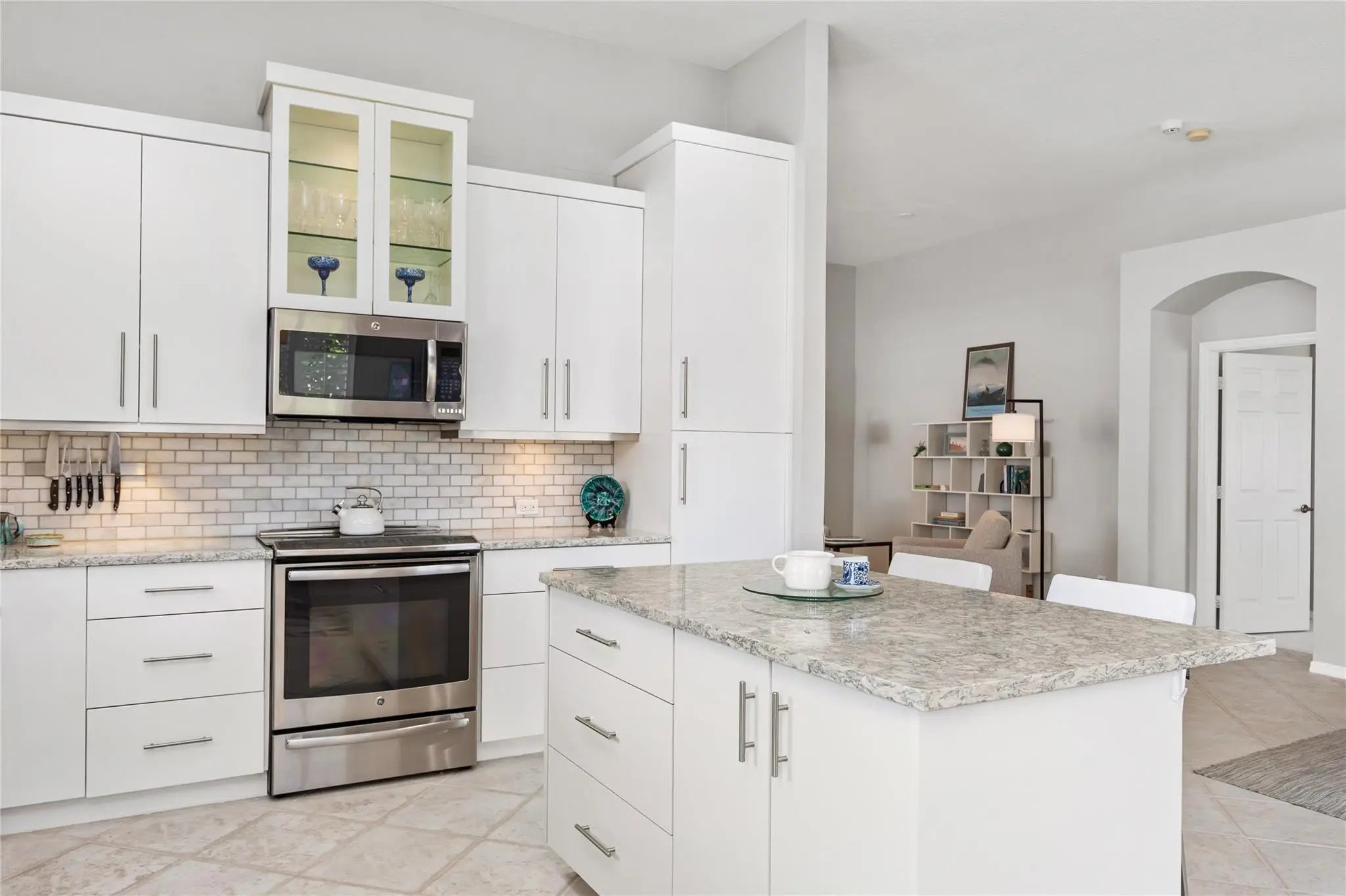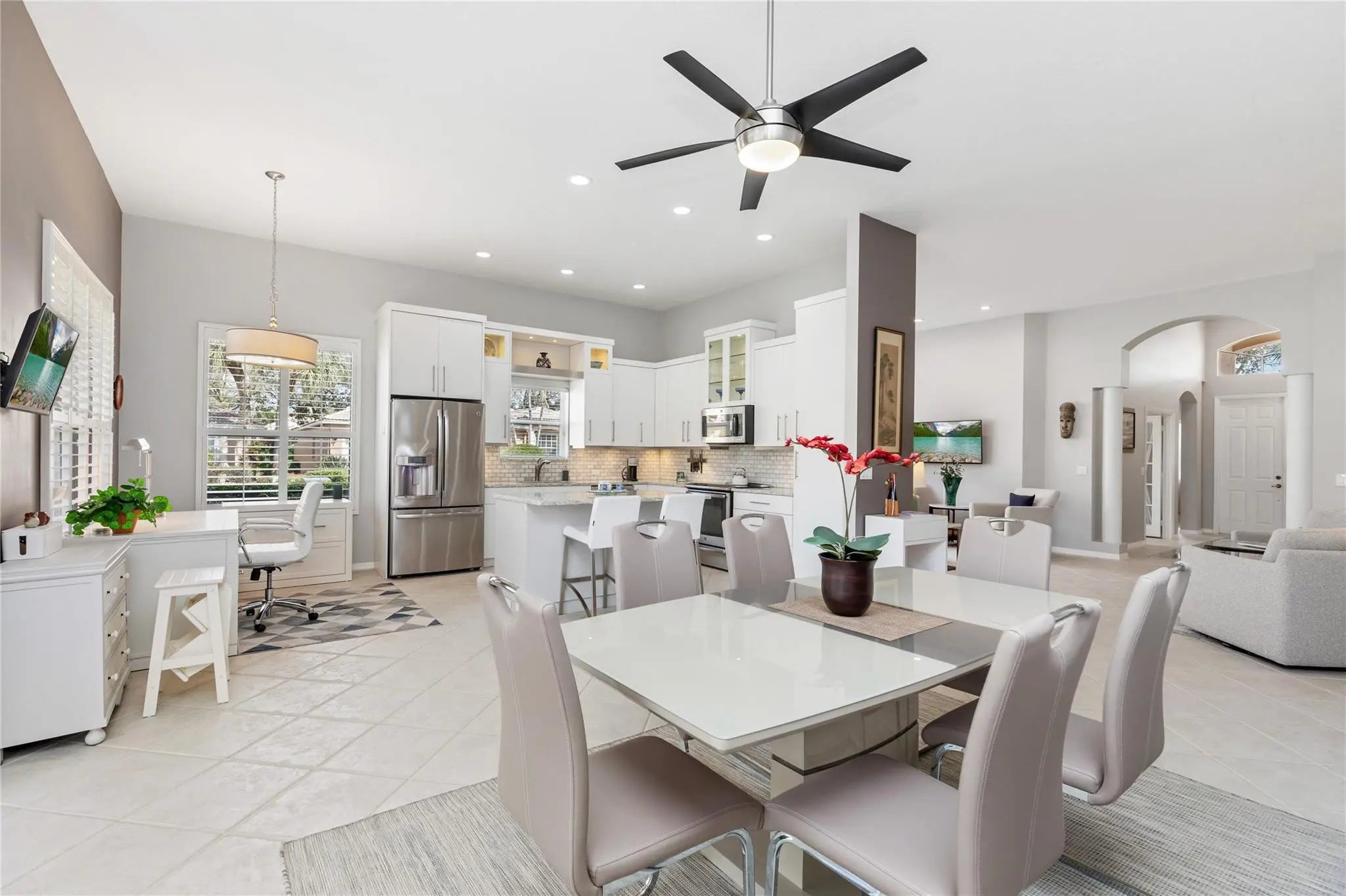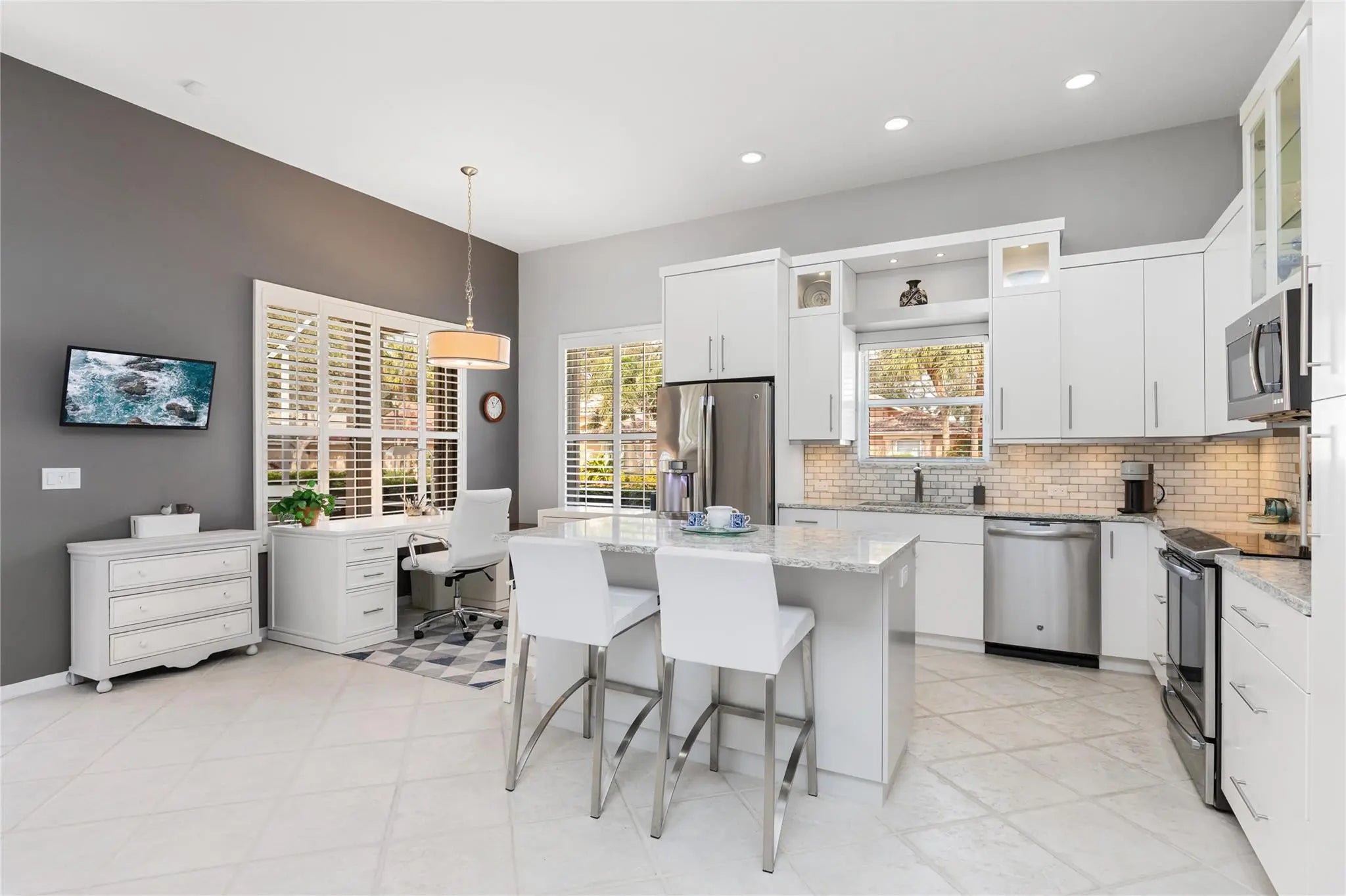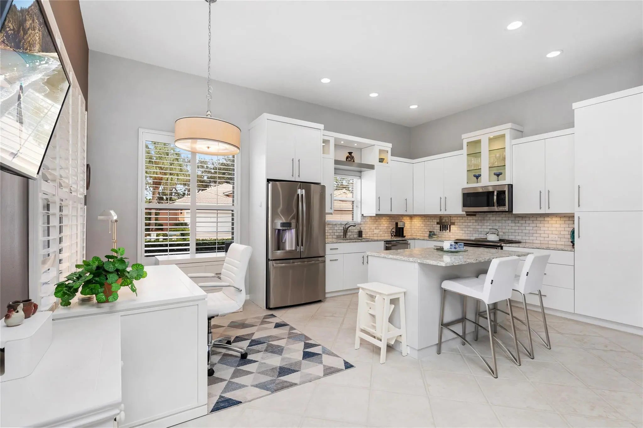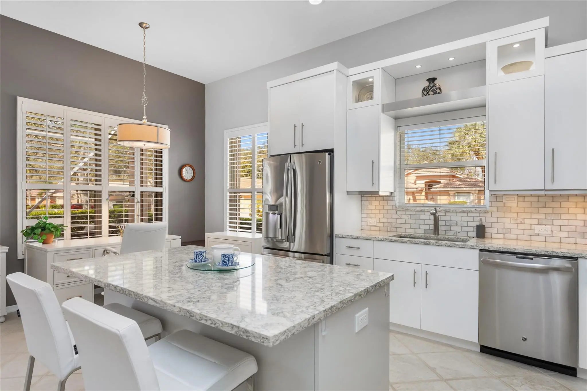 Better Move fast, this one is phenomenal! Pristine, Light & Bright Two Bedroom + Den in highly sought-after Villa Borghese. Featuring a new roof & Beautiful upgrades, this home offers a phenomenal versatile open floor plan ideal for entertaining. Gorgeous Open Kitchen with fabulous custom cabinetry, countertops & Backsplash, center island with seating, stainless appliances & tons of storage. Two Large bedrooms provide comfort and privacy, the den is perfect for guests, a home office, or multifunctional additional living space. Custom Closets & window treatments. Enjoy serene full lake views from the enormous screened patio. Just steps to the clubhouse & resort-style amenities including tennis, pickleball, pool, fitness center, ballroom, billiards, card rooms & more. Welcome home !