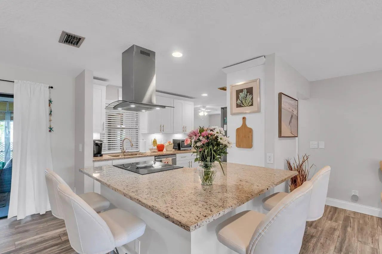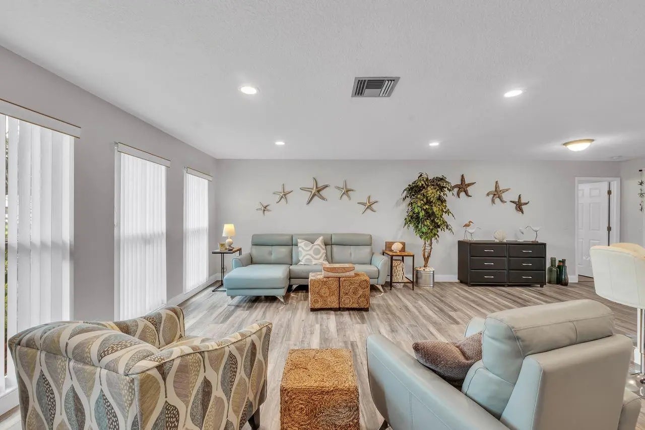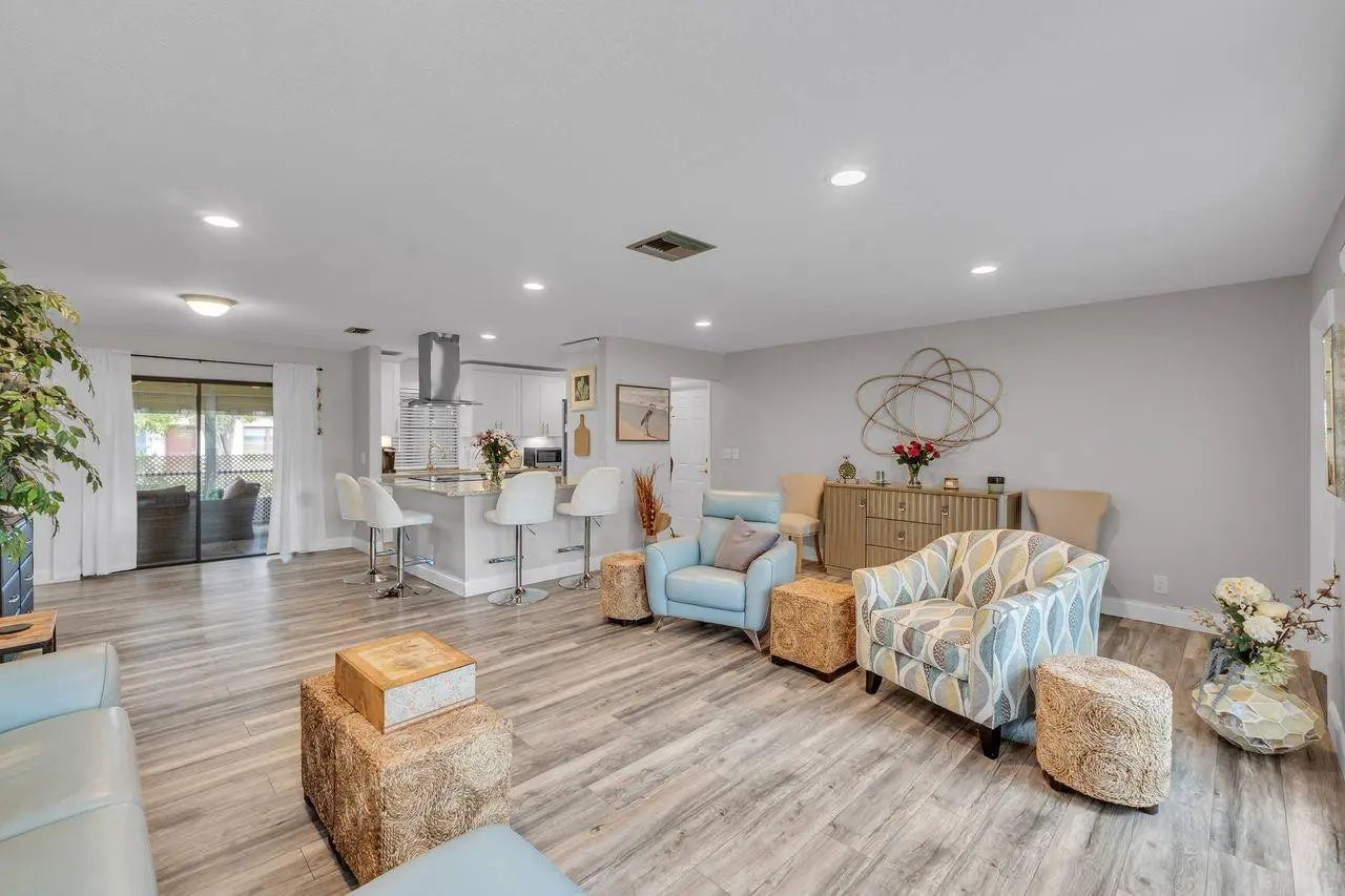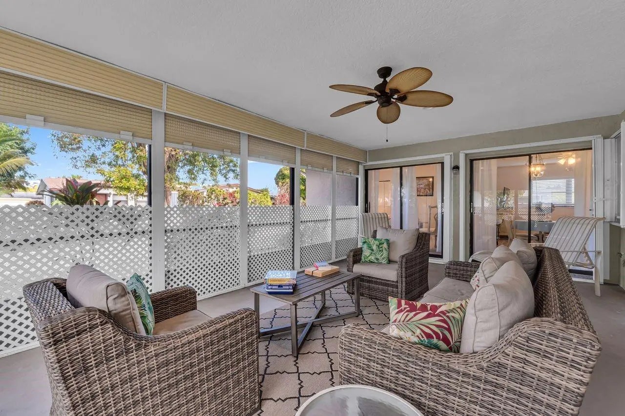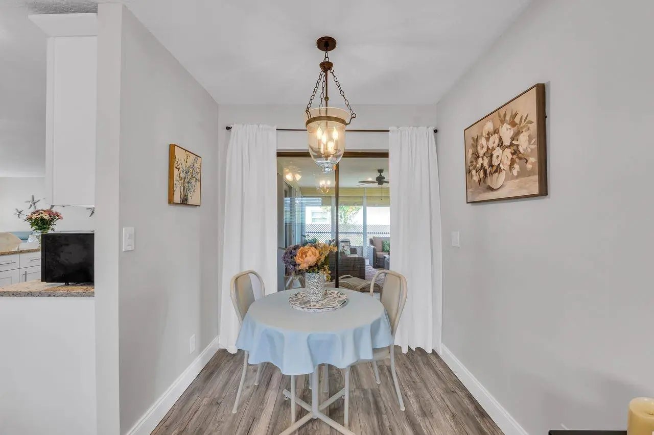 Tastefully updated 2Bed/2Bath Single Family home located on a quiet interior lot in the active, Pet Friendly 55+ community of Coco Wood Lakes. Versatile flex space currently used as a den and breakfast nook, along with a desirable split floor plan. Enjoy the large, private screened patio, ideal for relaxing or entertaining. The single-car garage features hurricane-rated door, updated electrical panel & W/D. 2009 roof (in great shape), 2019 A/C, and 2019 HWH. Full hurricane protection with impact windows and/or accordion shutters. Furniture is negotiable, making this home truly move-in ready. Low HOA of $198/month includes all amenities, cable, and high-speed fiber internet. Ideally located near EVERYTHING.Florida living at its best—convenient, comfortable, and well-maintained.