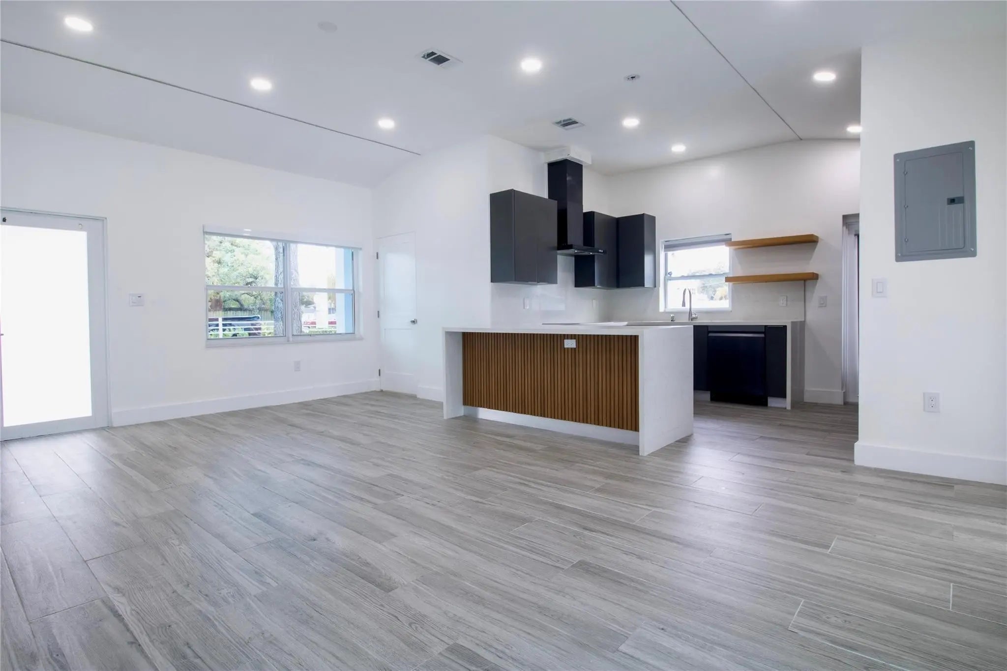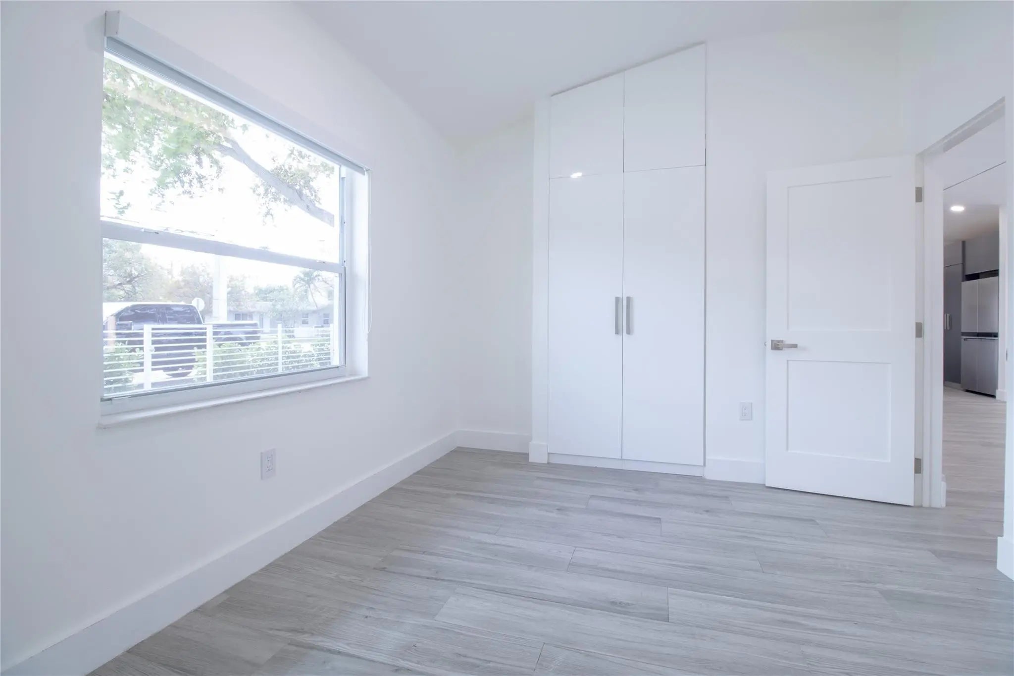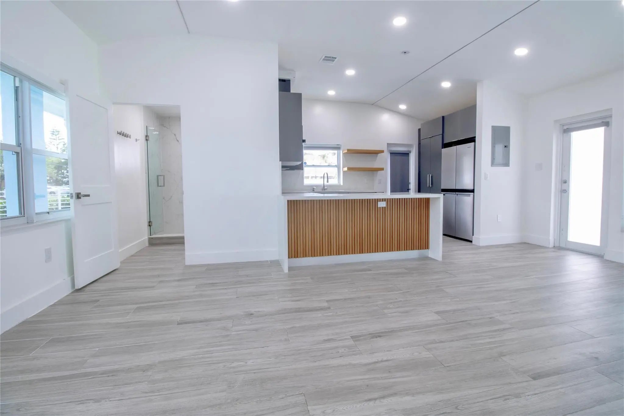 Remodeled Croissant Park Corner lot home featuring 2 bedrooms, 2 bathrooms & southern exposure with modern finishes plus a separate large shed. Custom modern kitchen with quartz countertops & new appliances. Wood plank style tile floors throughout. Master bedroom offers built in closets with a remodeled bathroom. High ceilings, impact windows, & tons of natural light. Completely fenced spacious front and backyard, situated on a 7,024 sq/ft lot. Separate shed structure offers ample space for storage. Plenty of parking inside & outside the gate. Stackable washer / dryer. Electric instant hot water heater. Central AC. Great location close to parks, school, airport and much more.