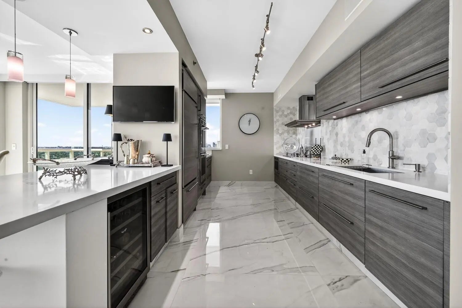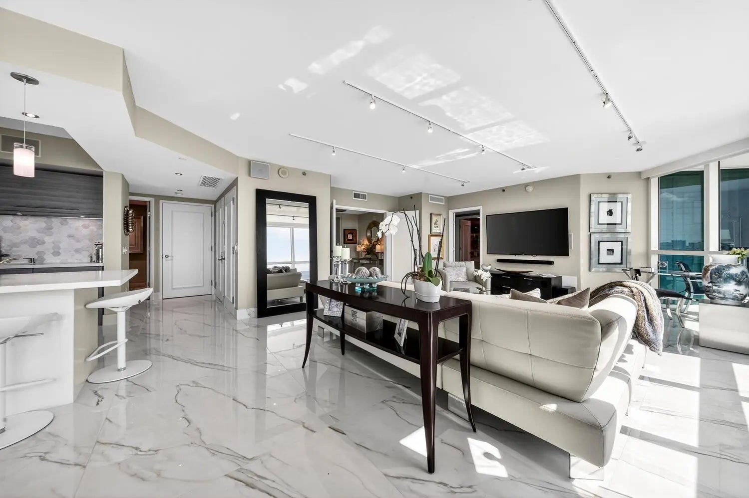 Rarely available, extensively updated SW corner residence at Las Olas Beach Club offering 1,905 sq. ft. of light-filled living space with sweeping ocean and Intracoastal views from the moment you step off your private elevator foyer. Floor-to-ceiling glass frames stunning water vistas throughout. Designer finishes include 48x48 Golden White Italian porcelain tile, and a custom open kitchen with built-in bar ideal for entertaining. Electric shades in living room, plantation shutters in bedrooms, and generous built-in/walk in closets. Includes 2 parking spaces and private storage. Full-service luxury building with 24-hour security, valet, concierge, oceanfront infinity pool & spa, fitness center, sauna, steam, and amenity rooms. Schedule your private showing today.