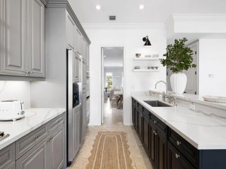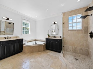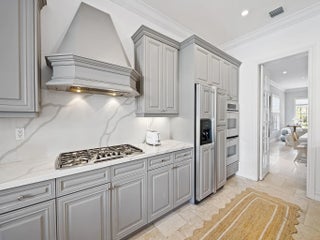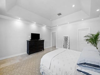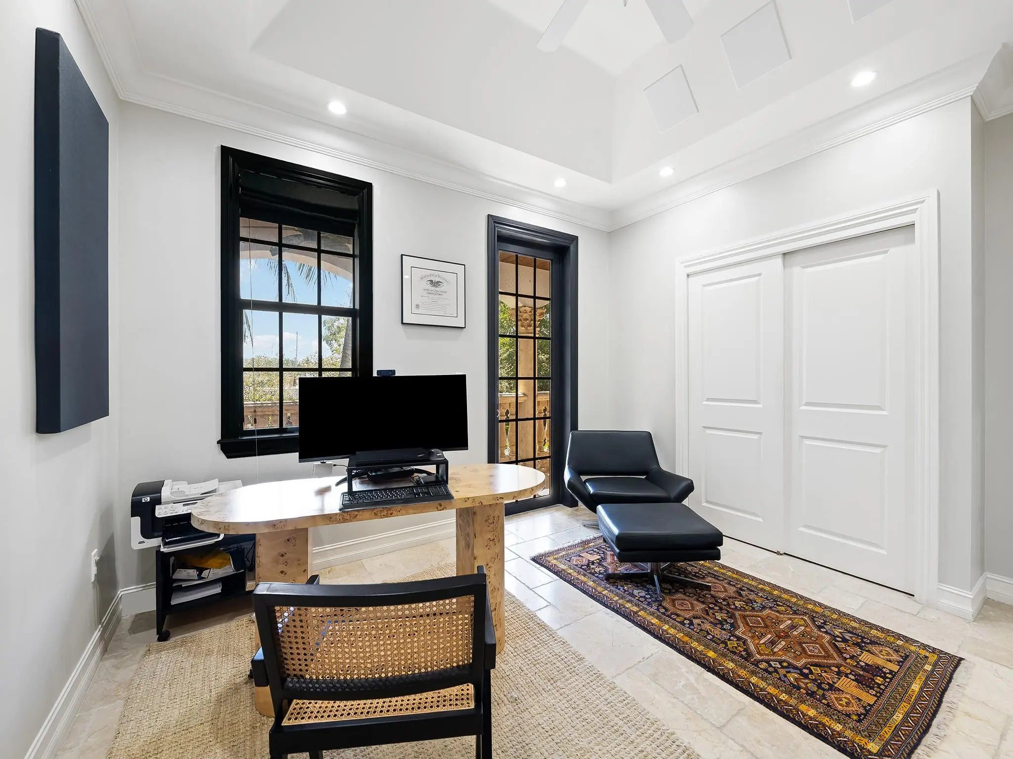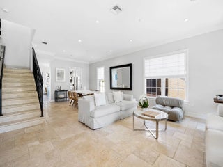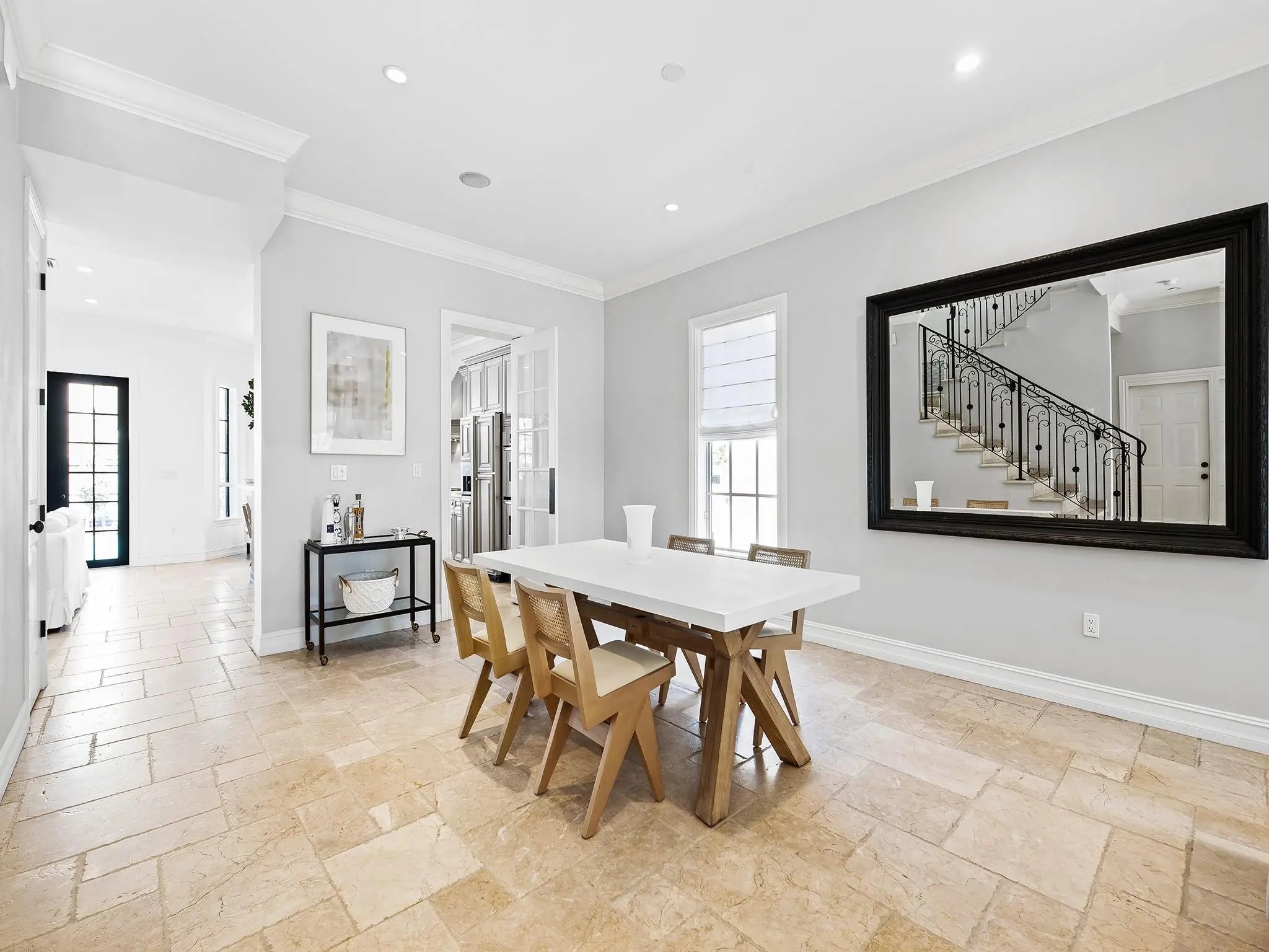 Set on a quiet street deep within prestigious Rio Vista, this elegant 5 bedroom 3.5 bath residence with 3274 SF of living area blends timeless materials with refined comfort. The chef’s kitchen showcases a 5-burner gas cooktop, dual convection oven, microwave, quartzite countertops, deep XL sink, with an inviting sitting room featuring a gas fireplace and integrated surround sound, and two downstairs guest bedrooms beyond. Upstairs, a full primary suite is complemented by 2 additional bedrooms. Jerusalem stone flooring throughout and classic Chicago brick create enduring sophistication. Outdoors, enjoy a covered porch overlooking a beautifully resurfaced pool, turf, and lush play area. Additional highlights include tankless gas water heater, impact windows and doors, and a two-car garage.