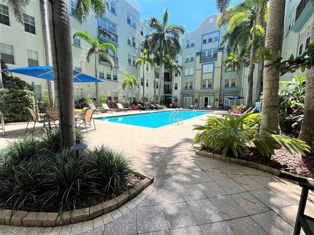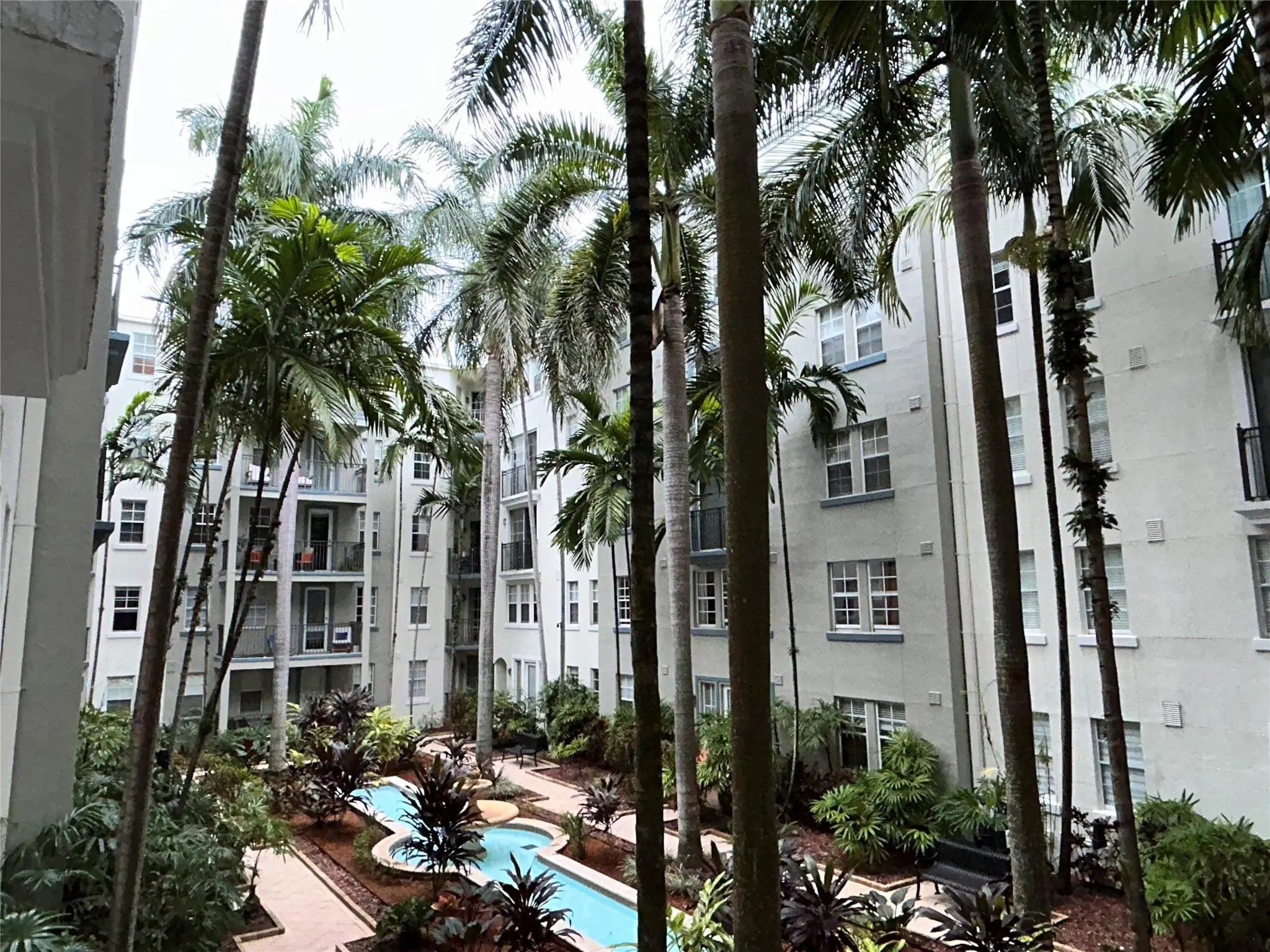GREAT Price to Live in the center of it all. This lovely spacious recently Painted 2 bed 2 bath unit has UPGRADED Porcelain Tile in living and Kitchen Area. The Split Bedroom Plan boasts 2-large bedrooms both with New wood-look vinyl floors! New A/C. Washer and Dryer in Unit, with extra storage space. Features balcony with fountain and courtyard view in upscale Flagler Village building. Private and quite. Rent includes Internet, Water and Sewer & Awesome amenities in Wonderful, Secure, Pet-Friendly Bldg (one small dog ok/no cats). Pool, Spa, Party Room, Fully-Equipped Fitness Center, Billiards, Business Center, Rooftop Terrace. Walk to restaurants, bars, retail. Close to Las Olas Blvd and the Beach. A great place to live, at a Great Price. And a wonderful Landlord too :)