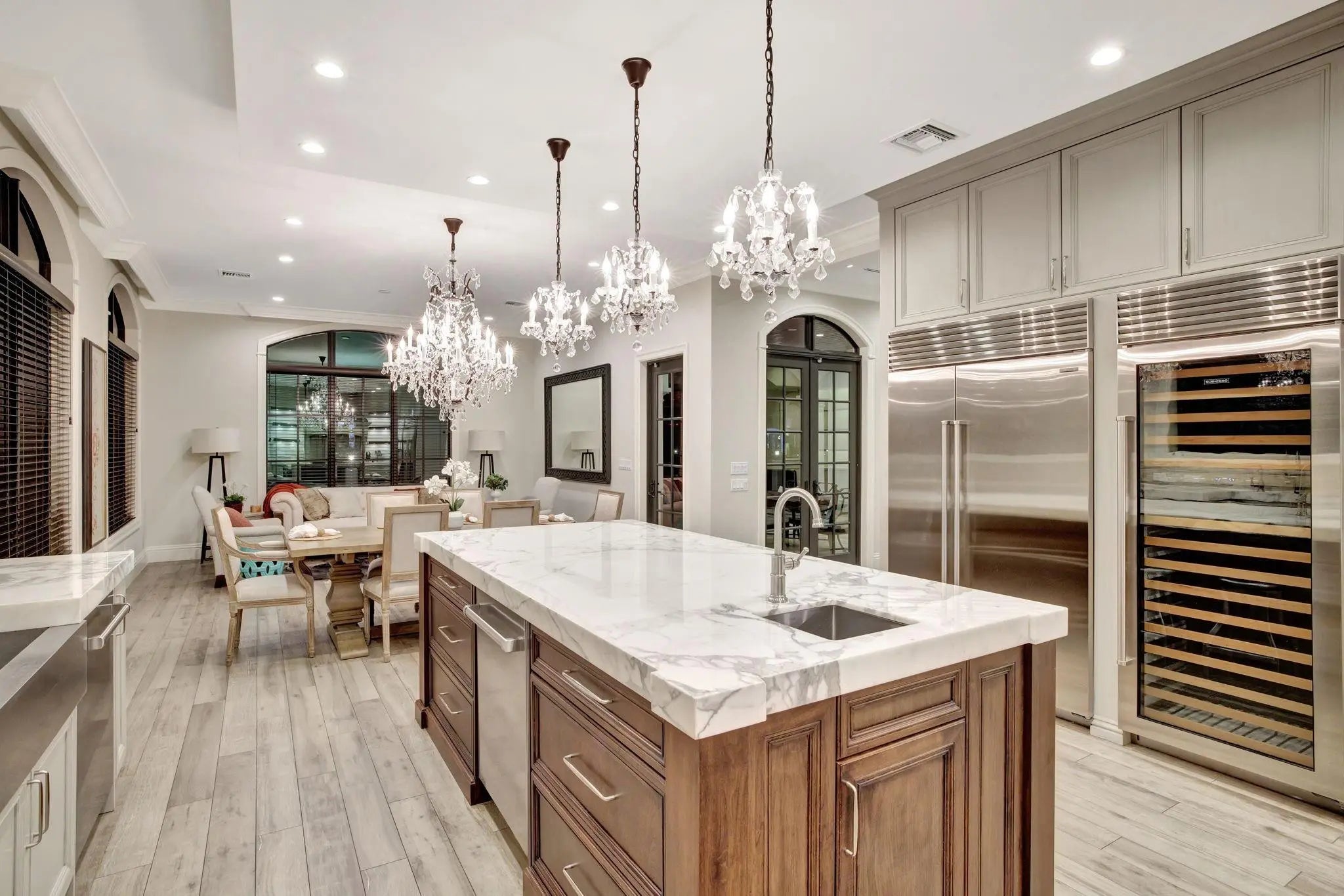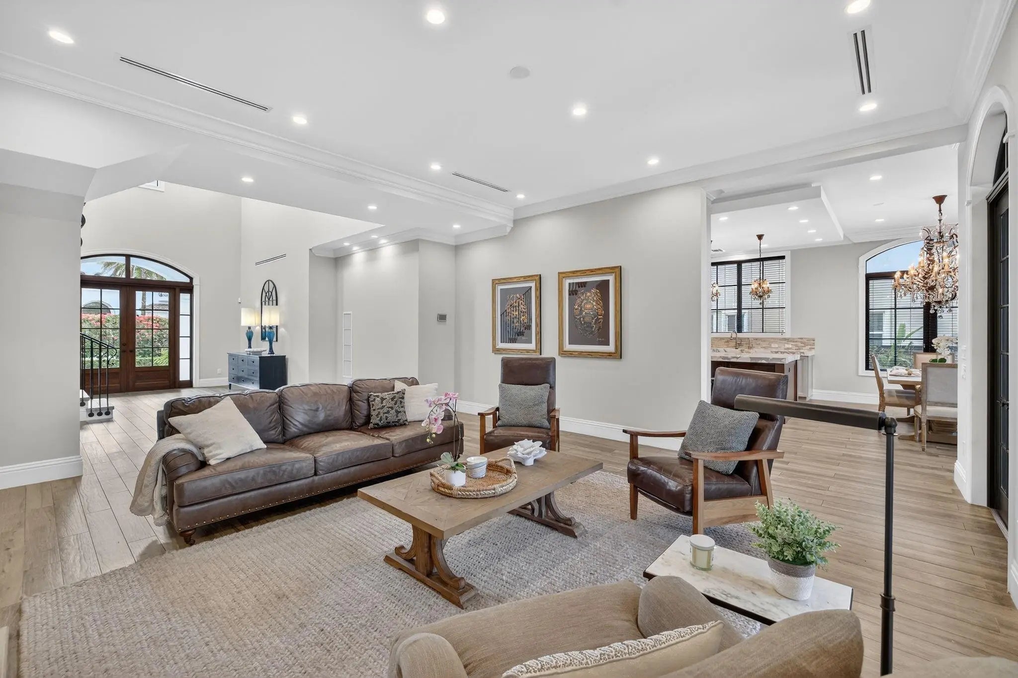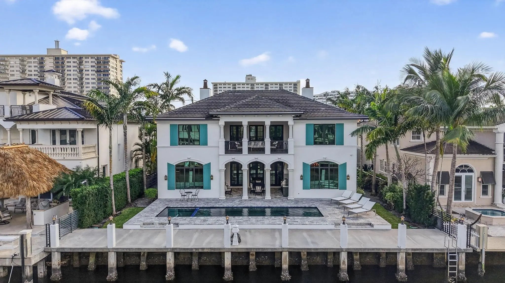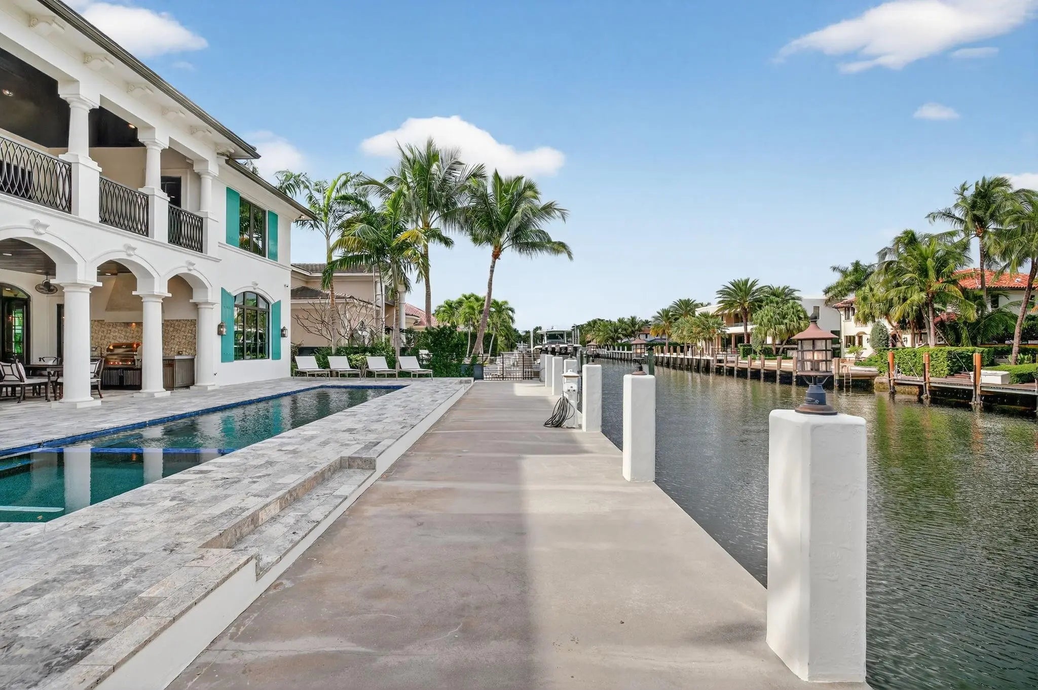 Located in highly desirable guardhouse secured Seven Isles! Elegant, newer British West Indies-inspired 75 ft deepwater residence has much to offer the avid boater & entertainer. Abundant natural light, high ceilings, balanced formal & living areas includes formal living room, lounge, amazing eat-in Chef's Kitchen, marble island & counters, Wolf & Sub-Zero appliances. Ample storage throughout. Superior floorplan includes rare 1st level primary suite, large dual closets & spa bath. Large home office or potential 5th bedroom. 2nd level loft/media area & wet bar opening to large, covered balcony capturing waterfront & pool views. Expansive secondary bedroom suites. Salt-water heated pool & BBQ area. Close to beaches, shopping & dining on Las Olas. Available for quick closing.