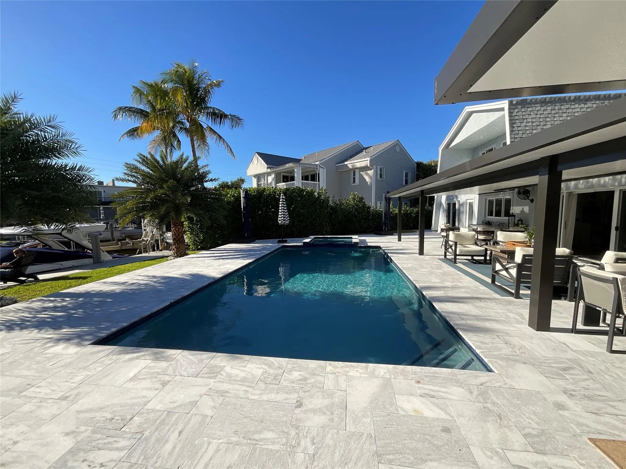 Beautifully remodeled waterfront home. Large patio with a brand new salt water pool overlooking the private 50 foot dock. Direct ocean access with no fix bridges. Tropic Isles is a prime location just minutes from the beach. The house is fully furnished and equipped with a summer kitchen with state of art appliances including a large barbecue with 2 side gas burners, outdoor double refrigerator and an ice machine near the pool. The house is available Yearly or seasonally. WHOLE HOUSE EQUIPED WITH 3 STAGE WATER FILTER. LANDLORD TAKES CARE OF LAWN,POOL AND PEST CONTROL MAINTENANCE.