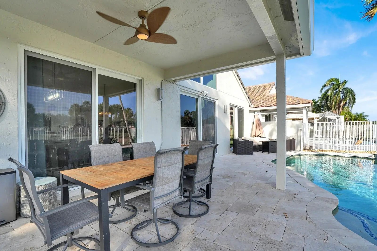 Impact Windows & Doors | 2022 Tile Roof | Amazing opportunity to buy in the gated community of Polo Trace! This bright & open concept home offers vaulted ceilings, a split floor plan, and a private pool / hot tub with no rear neighbors! Not only does the home showcase true pride of ownership, it also features all new appliances, newly installed LED lighting, fans, light fixtures, built-in closets, new carpeting in the bedrooms, and fresh interior paint! Amenities: 26,000 sq/ft clubhouse, a full restaurant/bar, 3 pools, spa, 24-hour gym, yoga studio, tennis, pickleball, basketball, card rooms, playground, 2 parks/fitness trails, and 24-hour guardhouse. HOA covers ALARM, CABLE & INTERNET, ALL LAWN CARE, PRESSURE WASHING, EXTERIOR PAINTING, and a $800 annual credit to the restaurant.