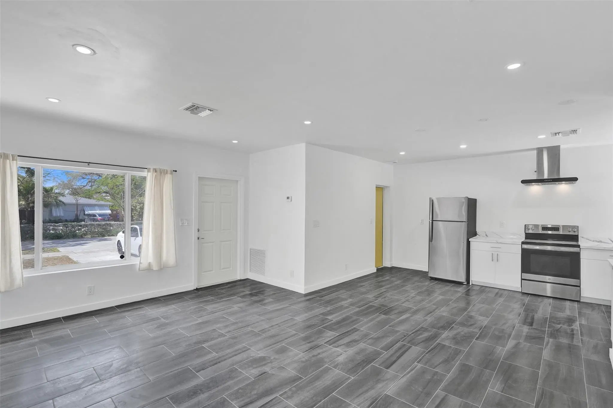 Bright, newly renovated 2-bed, 1-bath home plus versatile den in a central location — just off Federal Highway and minutes from the ocean. This updated interior features modern finishes, an open living/dining flow, contemporary kitchen with new appliances and countertops, stylish bath, and fresh flooring and paint throughout. Ideal for first-time buyers, downsizers, or investors seeking turnkey convenience in a walkable, coastal corridor. Easy access to shops, dining, transit and beaches. Schedule a showing today — contact for details and private tours.