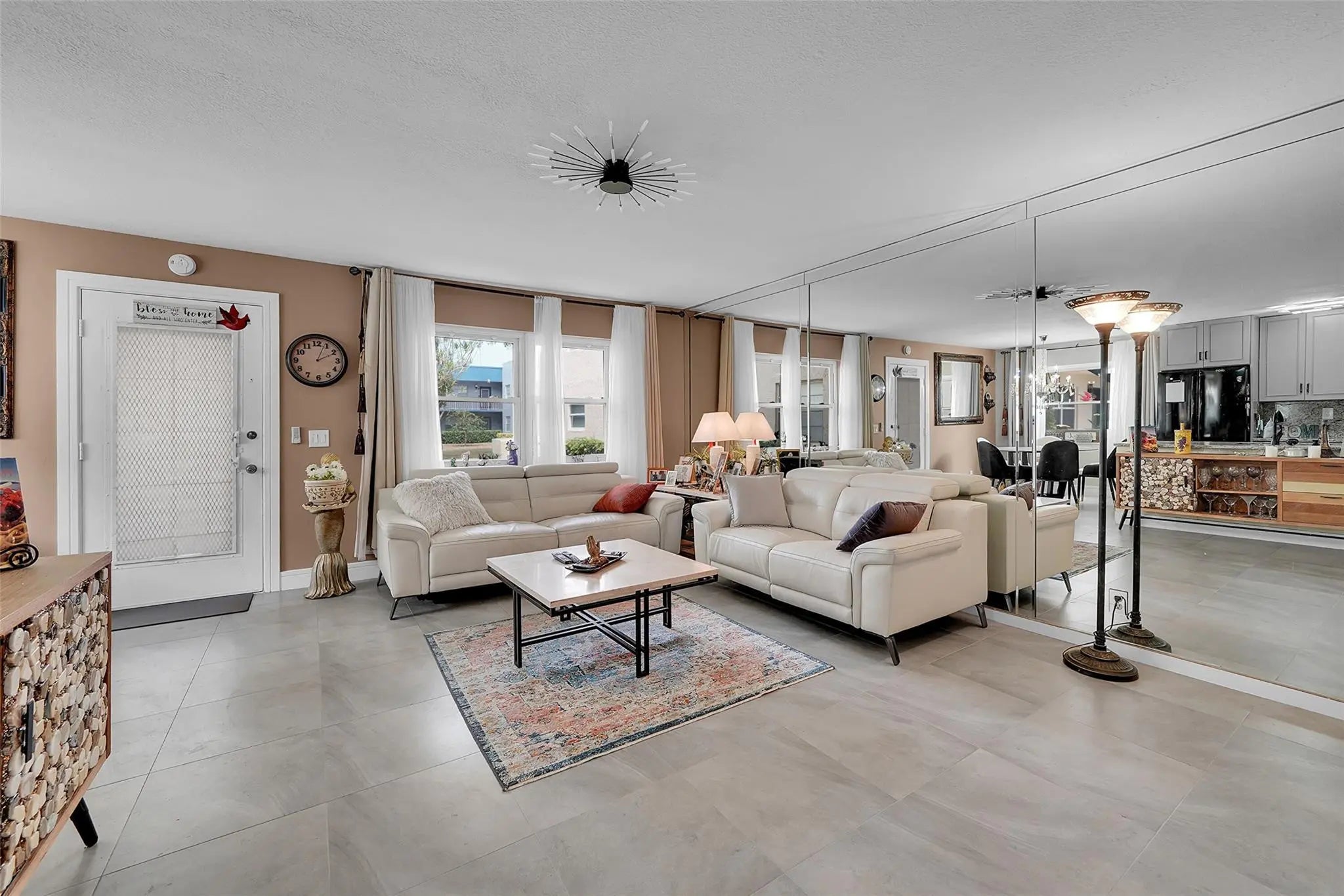 Welcome to one of the finest residences in Kings Point. This beautifully updated first-floor 2-bedroom, 2-bath unit is located in the highly sought-after Flanders D section of this vibrant 55+ community. The home features a fully remodeled kitchen with granite countertops, custom cabinetry, and new appliances, along with impact windows throughout, a new washer, and a private patio perfect for relaxing. Offered fully turnkey with tasteful furnishings and professional décor, it is truly move-in ready. The HOA includes water, cable, security, and exterior insurance. Residents enjoy golf, tennis, pickleball, indoor and outdoor pools, billiards, a café, courtesy bus service, assigned parking, and ample guest spaces.