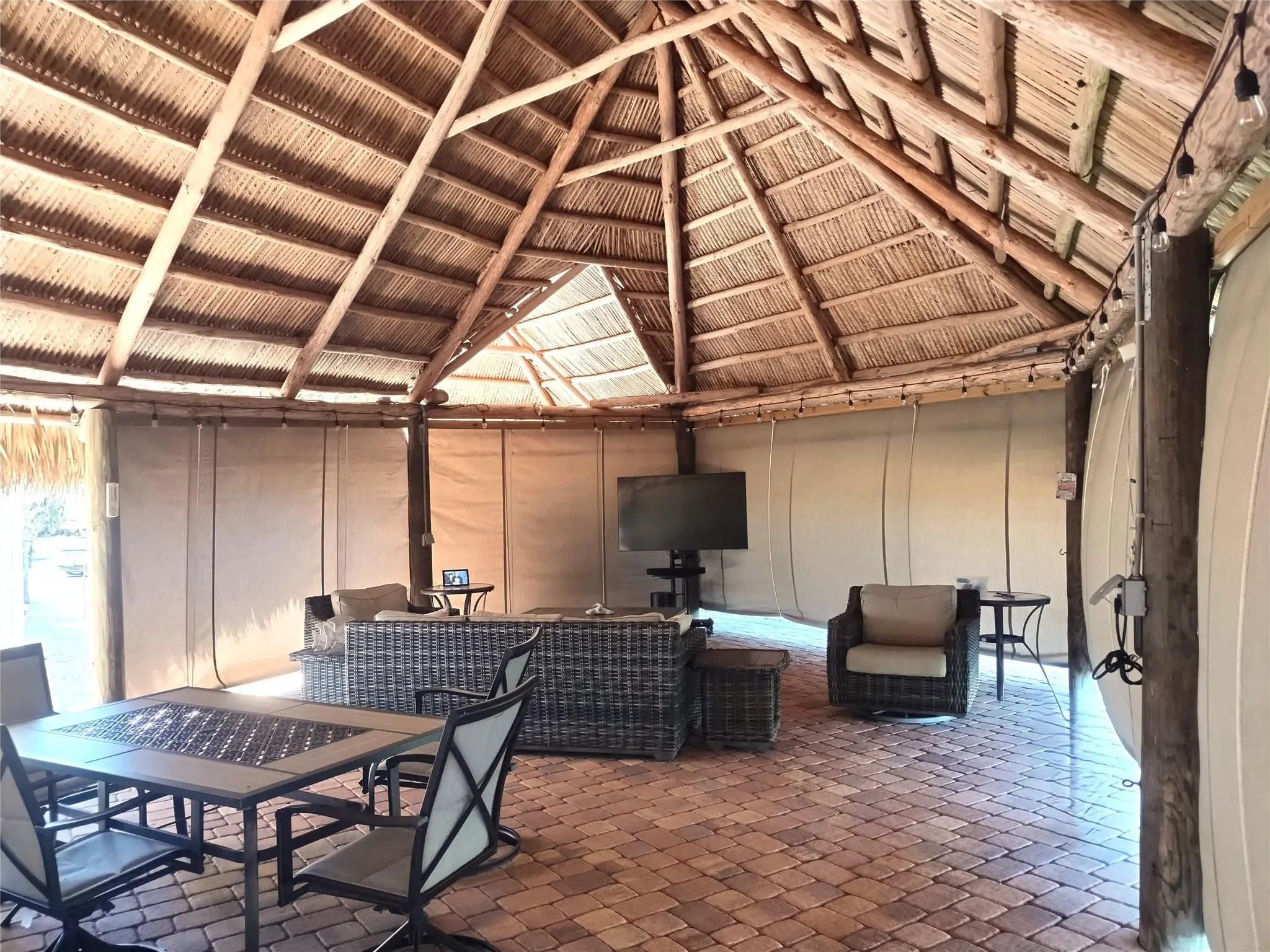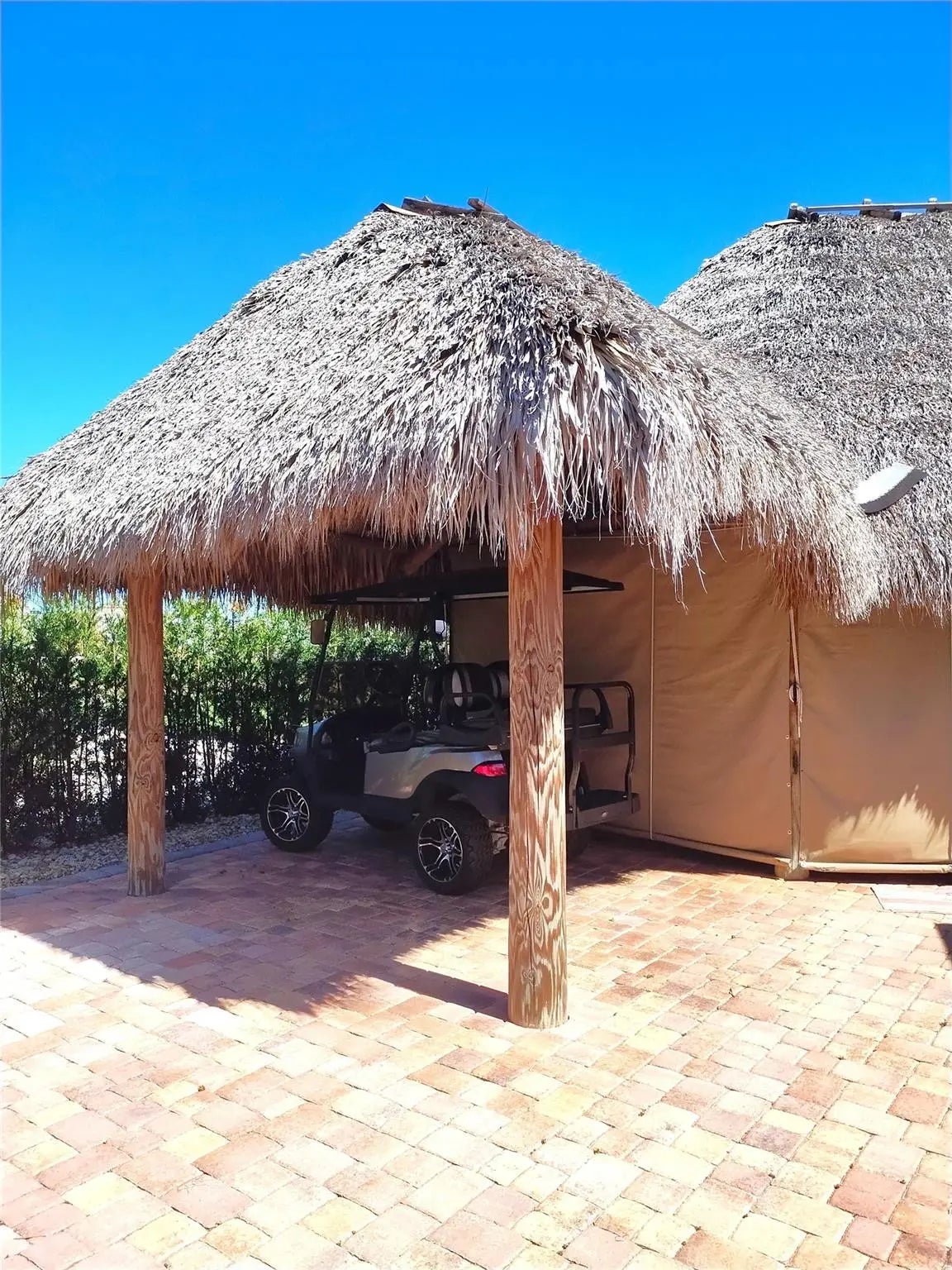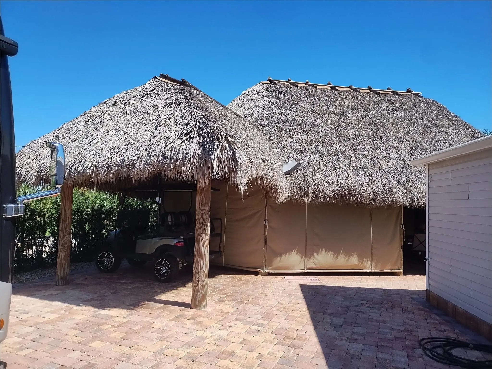 SILVER PALMS 5 STAR RV VILLAGE. LOT 209 Amazing opportunity. Best VFM in community. Lot 209 nestled on the PRESERVE with an outstanding view of nature, wild & song birds, beautiful sun rise & sets. Authentic extra spacious 758sf Tiki, w additional golf cart lean to, re-thatched 2022. Full cover roll blinds, elect, ceiling fan, TV Mount area, table & 4 chairs included. Generous 12x16 Casita w new dbl French entry doors, fully equipped, incls washroom, kitchen, dishwasher, washer/dryer, ceramic backsplash. Easy access for 45ft rig, lush landscape plus weather hardy mature shrubs. HOA/COA Clubhouse, library, card room, billiards, gym, pool, pool bar. spa, dog park, Activity Calendar, special eventsApprox 2600 sf pavers, decorative brick faced retainer wall on preserve side.