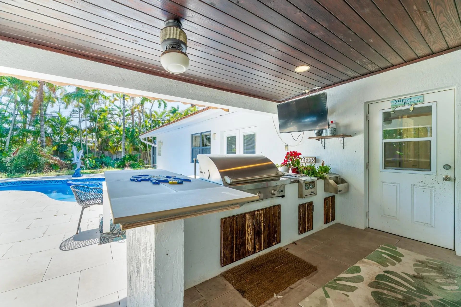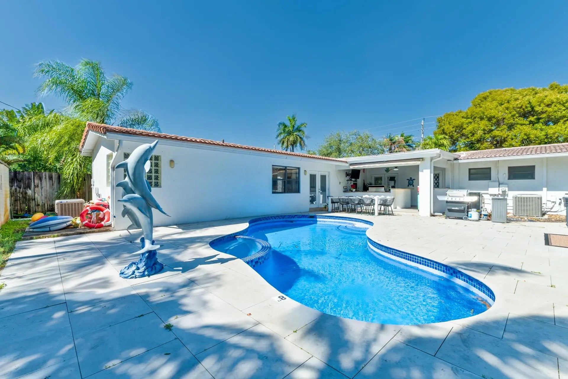 Oakland Park Culinary Arts District – 4BR Pool Home Near Wilton Manors – Over 1,900 Sq Ft on Oversized LotSpacious split-bedroom layout with two large primary suites, including an owner’s retreat with sitting area overlooking the heated pool, Roman tub, and separate shower. Designed for South Florida indoor-outdoor living with family room, circular driveway, and covered patio featuring a fully equipped outdoor bar with gas grill, gas stove, sink, and granite counters—ideal for entertaining.Heated pool and generous fenced backyard offer privacy and room to relax. Pool pump, sprinkler pump, and two A/C units approx 7 years oldCarport can be enclosed for garage or storage.Just 10 minutes to Fort Lauderdale Beach and minutes to Wilton Manors dining, breweries, shopping, and more.