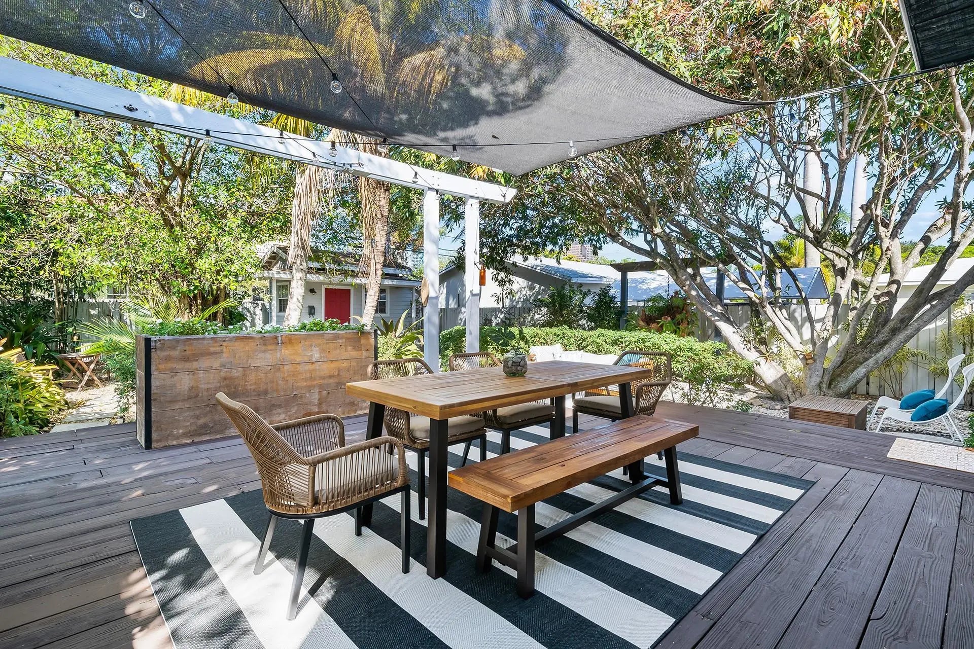 Charming Key West style cottage in Tarpon River, this fully furnished 3 bedrooms and 2 bathroom home features wood flooring throughout, a spacious kitchen with a natural gas stove and stainless steel appliances. The bedrooms have been tastefully decorated and bathrooms updated, offering both style and convenience. The spacious yard is perfect for entertaining or relaxing with an oversized deck, summer kitchen, quiet sitting area and lush tropical landscape. Located just outside of downtown Fort Lauderdale, this home is close to the airport, Las Olas, the beach, and major highways. Enjoy the perfect blend of comfort, style, and an unbeatable location in Fort Lauderdale.