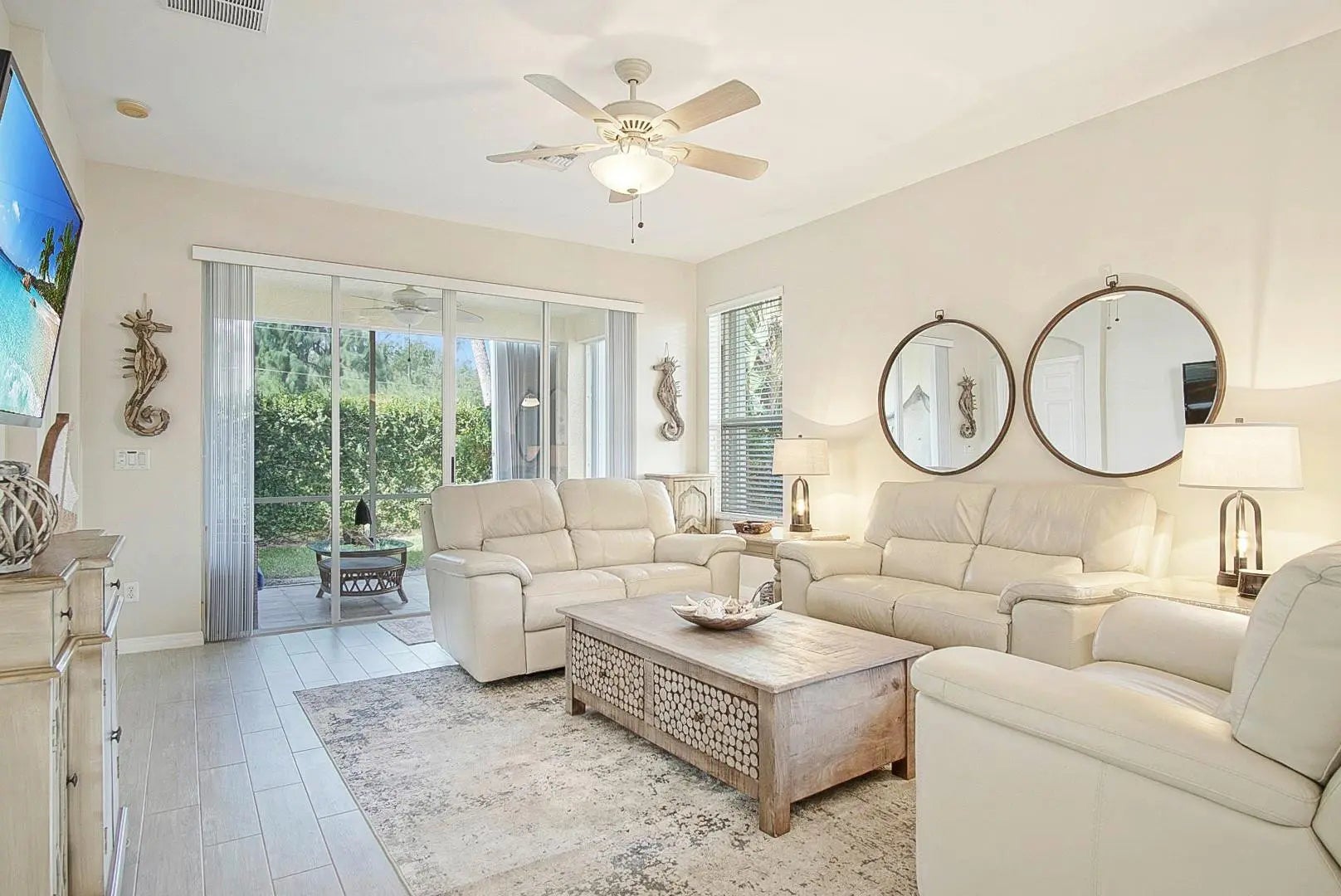 Available for 6mo to 1yr lease. Welcome to the resort-like community of Ocean Village on South Hutchinson Island. Enjoy the manicured 9-hole golf course, walking to the private beaches, socializing in the multiple clubrooms and pools, eating & dancing in the neighborhood restaurant, playing tennis, pickleball, bocci ball, basketball and more! This first floor, one-level condo features a one-car garage, tile through-out, screened porch, open floorplan, and two spacious bedrooms. It comes fully stocked and furnished & has been meticulously maintained. Location is perfect - near several golf courses, downtown Fort Pierce w/ one of FL best farmer's market, Jensen Beach, Stuart, & great fishing/boating. Please call agent for details.