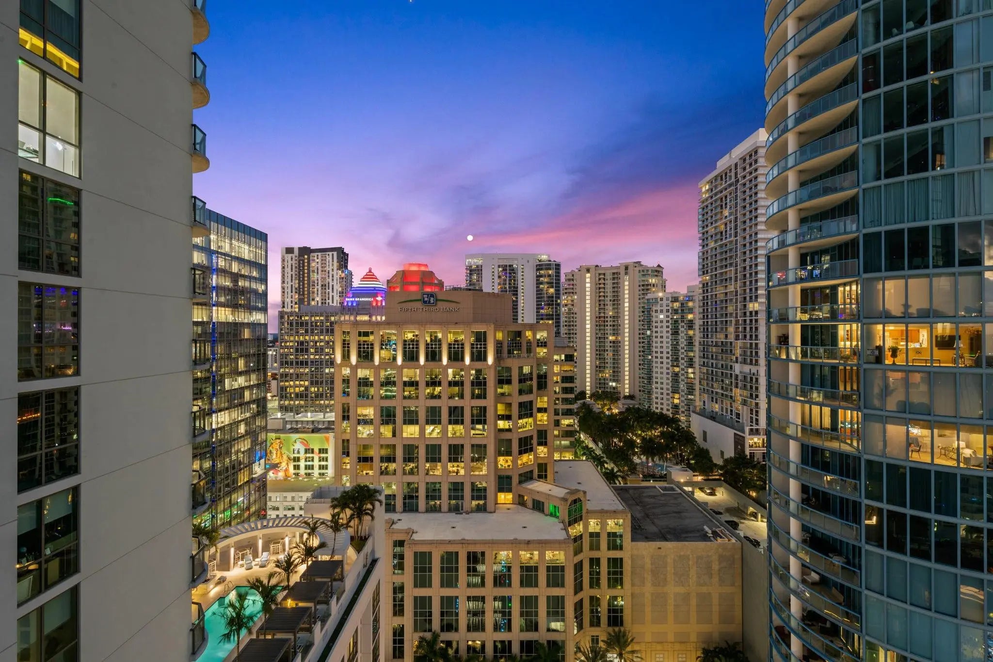 Experience vibrant downtown living at 100 Las Olas, Fort Lauderdale’s premier luxury high-rise blending private residential exclusivity with world-class hotel amenities. This corner residence offers one of the building’s most desirable layouts, highlighted by a sprawling wraparound terrace with panoramic western sunset views and a second east-facing terrace—totaling 544 sq ft of outdoor space. Designed as a 3-bedroom, it’s thoughtfully configured as a 2-bedroom plus office. Porcelain tile floors, electric shades, custom walk-in closets, and Jennair appliances complete the refined interior. Enjoy resort-style pool and cabanas, state-of-the-art fitness center, club room, coffee lounge, valet, and more—just steps from Las Olas’ best dining, shopping, and nightlife.