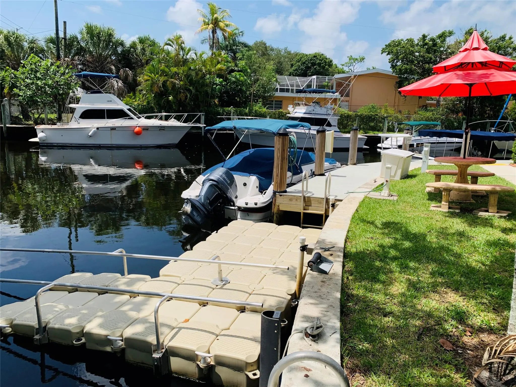 Spacious 2 Bed Corner Unit with 3rd room Den. French doors leading into living-dining area. Updated kitchen and bathrooms. Laminate/slate style tile flooring throughout. Double sinks in Master Bath with Tub/Shower. Built-in Closets and Washer-Dryer in unit. Maintenance Fee includes Cable, Wifi, Water, Garbage, Sewer, Pest Control. River Reach is a gated tropical island in East Ft Laud featuring: guard gate, gym, 3 pools, 2 tennis/pickleball courts, car wash, community center and BBQ grills. 2 Pets allowed (Max 20lbs each). Bike and kayak storage available. Vehicle max 19ft. Dockage for Owner Residents up to 50ft OAL@$40/ft/year as available. 50yr Cert completed 2025 including concrete restoration and impact windows. Convenient location close to Downtown, beaches and FLL Intl airport.